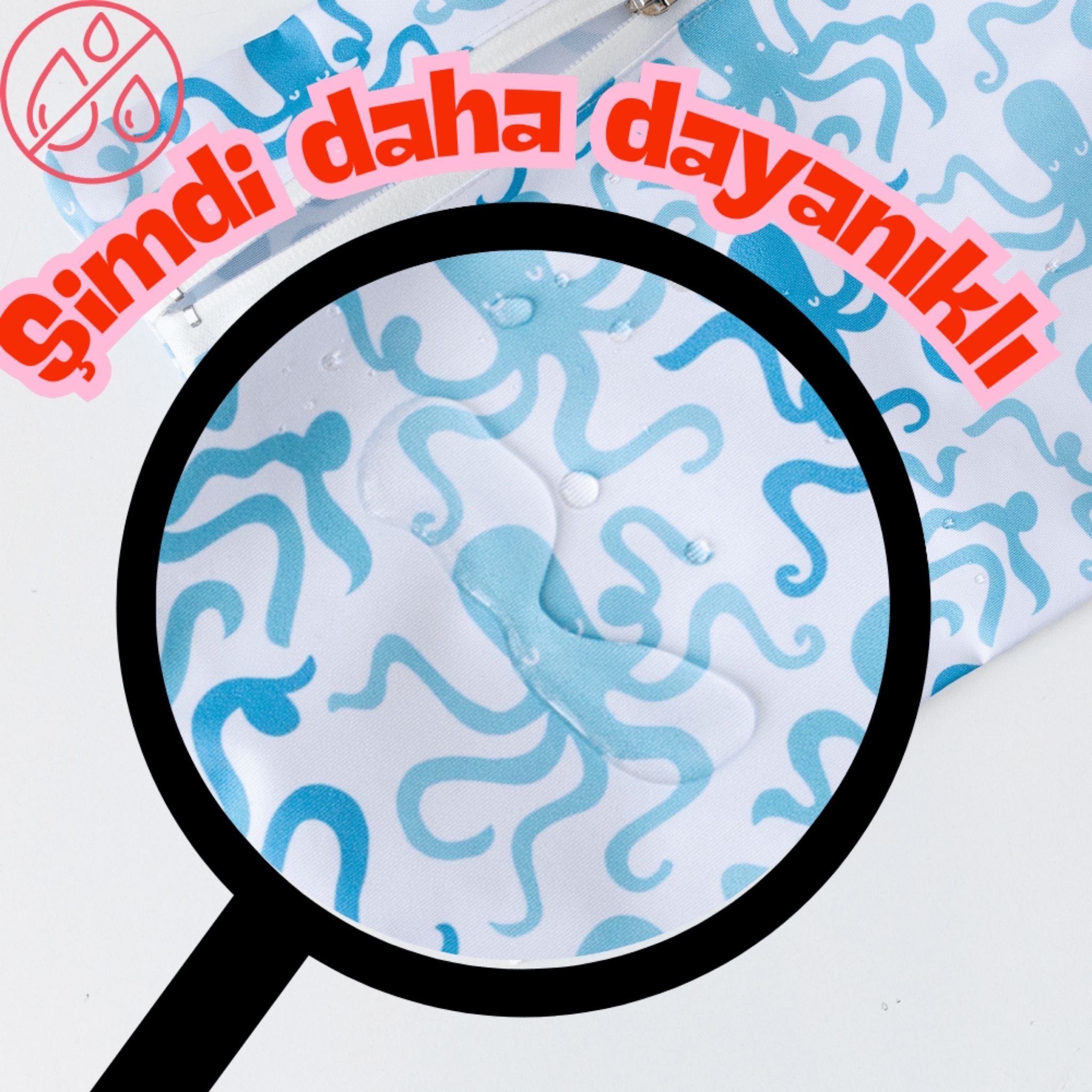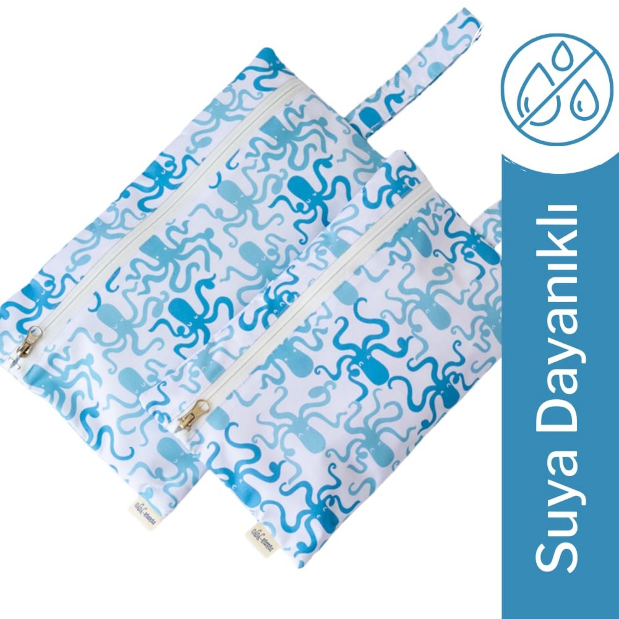 Plajda, havuzda ya da seyahatte ıslak ve kirli eşyaları ayrı tutmak artık çok daha kolay! Temiz & Islak/Kirli 2'li Çanta Seti Ahtapot modeli, su geçirmez özel kumaşı sayesinde eşyalarınızı güvenle taşımanıza olanak tanır. Yeni geliştirilen iç kaplaması ile çantanın içine yerleştirilen ıslak eşyalar dış yüzeye sızmaz, böylece çevredeki diğer eşyalarınız korunmuş olur. Farklı boyutlardaki iki ayrı çanta sayesinde hem küçük hem büyük eşyalarınızı düzenli şekilde taşıyabilirsiniz. Renkli ve eğlenceli ahtapot deseniyle çocuklar için ideal olan bu set, uyumlu mayo, şapka ve panço ürünleriyle kombinlenerek şık ve fonksiyonel bir set haline getirilebilir. Temiz & Islak/Kirli 2'li Çanta Seti Ahtapot, su geçirmez yapısıyla ıslak veya kirli eşyalar için ideal. Şık tasarımıyla çok amaçlı ve çocuklara özel çözüm.