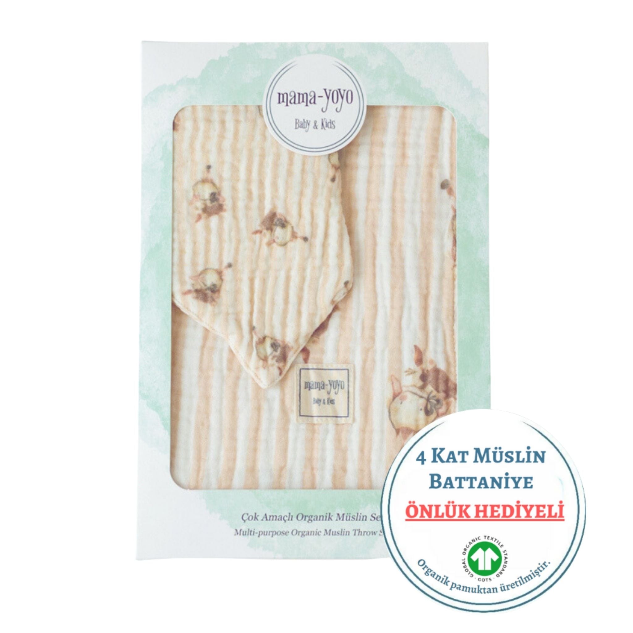 Mama Yoyo Tavşan Müslin Organik Bebek Battaniyesi, %100 organik pamuktan üretilmiş olup, bebeğinizin hassas cildine dosttur. 4 katlı yapısı, mükemmel emicilik sağlar ve bebeğinizin uyku saatlerinde ekstra rahatlık sunar. Yumuşak ve rahat dokusu ile bebeğinizin cildini nazikçe sarar. Ayrıca, sevimli tavşan figürü ile tasarlanmış Mama Önlüğü Hediyesi, bebeğinizin mama saatlerini konforlu ve eğlenceli hale getirir.