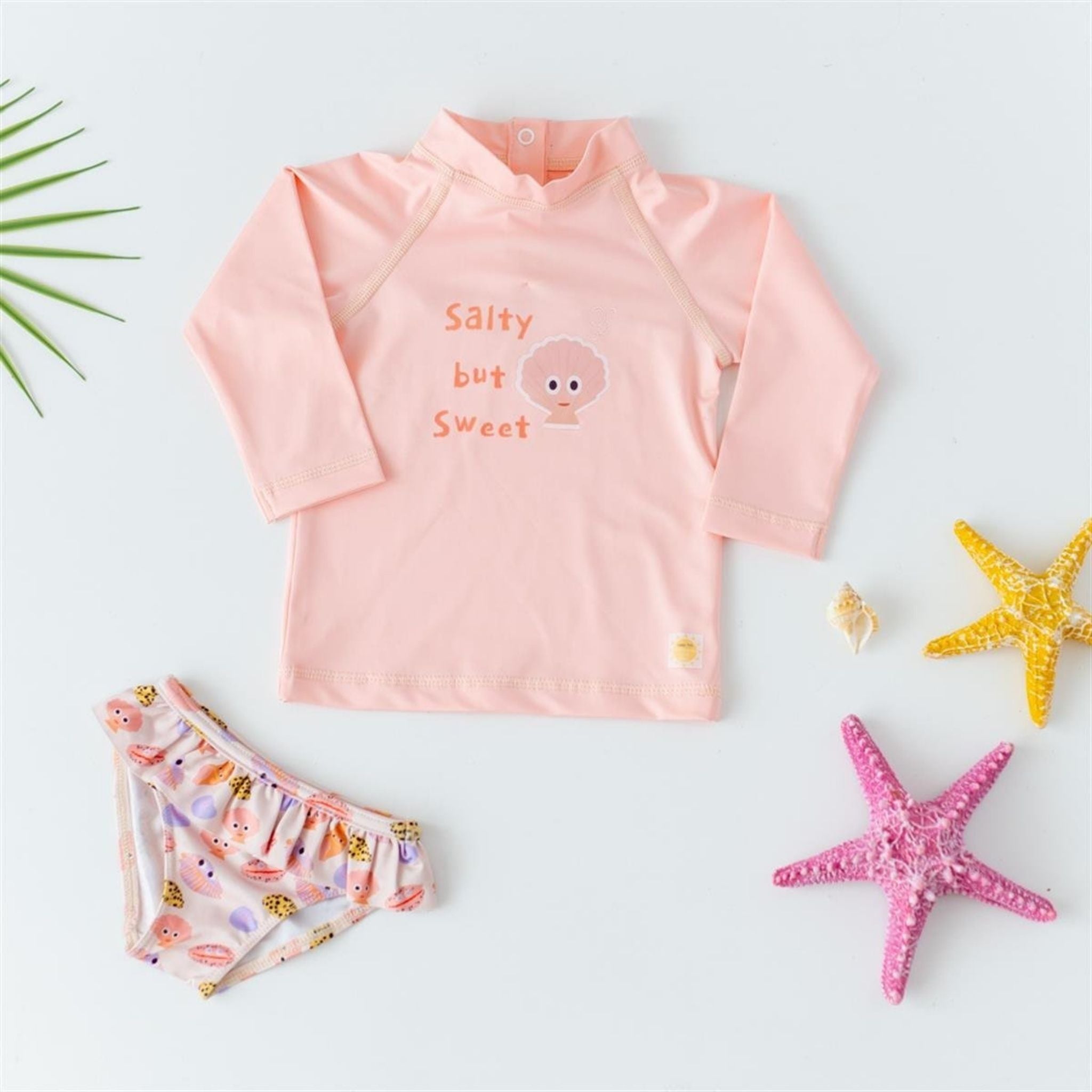 Mama Yoyo UV Korumalı Uzun Kollu Mayo Seti Shell Pembe Bebekleriniz İçin Mayo Seti Çocuklarınızın plajda ve havuzda güvenle vakit geçirmesini sağlayacak Mama Yoyo UV Korumalı Uzun Kollu Mayo Seti Shell Pembe ile tanışın! Bu şık ve sevimli mayo seti, zararlı UV ışınlarına karşı maksimum koruma sağlayan özel bir kumaştan üretilmiştir. UV Koruma: UV50+ koruma özelliği sayesinde çocuğunuzun cildini zararlı güneş ışınlarından korur. Mama Yoyo UV Korumalı Uzun Kollu Mayo Seti Shell Pembe İçerik Özellikleri; Mama Yoyo UV Korumalı Uzun Kollu Mayo Seti Shell Pembe: Özel UV uygulama yapılmış kumaştan üretilmiştir. Uzun Kollu Tasarım: Ekstra koruma sağlayan uzun kollu tasarım, güneşe maruz kalan alanları en aza indirir. Konfor ve Hareket Özgürlüğü: Esnek yapısı ve yumuşak dokusuyla çocukların rahatça hareket etmesini sağlar. Şık Tasarım: Canlı pembe rengi ve deniz kabuğu desenleri ile plaj modasına uygun. Aynı desende UV korumalı şapka, müslin panço ve ıslak çantasıyla avantajlı olarak kombinleyebilirsiniz. Şapka takıma dahil değildir. Uzun kollu arkadan çıtçıtlı üst. Deterjansız, soğuk suyla elde yıkama tavsiye edilir. Sererek kurutunuz.
