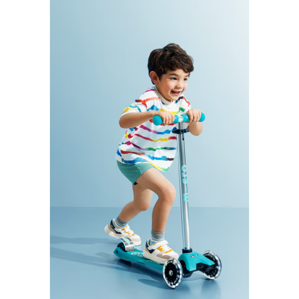 Maxi Micro Deluxe Glow Led Plus Jelly Yeşil, çocuğunuzun günlük kaçamaklarının en iyi arkadaşı olacak! Bu scooter, parlayan Led ayak tahtası sayesinde her yolculuğa büyüleyici bir ışık şovu katarak, her sürüşü unutulmaz bir maceraya dönüştürür. Doğal güneş ışığı veya yapay UV ışığıyla şarj edilen ayak tahtası, gün boyunca ışığı emer ve düşük ışık koşullarında göz kamaştırıcı bir parıltı yayar. Böylece çocuğunuz akşam yolculuklarında büyüleyici bir ışık gösterisinin keyfini çıkarabilir. Maxi Micro Deluxe Glow Led Plus, Led tekerlekler ile ekstra eğlence ve güvenlik sağlar. Bu tekerlekler hareketle aydınlanarak her dönüşte ve kaymada büyüleyici bir renk gösterisi oluşturur, çocuğunuzun hayal gücünü harekete geçirir ve etraftakilerin dikkatini çeker. Zarif güverte, ergonomik tutma yerleri ve gidon logosu, her ayrıntısıyla sürüşe konfor ve sihir katar. Çocuğunuz büyüdükçe, ayarlanabilir gidon mükemmel uyum sağlar. Dayanıklılık ve güvenlik düşünülerek üretilen bu scooter, sağlam bir çerçeveye ve güvenilir bir fren sistemine sahiptir. Esnek fiberglas takviyeli güverte, sarsıntıları azaltır ve sürüş deneyimini pürüzsüz hale getirir. Maxi Micro Deluxe Glow Led Plus Jelly Yeşil, çocuğunuzun geceyi aydınlatmasını ve parlayan maceraların büyüsünü deneyimlemesini sağlar. Her yolculuk, eğlence, macera ve güvenlik dolu bir keşfe dönüşür.