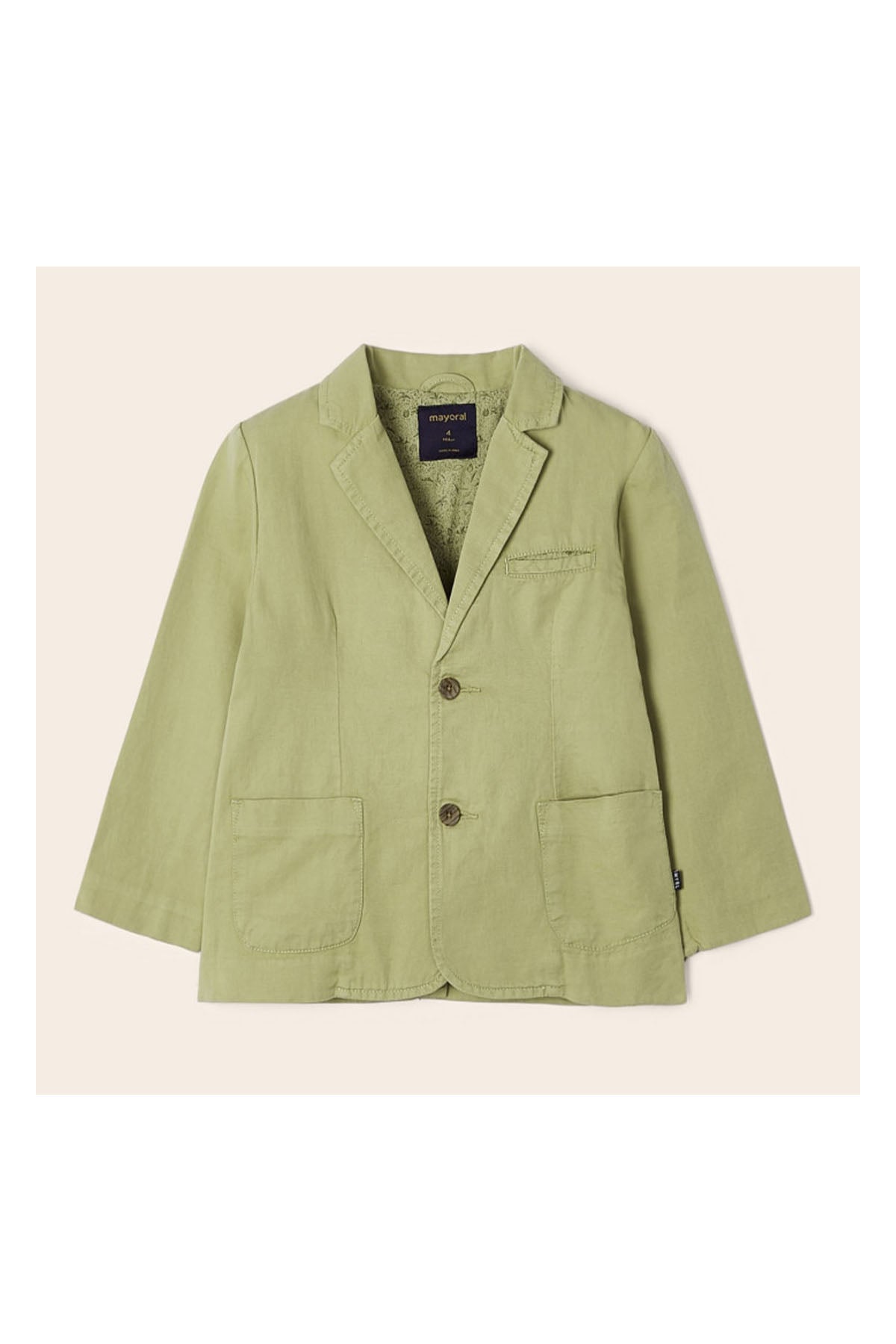 Mayoral Ceket Düğmeli Keten Yeşil, çocuklar için hem şık hem de rahat bir dış giyim seçeneğidir. İspanyol Mayoral kalitesiyle üretilmiş olan bu ceket, çocuğunuzun her anına eşlik edecek ve onu rahat hissettirecektir.