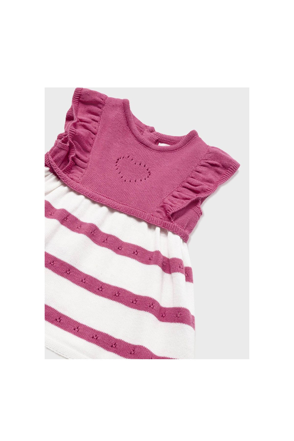 Mayoral Elbise Örme Çizgili Pembe, minik kızınıza şıklık ve rahatlık sunar! Mayoral'in kalitesiyle tasarlanmış bu elbise, özel günlerde ve günlük kullanımda harika bir seçenek.