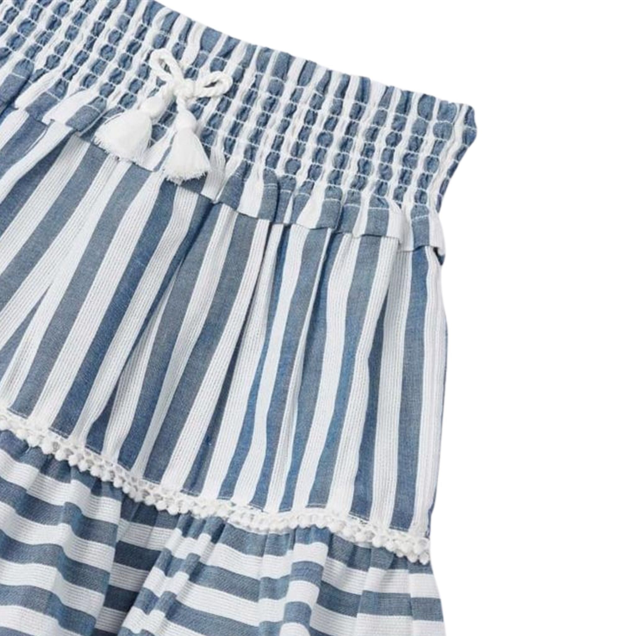 Mayoral Mavi Çizgili Etek; minik kızlarınıza çok yakışacak şıklıkta bir ürün! Çocukların giyimi, özenle tasarlanmış ve kaliteli materyallerle üretilmiş olmalıdır. Yumuşacık pamuklu kumaşı, bebeğinizin cildine uyum sağlar ve rahatlık sunar. Lastikli beli, giyimi kolaylaştırır ve vücudu sarmayacak şekilde tasarlanmıştır, bu da onu beğenilen bir tercih haline getirir.