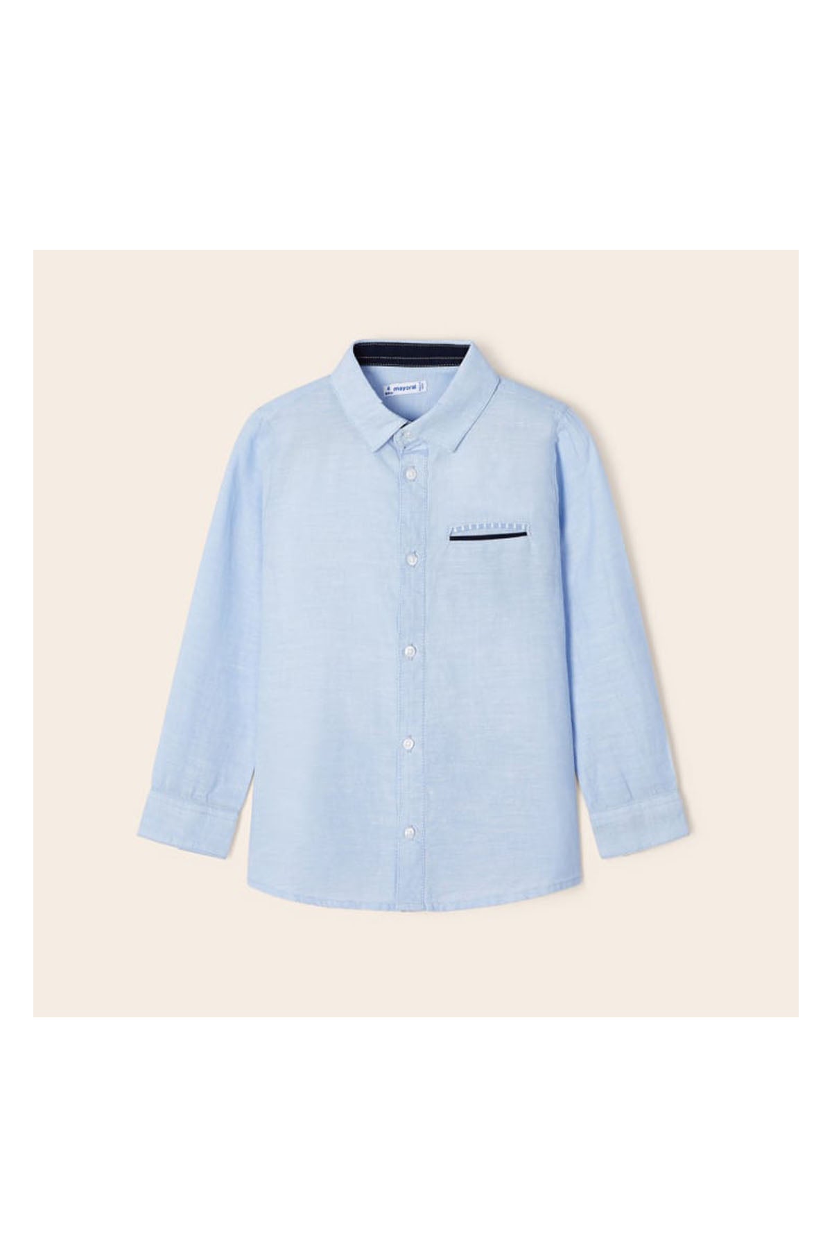 Mayoral Gömlek Keten Uzun Kollu Detaylı Mavi, bebeğinizin rahat ve şık görünmesini sağlamak için mükemmel bir tercihtir! Mayoral, kaliteli kumaş ve işçilikle tasarlanmış bu şık gömlekle bebeğinizin her anına şıklık katacak.