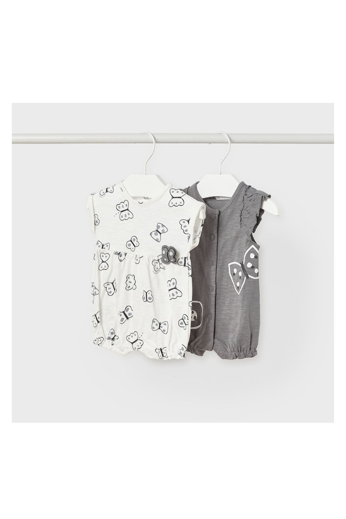 Mayoral Set 2'li Bebek Tulum Kelebekli Gri, bebeğinizin rahatlığını ve şıklığını ön planda tutarak tasarlanmıştır. Yumuşacık pamuk kumaşı ve sevimli kelebekli deseni ile bebeğinizin her hareketini rahatça yapabilmesini sağlar.