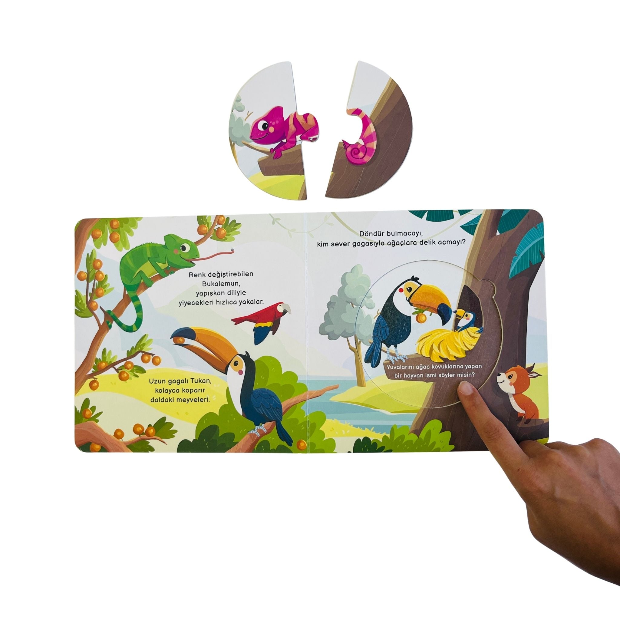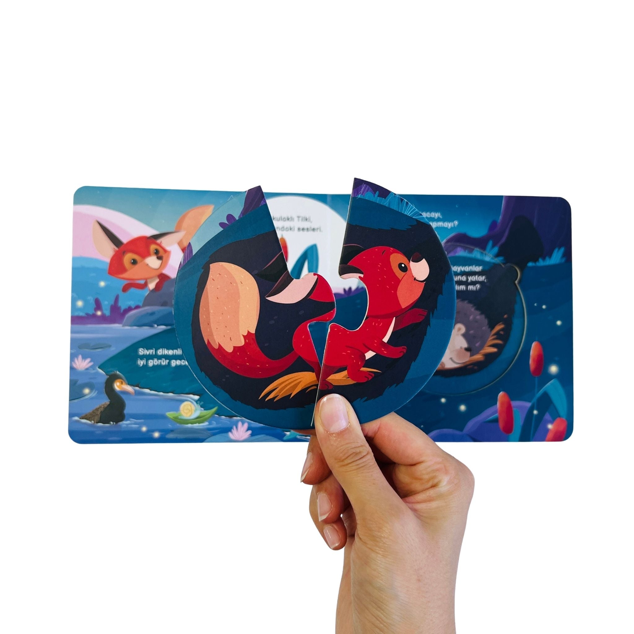 Merhaba Orman, 2-4 yaş aralığındaki çocuklar için hazırlanan interaktif ve eğlenceli yapısıyla dikkat çeken bir okul öncesi hikâye kitabıdır. Ormanın sevimli yavru hayvanlarının güne neşeyle başlamasıyla açılan hikâye, minik okurları hem keşfe hem de oyun dolu bir maceraya davet eder. Tavşan, kirpi, tilki, rakun ve karaca gibi hayvanların hareketli sahnelerle karşılaştırıldığı bu kitapta çocuklar her sayfada cırt cırtlı parçaları doğru yerlere yerleştirerek hikâyeyi tamamlar. Cırt cırtlı interaktif yapı, çocukların dikkat becerilerini, el göz koordinasyonunu ve sıralı düşünme yeteneklerini desteklerken; renkli çizimler ve canlı orman teması miniklerin doğal yaşamı tanımasını sağlar. Sincap Kitap Atölye’nin erken çocukluk gelişimini destekleyen yaklaşımıyla hazırlanan bu seri, hem ev ortamında hem okul öncesi eğitimde keyifli bir öğrenme aracı olarak kullanılabilir.