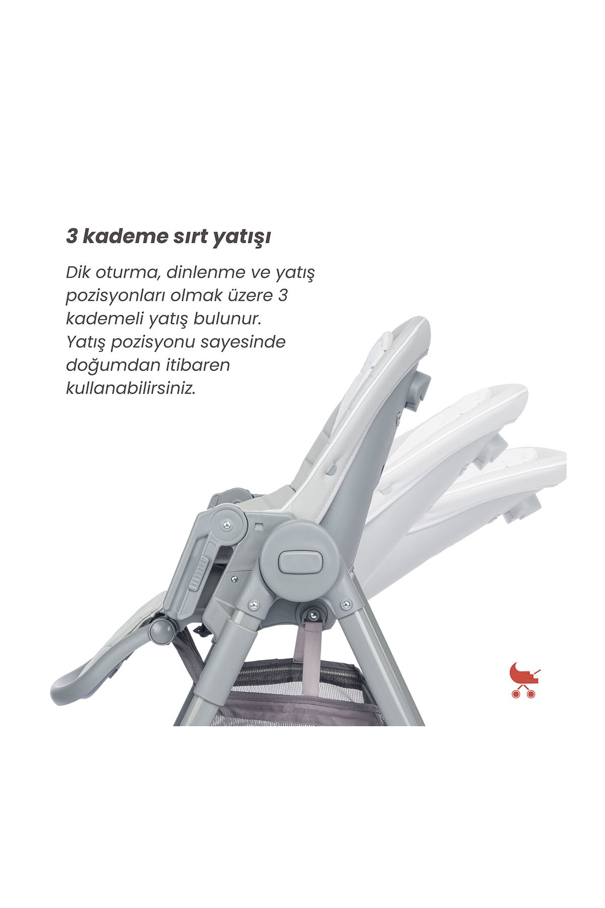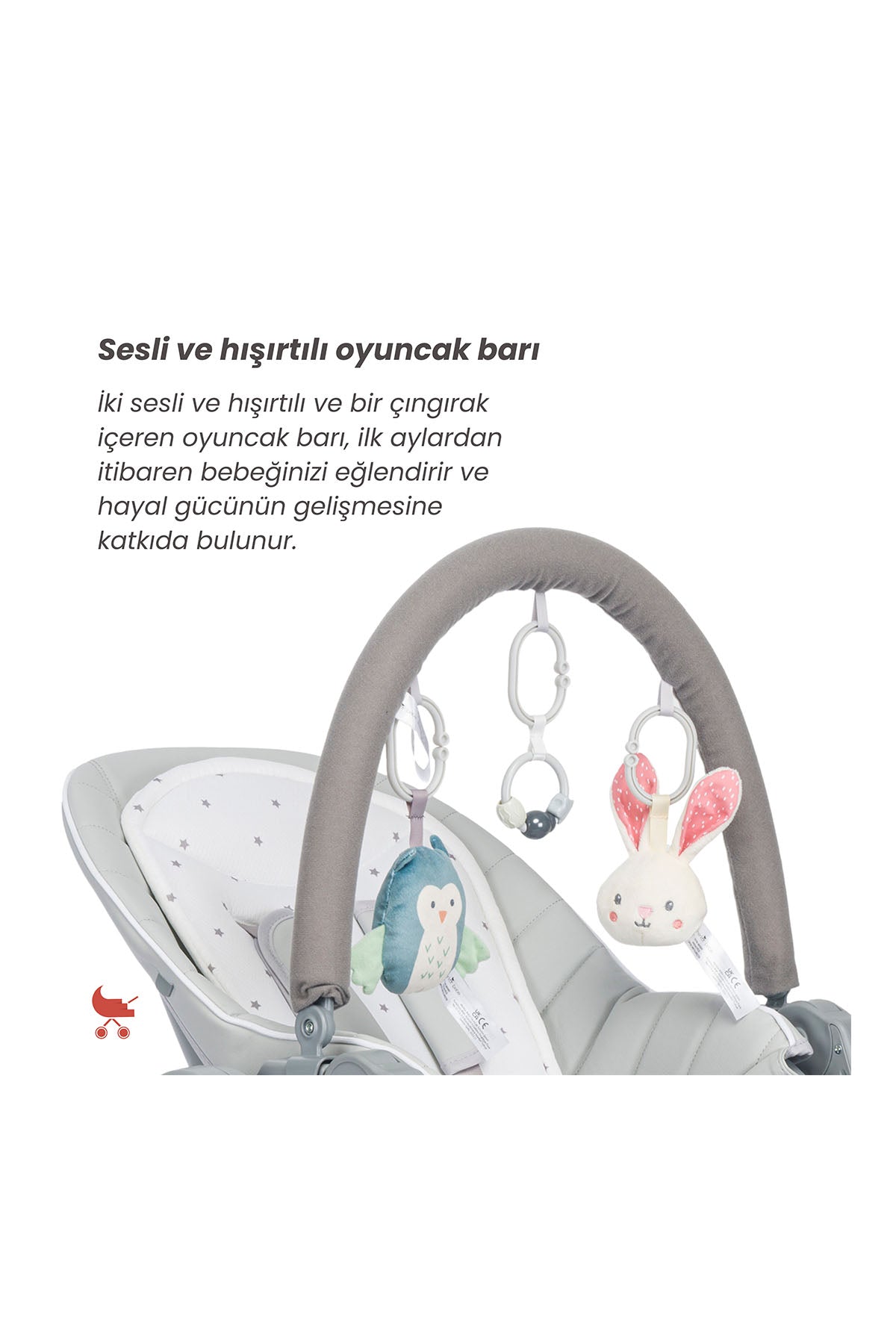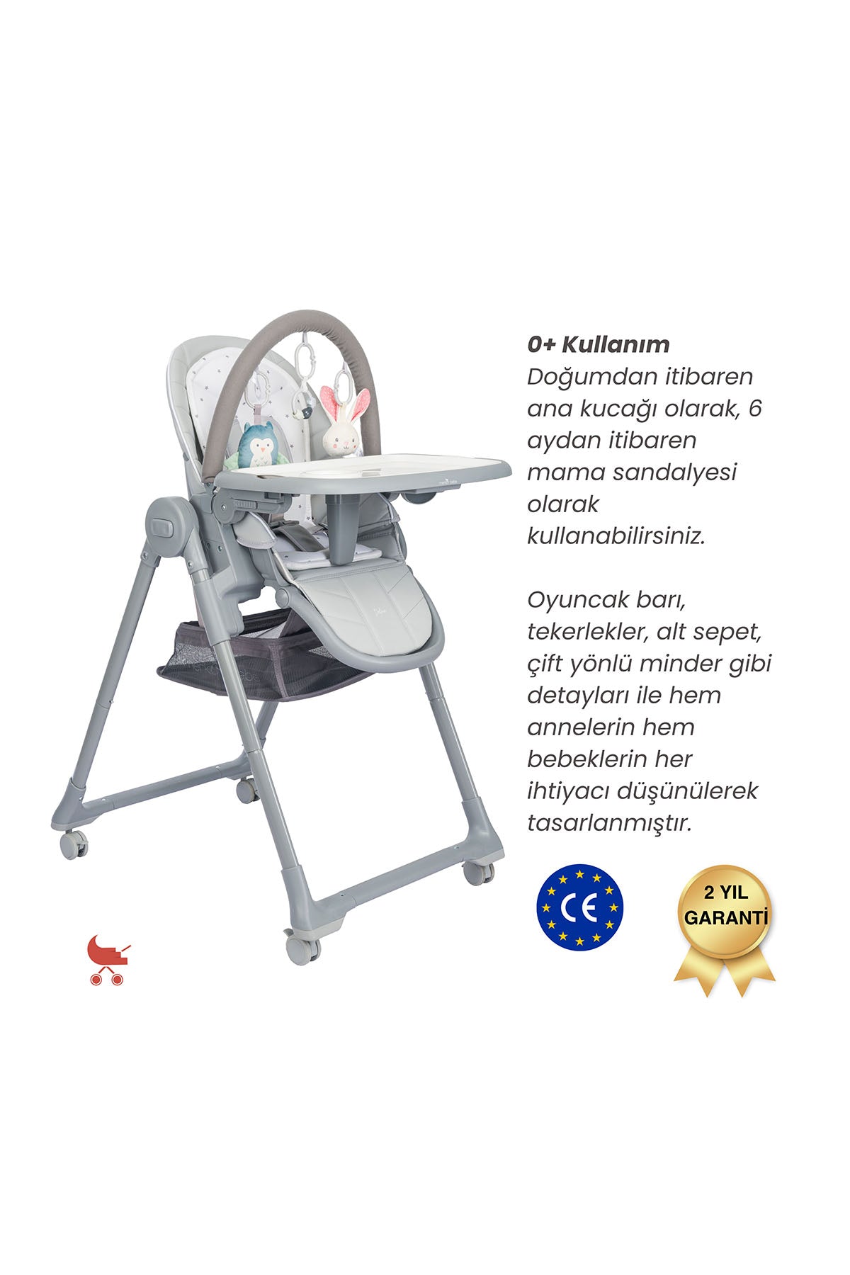 Defne mama sandalyesi, doğumdan itibaren ana kucağı olarak kullanmaya başlayabileceğiniz bir üründür. Ana kucağı yatış özelliği sayesinde bebeğiniz doğumundan itibaren ürünü kullanabilir. Yumuşak oyuncak barı ve renkli oyuncaklar bebeğinizi eğlendirir ve ilgisini çeker. Çift yönlü iç minderin peluş kısmını bu fonksiyonda kullanabilirsiniz, yumuşaktır ve bebeğinizin terini emmek için özel olarak tasarlanmıştır.