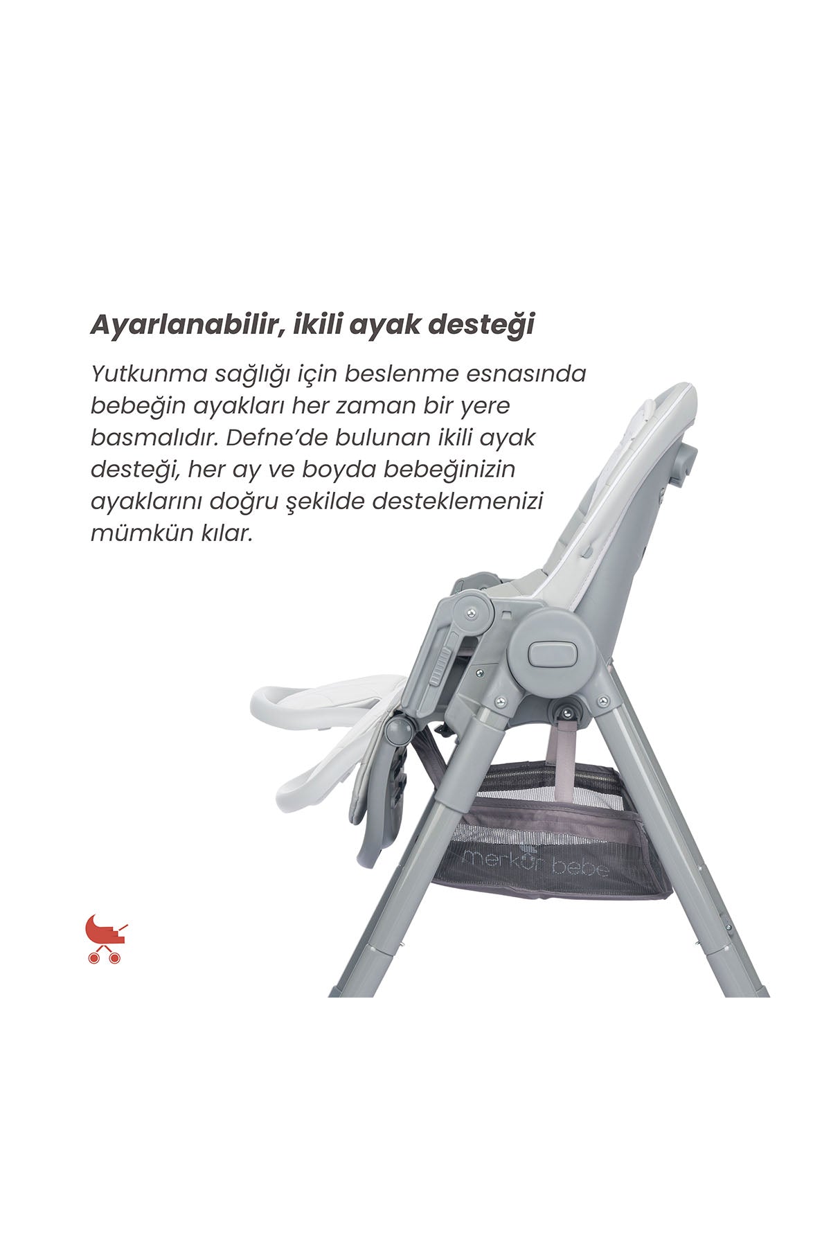 Merkür Bebe Defne Mama Sandalyesi, Hem mama sandalyesi hem ana kucağı işlevlerini bir arada size ve bebeğinize sunan Defne Mama Sandalyesi, uzun ömürlü kullanımı, her ihtiyacınız düşünülerek tasarlanmış detayları ve üst düzey kaliteli malzemeleri ile sizleri bekliyor!