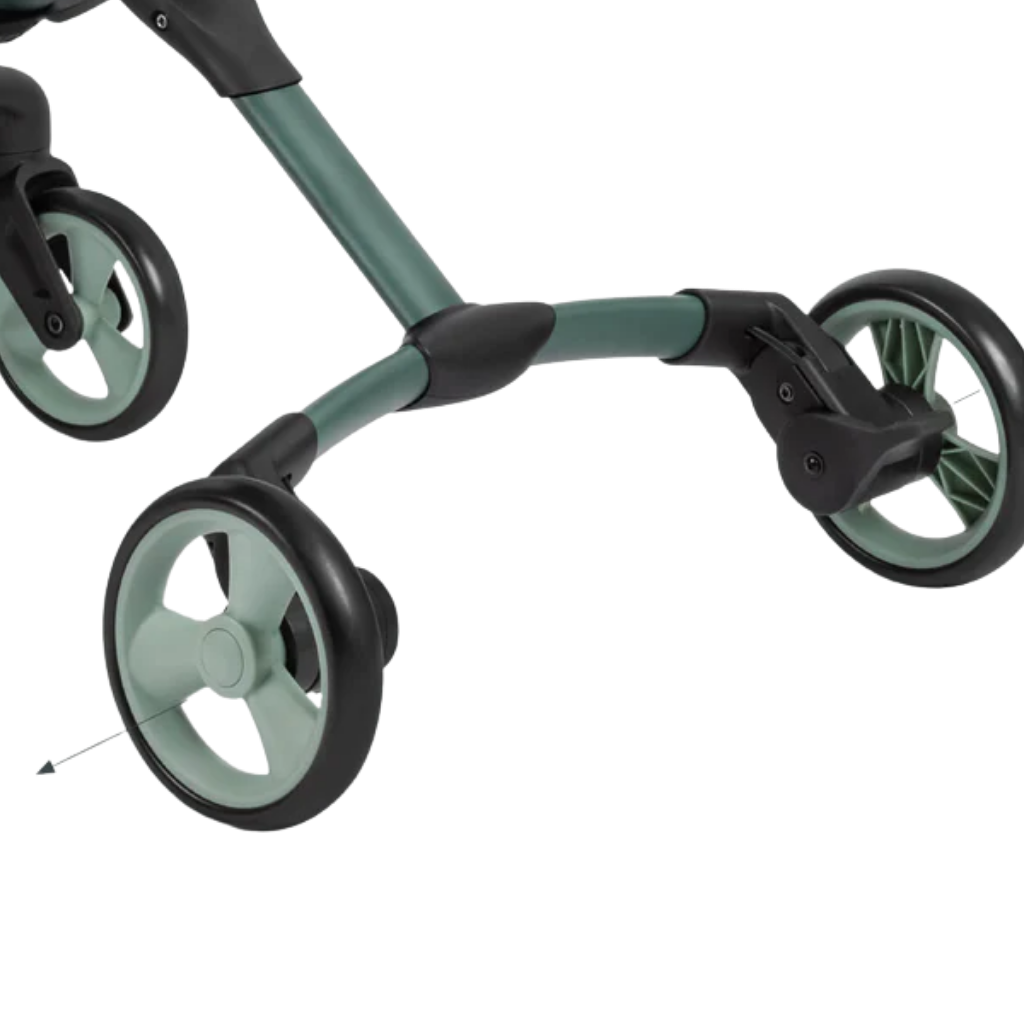 Tekerleklerin en geniş noktası 54 cm'dir. Bu da bebek arabasının kapılardan kolayca geçebilecek kadar küçük olduğu anlamına gelir.