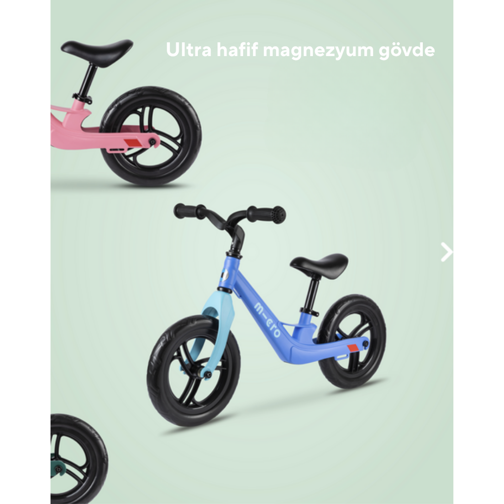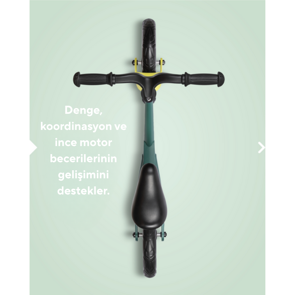 Micro Denge Bisikleti Peacock Green, çocukların denge, koordinasyon ve motor becerilerini doğal bir şekilde geliştirmesi için tasarlanmış hafif ve ergonomik bir denge bisikletidir. Ultra hafif magnezyum gövdesi sayesinde kolay kontrol edilir ve çocukların güvenli sürüş deneyimi kazanmasına yardımcı olur. Ayarlanabilir sele yapısı ile çocuğunuzun boyuna uyum sağlayarak uzun süreli kullanım sunar. Dayanıklı EVA köpük tekerlekleri, asfalt, kaldırım ve çakıl gibi farklı zeminlerde konforlu ve sessiz bir sürüş sağlar. Modern tasarımı ve dikkat çekici yeşil tonu ile hem şık hem de fonksiyonel bir kullanım sunar.