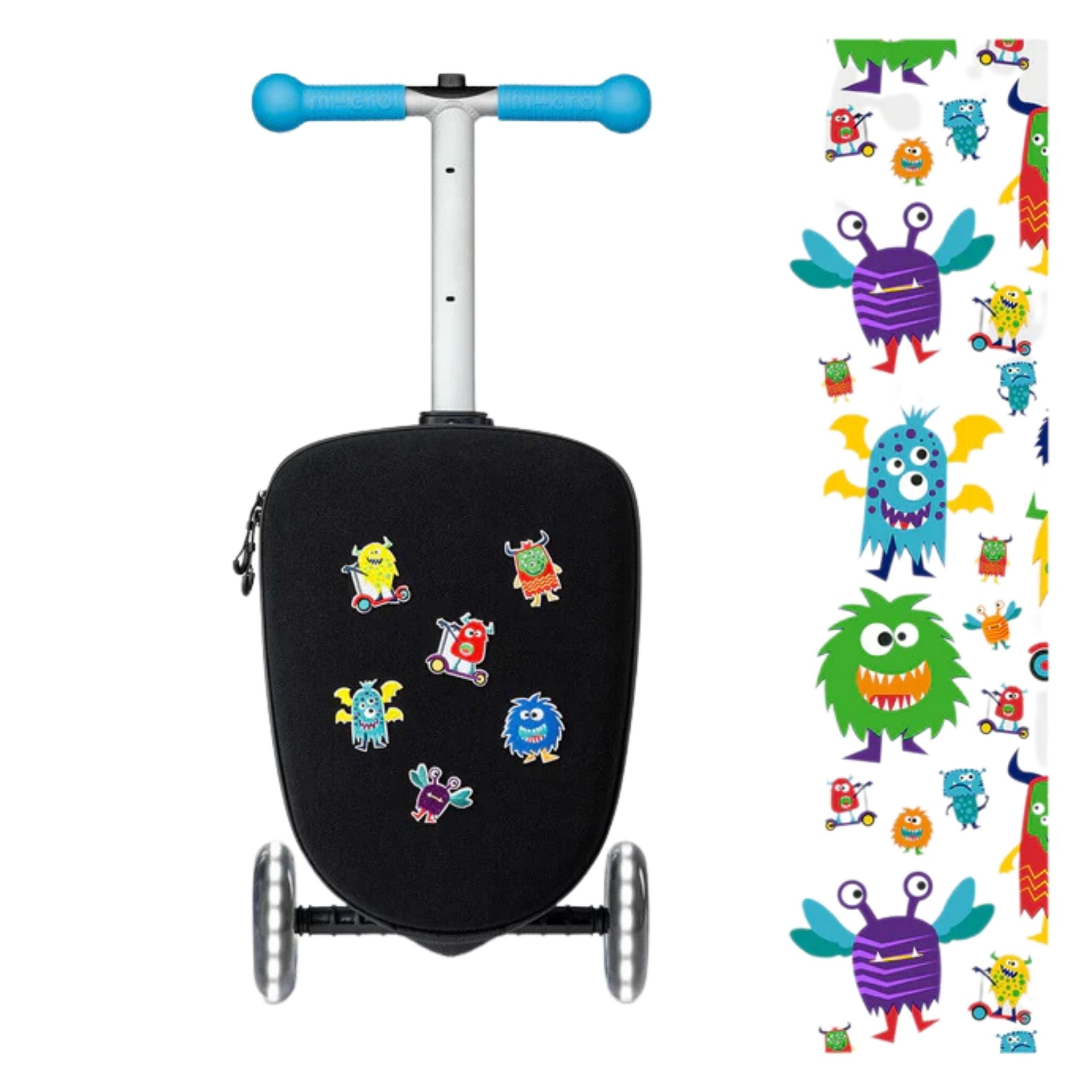 Micro Scooter Bagaj Junior Patch & Play Mavi, çocuklar için tasarlanmış hem eğlenceli hem de fonksiyonel bir seyahat çözümüdür. Çocuk valizi ve scooter’ı bir araya getiren bu yenilikçi tasarım, seyahat ederken çocukların hem oynamasını hem de eşyalarını taşımasını mümkün kılar. Kutu içerisindeki çıkartmalarla kişiselleştirilebilen yüzey sayesinde çocuklar kendi tarzlarını yansıtan bir scooter yaratabilir. Bu ürün yalnızca eğlenceli değil; aynı zamanda pratik ve ergonomiktir. Sürme, çekme ve itme özelliklerine sahiptir. Ayarlanabilir gidonu sayesinde 2 ila 6 yaş arası çocukların kullanımına uygundur ve çocukla birlikte büyür. LED tekerlekleri sayesinde hem dikkat çekici hem de güvenli bir kullanım sunar. Micro Scooter Bagaj Junior Patch & Play Mavi, çocukların hareket halindeyken eğlenmesini ve kendilerini ifade etmesini sağlarken, ebeveynlere de fonksiyonel ve pratik bir çözüm sunar. Her yolculuk bu scooter ile daha konforlu ve keyifli hale gelir.