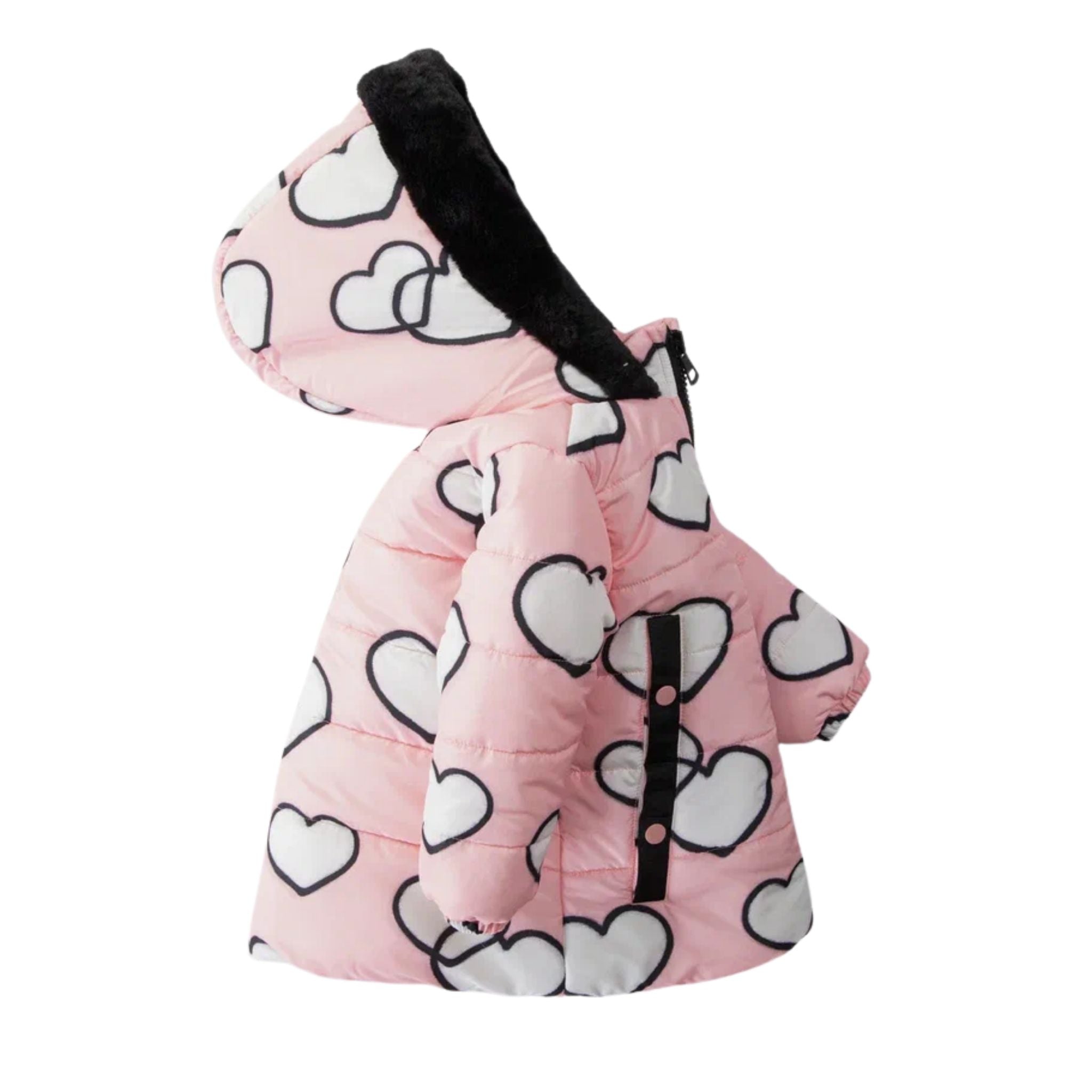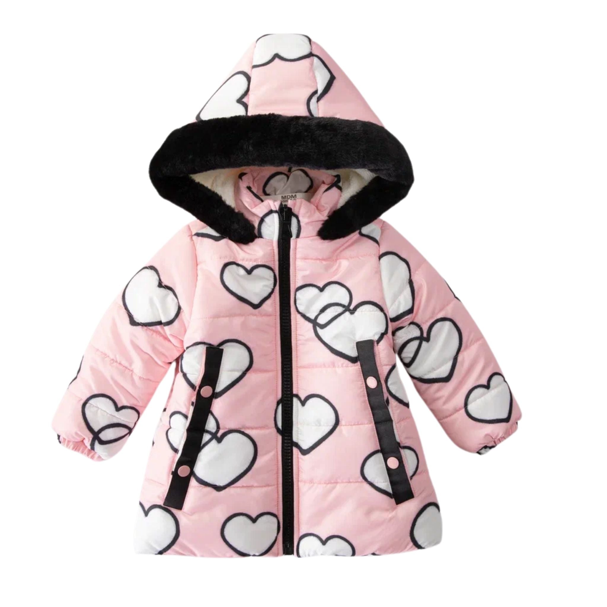 Midimod ’un şık tasarımıyla hazırlanan bu pembe kız çocuk montu, hem konfor hem de sıcaklık sunar. Kaliteli kumaşı ve özenli detaylarıyla soğuk havalarda çocukların rahat etmesini sağlar. İç kısmındaki yumuşak astar üşümeyi engellerken, kapüşon detayı ekstra koruma sunar. Sevimli kalp desenleri, montu hem modern hem de eğlenceli bir görünüme kavuşturur.