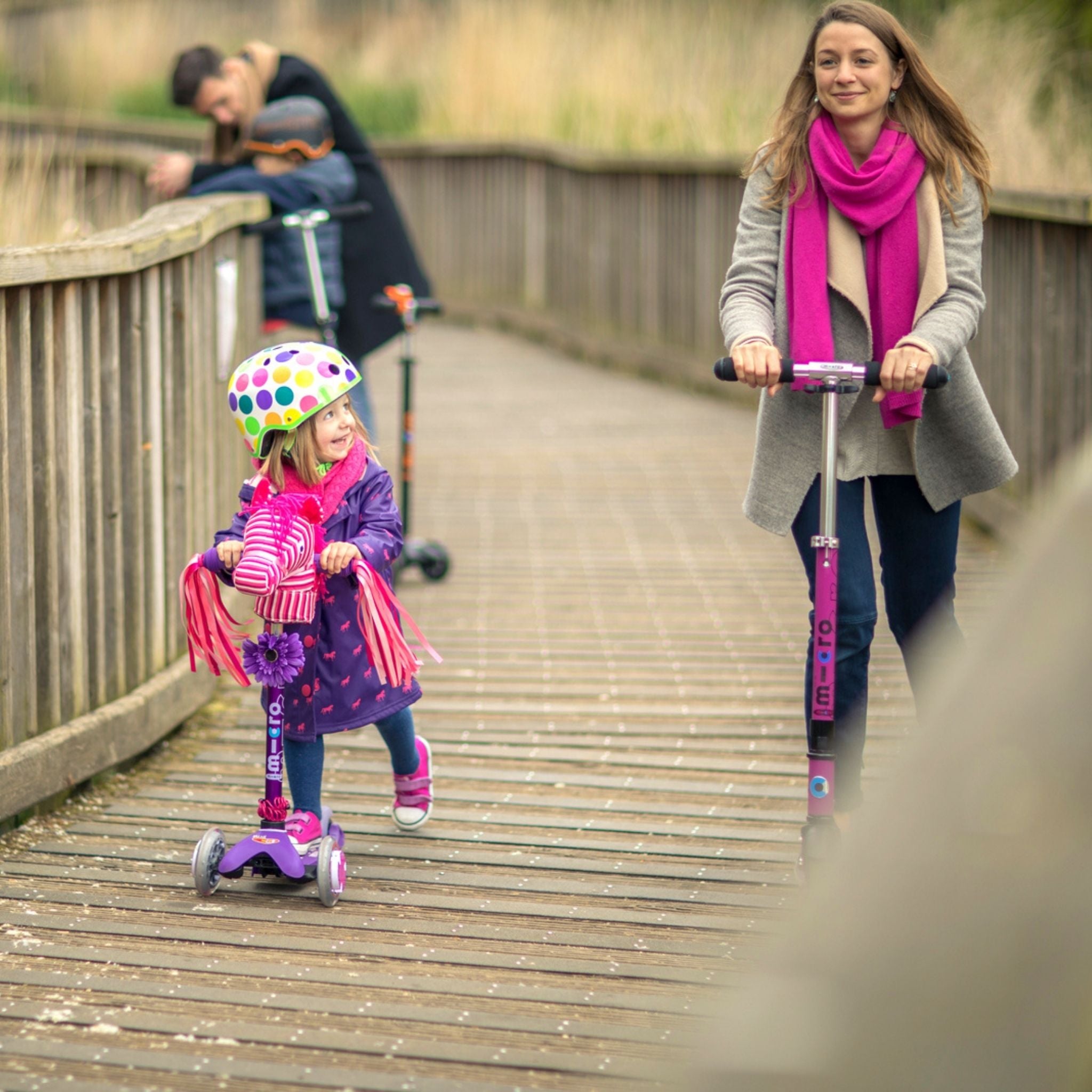 Mini Micro Deluxe Mor, çocukların güvenli ve eğlenceli bir şekilde scooter deneyimi yaşaması için tasarlanmıştır. Defalarca Yılın Oyuncağı seçilen bu model, yalnızca oyun ve hareketliliği teşvik etmekle kalmaz, aynı zamanda çocukların denge, koordinasyon ve motor becerilerini geliştirmelerine yardımcı olur. İsviçreli tıp uzmanlarıyla iş birliği içinde geliştirilen scooter, yürümeye başlayan ve okul öncesi çocuklar için uygundur. Yüksekliği ayarlanabilir gidonu sayesinde farklı yaş gruplarına uyum sağlar. Patentli eğme ve yönlendirme mekanizması ile güvenli bir sürüş sunarken, fiberglasla güçlendirilmiş gövdesi uzun ömürlü kullanım imkanı verir. Yumuşak plastik yapısı ve yuvarlatılmış kenarları çocukların kolay kavramasını sağlar ve yaralanma riskini en aza indirir. T şeklindeki sap, sadece ebeveynler tarafından çıkarılabilen emniyet kilidiyle ekstra güvenlik sağlar.