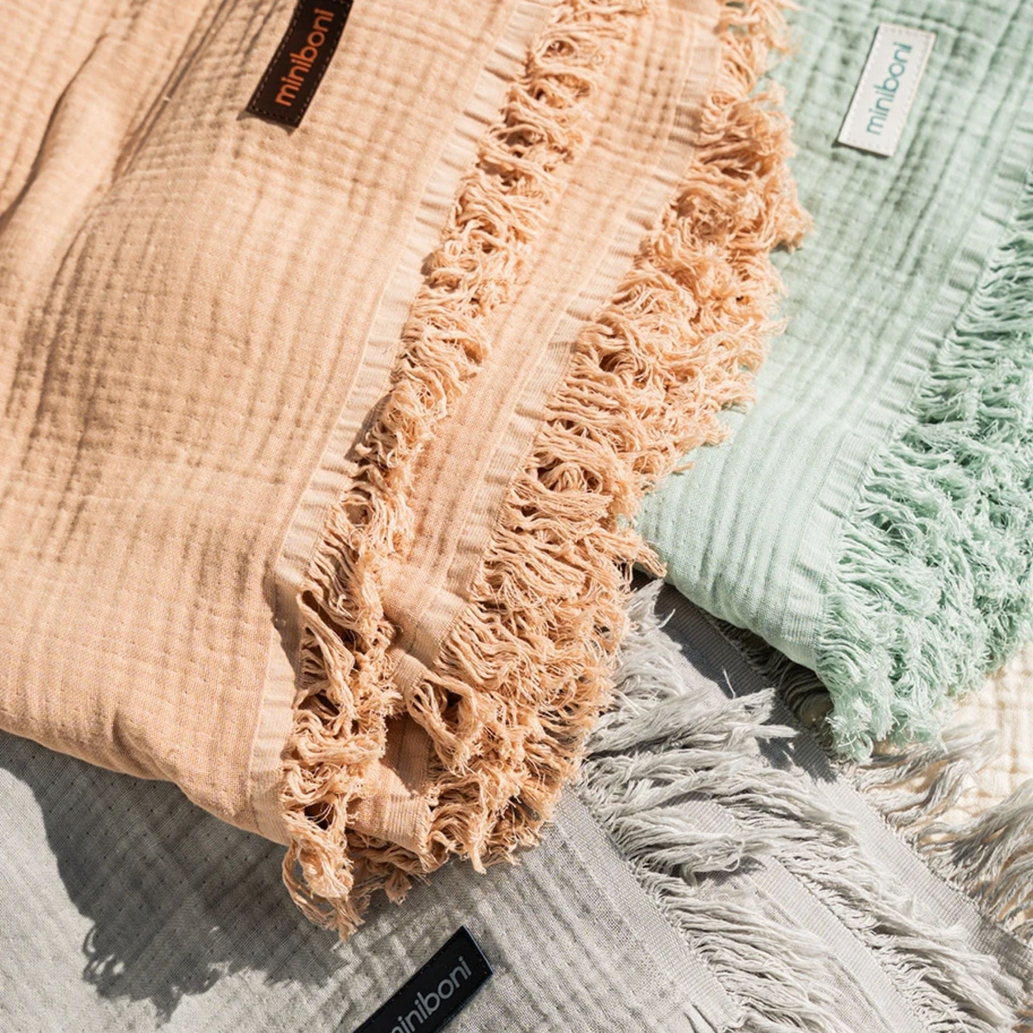 Miniboni Müslin Battaniye Grey, şıklığı ve konforu tek bir üründe buluşturmak isteyen aileler için tasarlandı. Dört katlı nefes alabilen müslin yapısı sayesinde bebeğinizin cildine yumuşak, hafif ve sıcak bir koruma sağlar. Nötr ve modern gri tonu ile bebek odasına, ana kucağına, bebek arabasına ve ev dekoruna kusursuz uyum sağlar. Hem günlük kullanım için pratik, hem hediye etmek için zarif bir seçimdir.