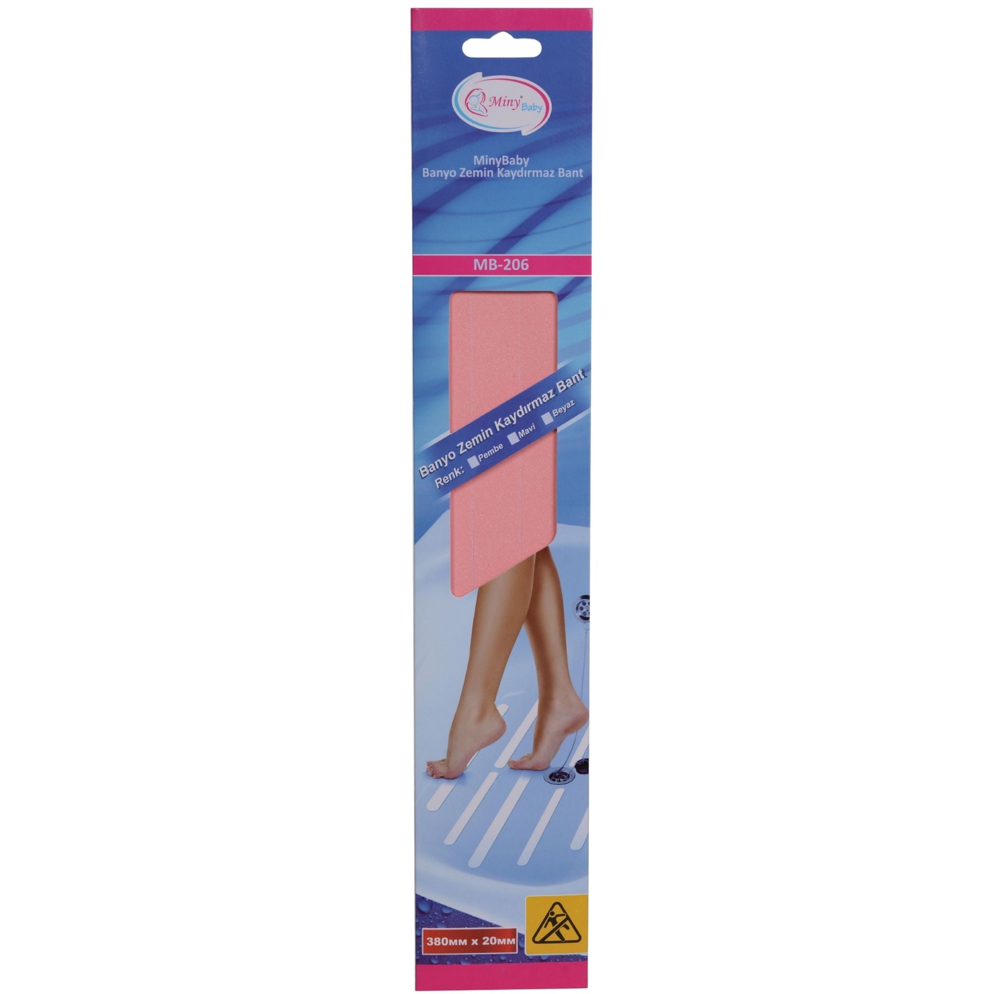 Islak ve kaygan yüzeylerde güveni artıran Miny Baby kaydırmaz bant, banyoda küvet içi ve dışı, duş girişi, merdiven basamakları ve havuz kenarı gibi alanlarda sağlam tutuş sağlar. Pembe rengiyle zemine canlı bir dokunuş katar. Kendinden yapışkanlı yapısı sayesinde ek aparata gerek olmadan kısa sürede uygulanır, pürüzlü dokusu ayak altı kavrayışı güçlendirir.