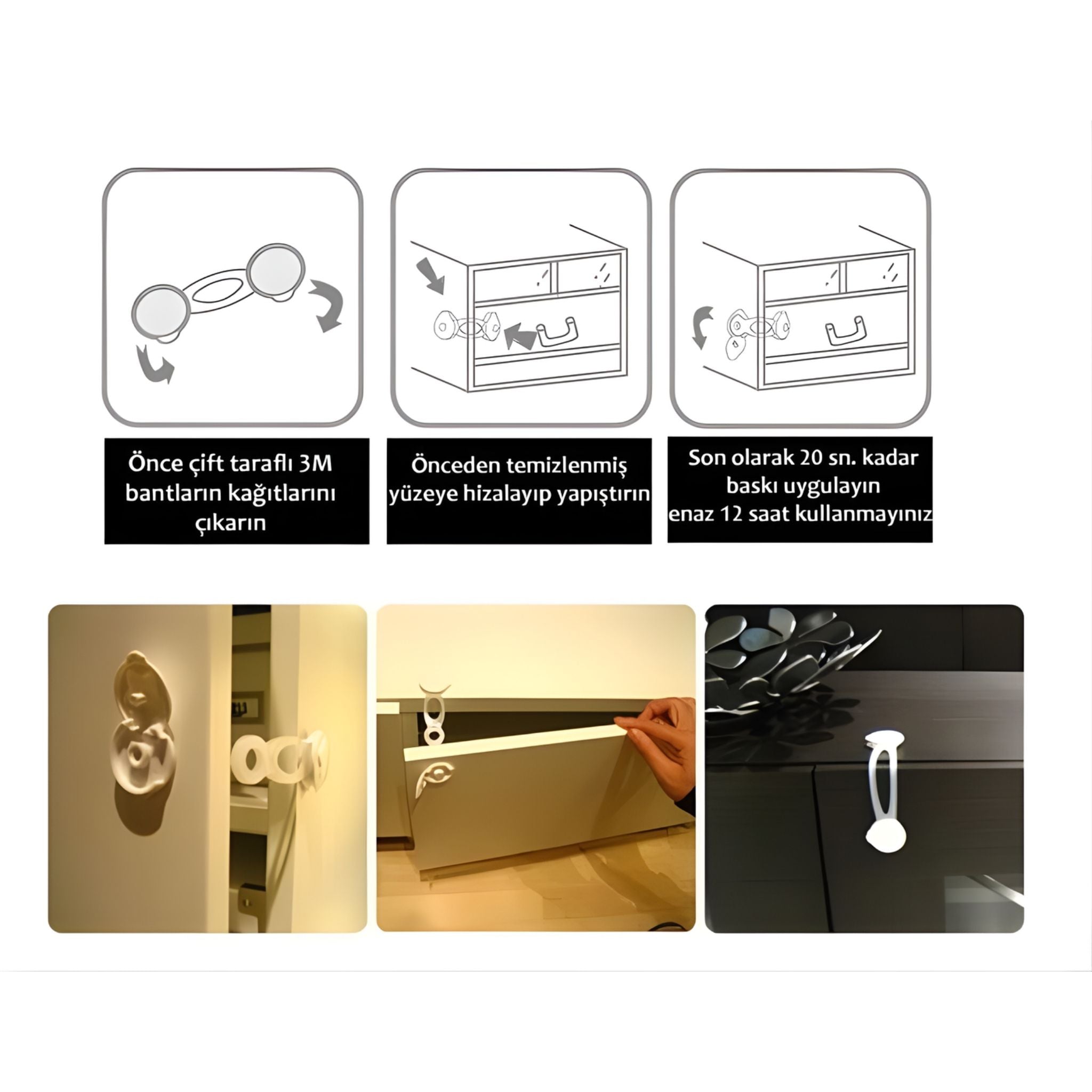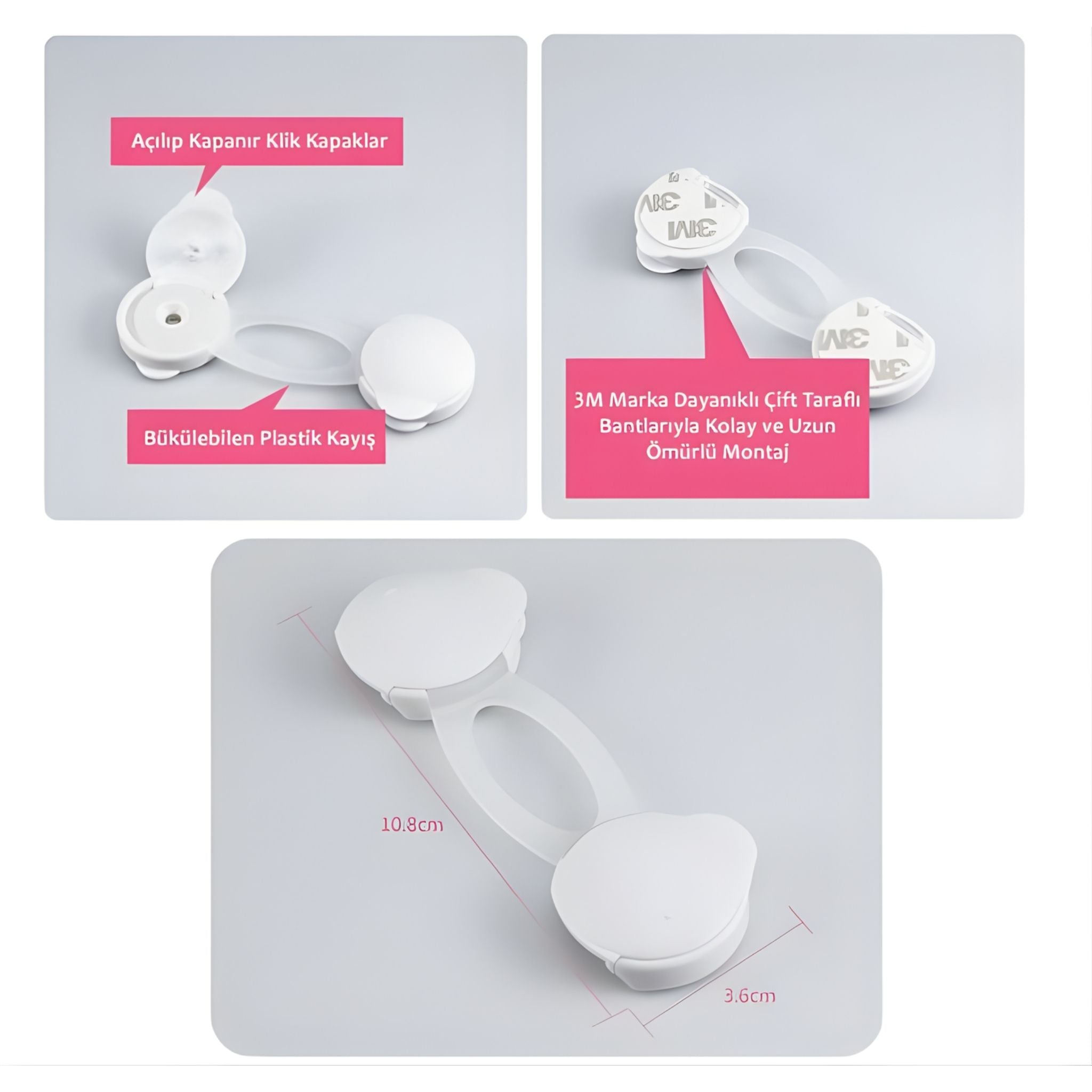 Miny Baby Çok Amaçlı Çocuk Emniyet Kilidi, kısa tasarımı sayesinde küçük yüzeylerde maksimum güvenlik sağlar. Dolap, çekmece, beyaz eşya, klozet kapağı ve mikrodalga gibi alanlarda çocukların erişimini engeller. Güçlü yapışkanlı 3M bantları ile kolayca monte edilir ve söküldüğünde yüzeyde iz bırakmaz. Miny Baby kalitesiyle evinizde güvenliği pratik ve estetik bir şekilde artırabilirsiniz.