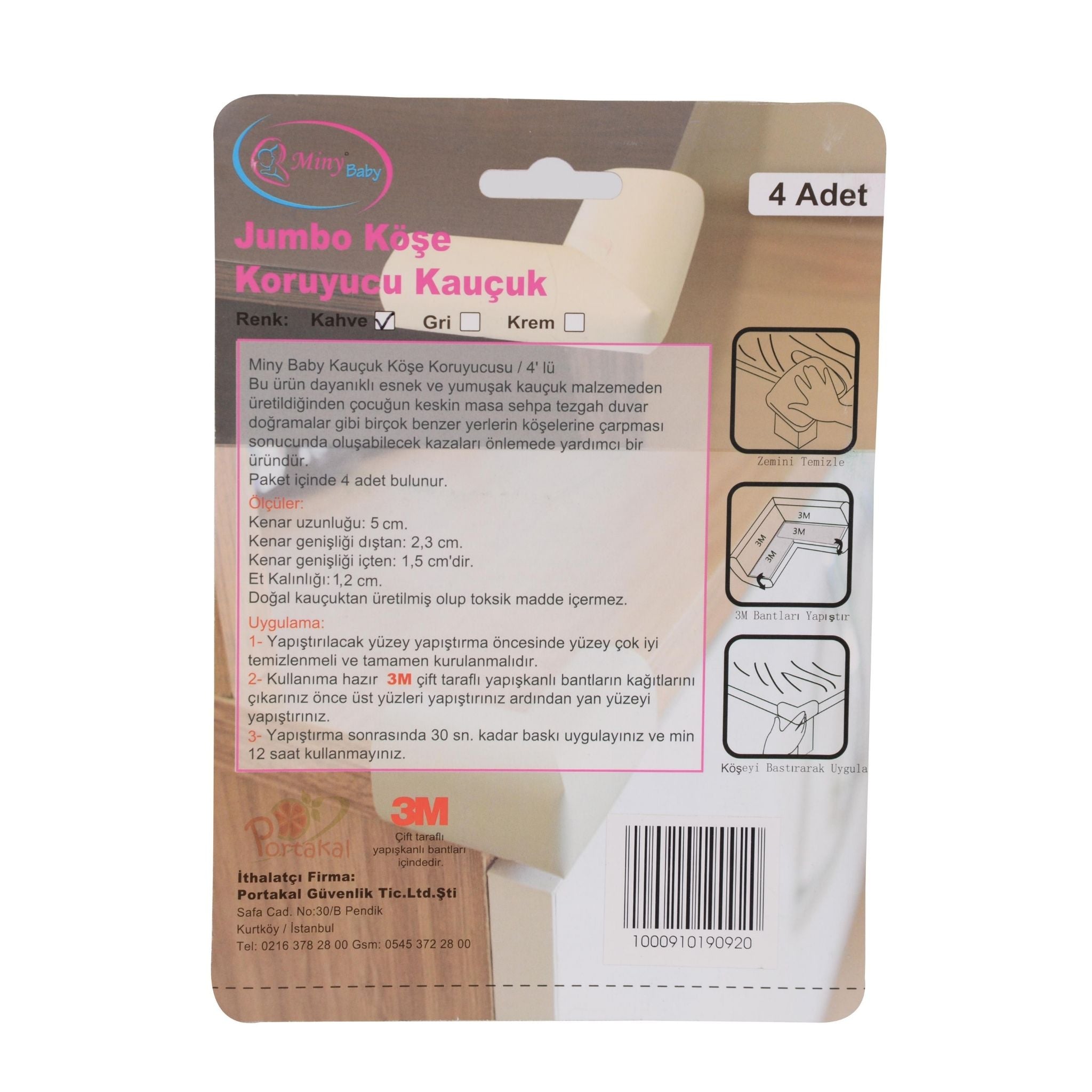 Miny Baby Jumbo Köşe Koruyucu, evinizdeki keskin köşeleri yumuşatarak hem çocuklar hem de yetişkinler için güvenli bir ortam oluşturur. Yüksek yoğunluklu yumuşak kauçuktan üretilmiştir ve darbelere karşı maksimum koruma sağlar. Kahverengi rengiyle mobilyalarınıza doğal bir uyum kazandırır. Özellikle masa, sehpa, tezgah, dolap ve duvar köşelerinde çarpma riskini azaltmak için ideal bir çözümdür.