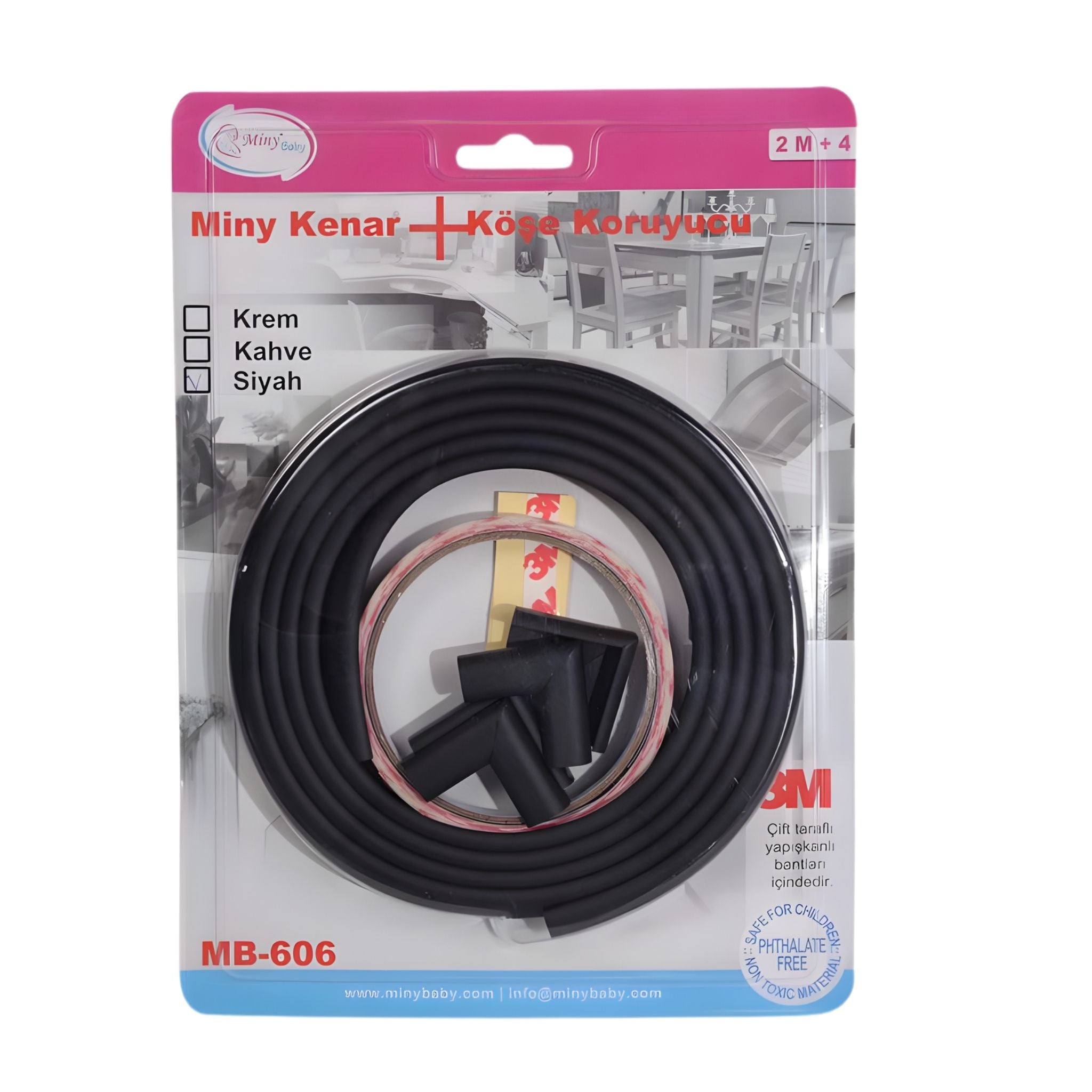 Miny Baby Miny Kenar, Miny Köşe Koruyucu seti, çocukların ev içinde keskin kenar ve köşelere çarpma riskini en aza indirmek için özel olarak tasarlanmıştır. Yumuşak, esnek ve yüksek yoğunluklu kauçuk yapısı sayesinde darbelere karşı etkili koruma sağlar. Siyah rengiyle modern mobilyalarla uyumlu bir görünüm sunar.