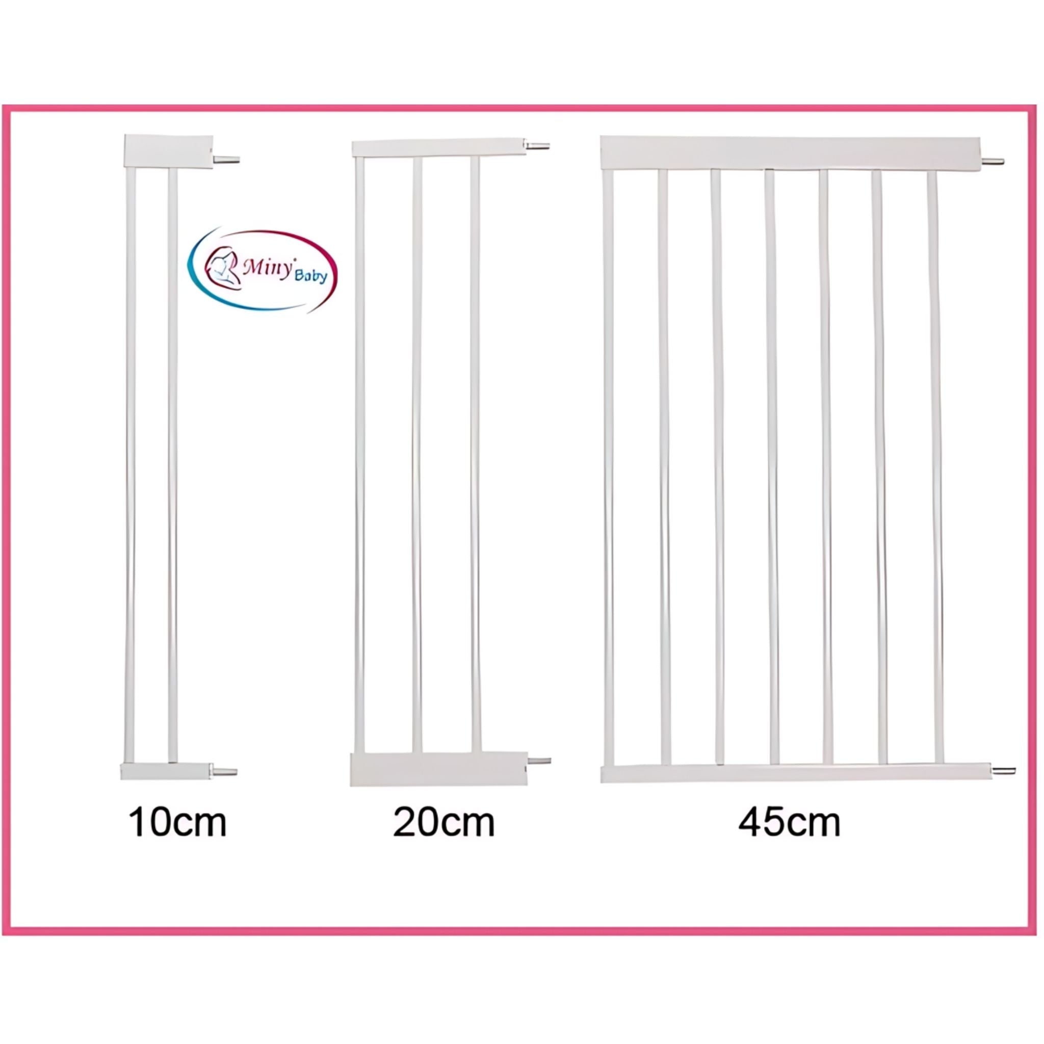 Miny Baby Auto Close Uzatma Parçası, güvenlik kapılarınızı ihtiyacınıza göre genişletmek için tasarlanmış sağlam bir eklentidir. 45 cm genişliğe sahip bu uzatma parçası, özellikle geniş geçiş alanlarında güvenlik kapınızın uyumunu kolaylaştırır. Paslanmaya karşı dayanıklı metal gövdesi ve toksik madde içermeyen beyaz boyasıyla uzun ömürlü kullanım sunar.