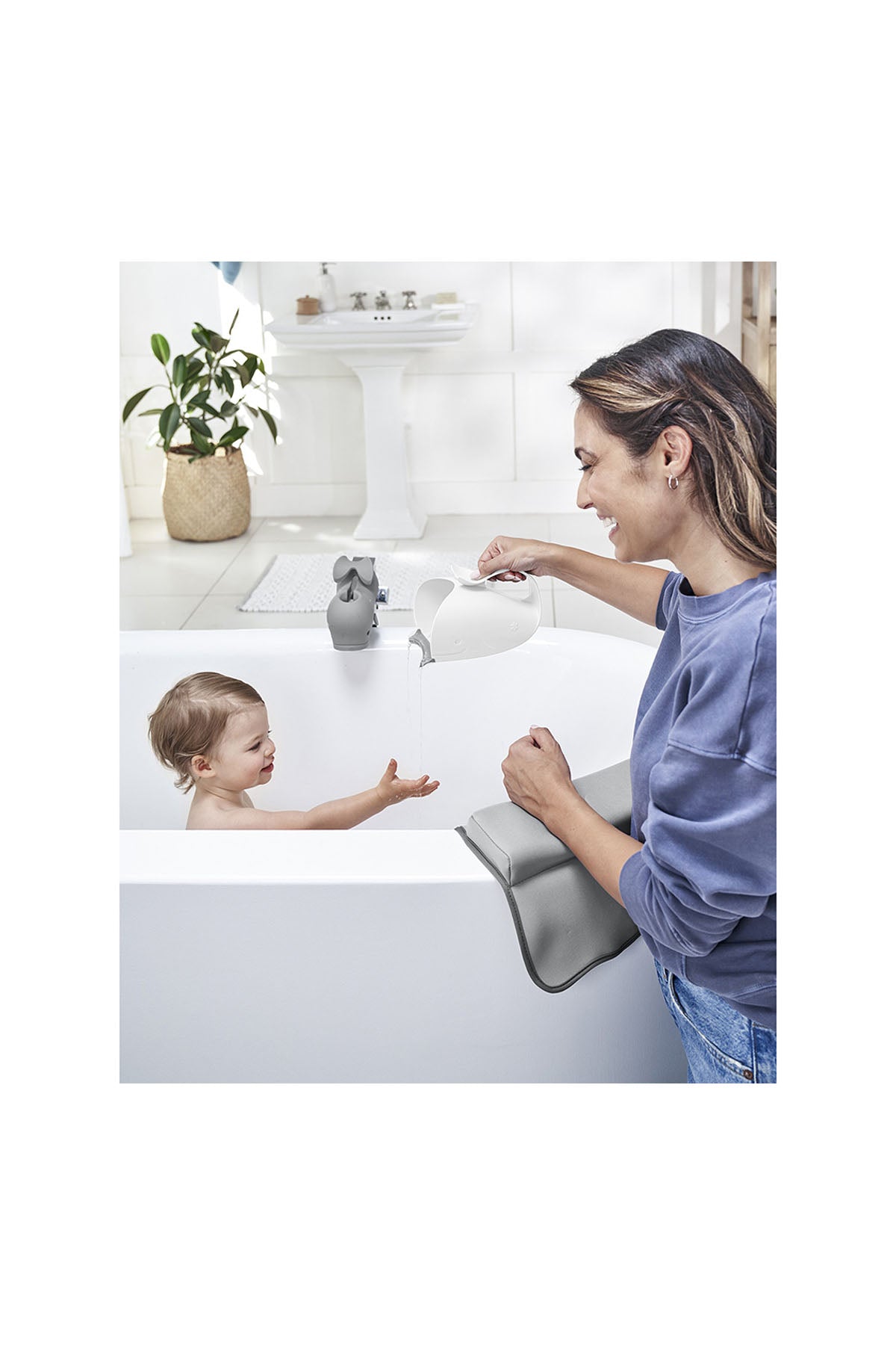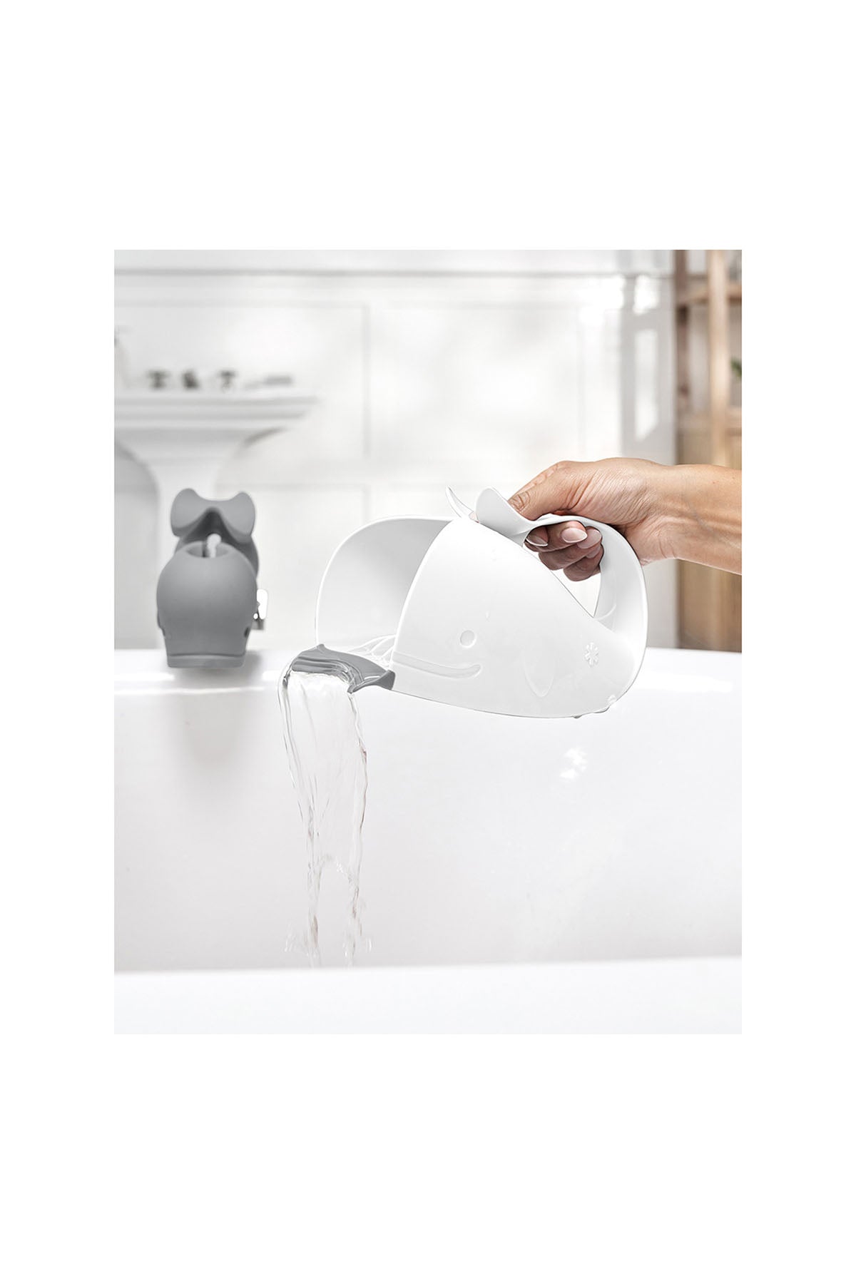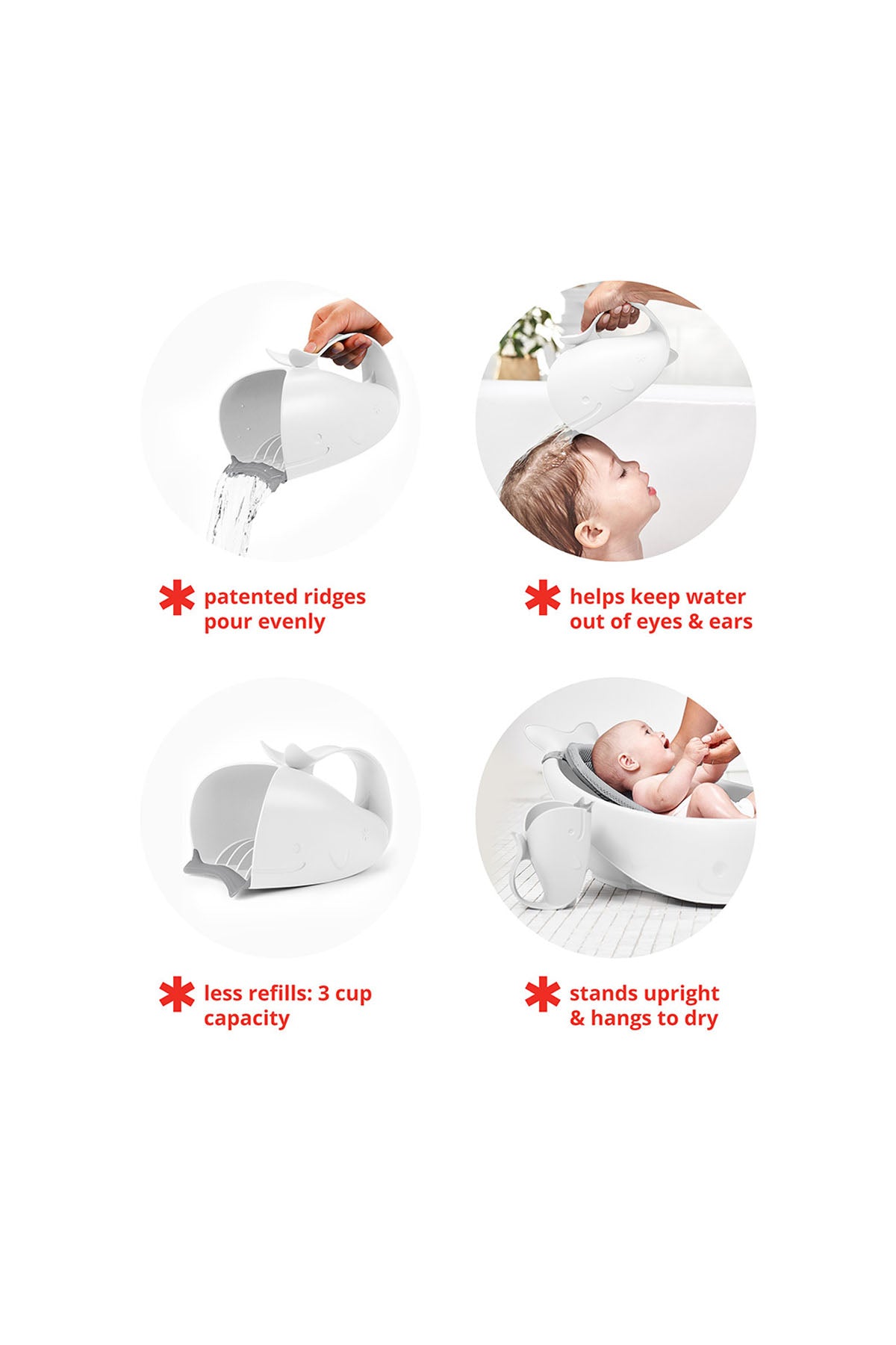 Bebeğinizin banyo sürecini hem daha konforlu hem daha eğlenceli hale getirmek için tasarlanan Moby bebek durulama maşrapası, gözleri ve kulakları sudan koruyan yenilikçi yapısıyla öne çıkar. Balık formundaki özel tasarımı sayesinde su, bebeğin yüzüne temas etmeden saç diplerine eşit şekilde dağılır. Patent başvurusu yapılmış bu özel yapı, banyo sırasında maksimum kontrol ve rahatlık sunar. Ergonomik tutma sapı sayesinde tek elle kolay kullanım imkânı sağlar. Diğer elinizle bebeğinizi desteklerken maşrapayı güvenli şekilde kullanabilirsiniz. Yumuşak dudak kısmı, bebeğin başına nazikçe yaslanır ve suyun kontrollü akışını sağlar. Kullanım sonrası dik durabilir ya da askıdan asılarak kurutulabilir. BPA, PVC ve ftalat içermeyen malzemesiyle bebeğiniz için güvenlidir.