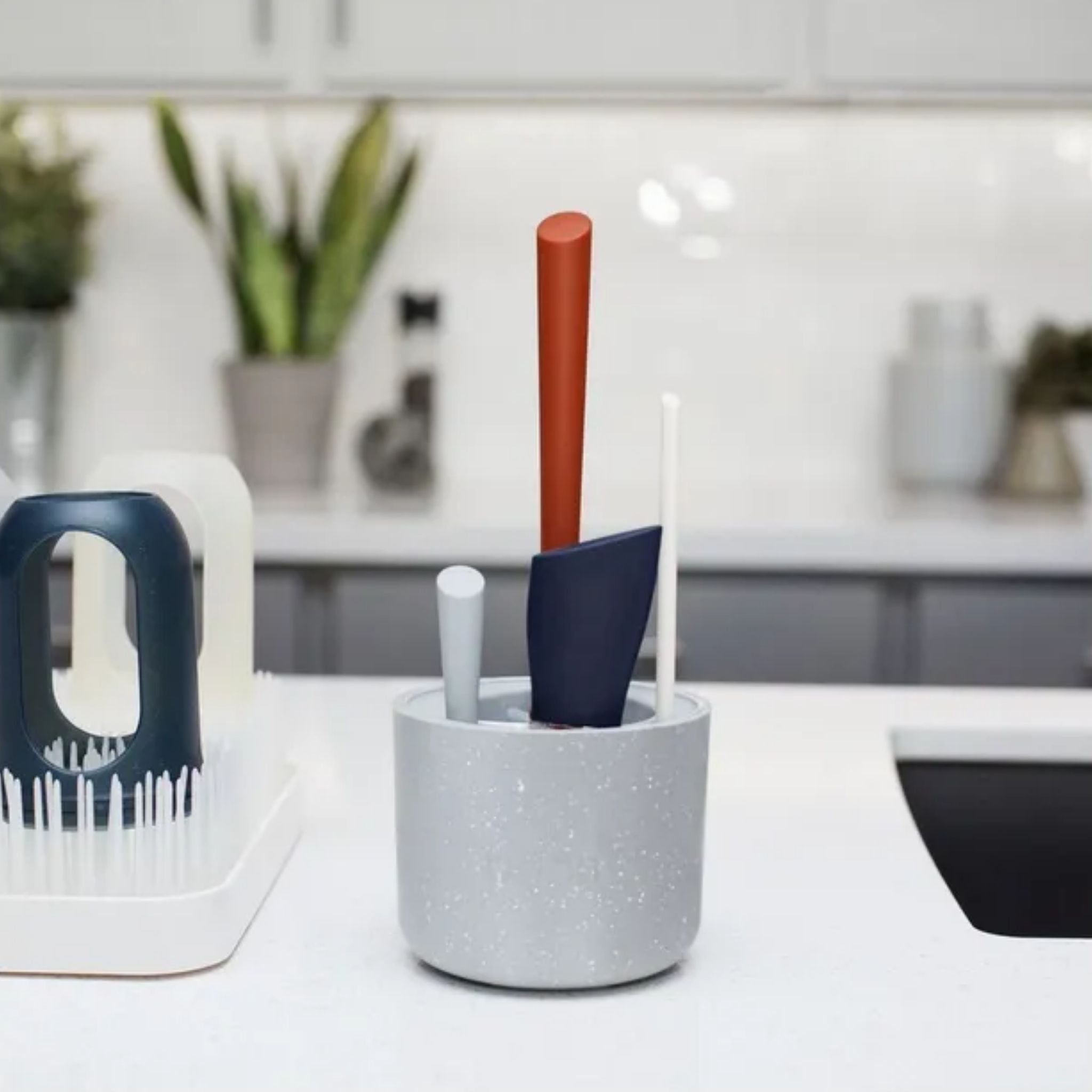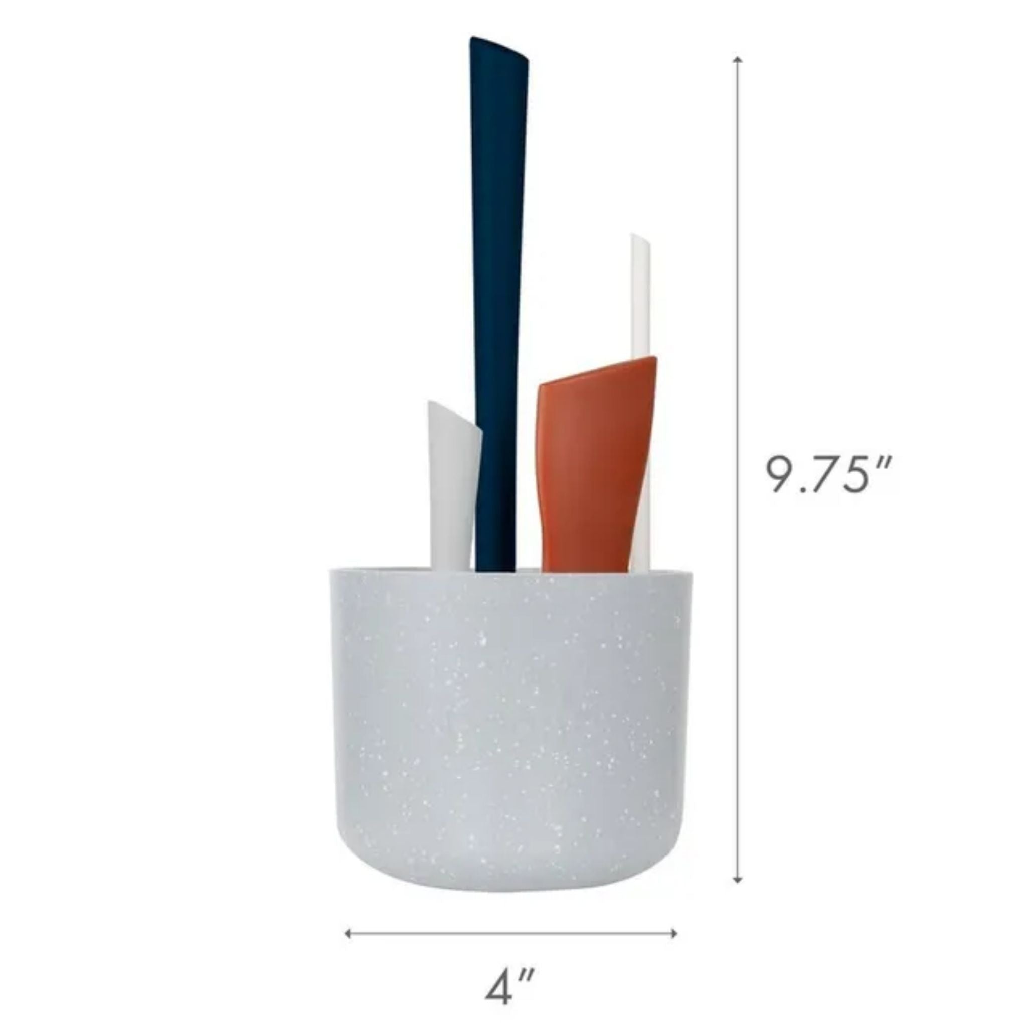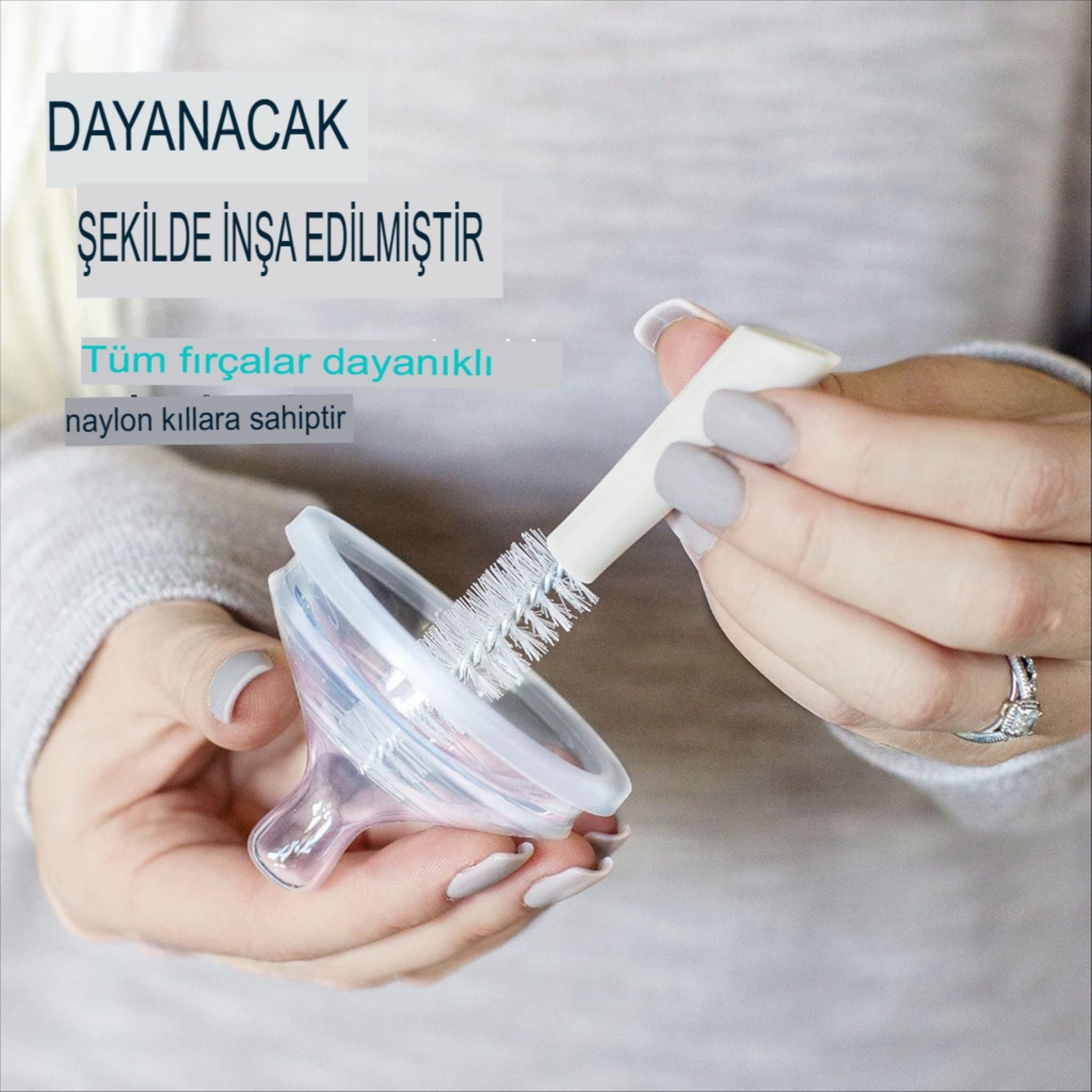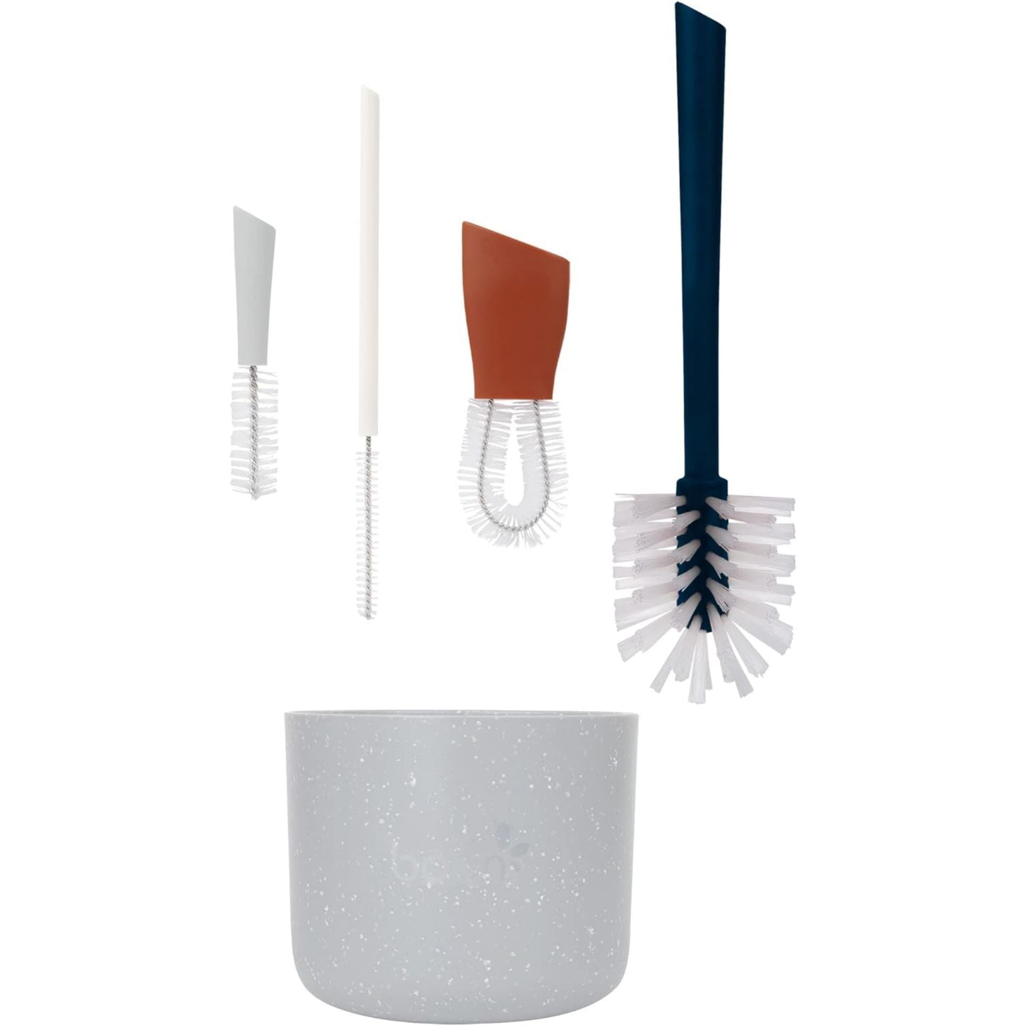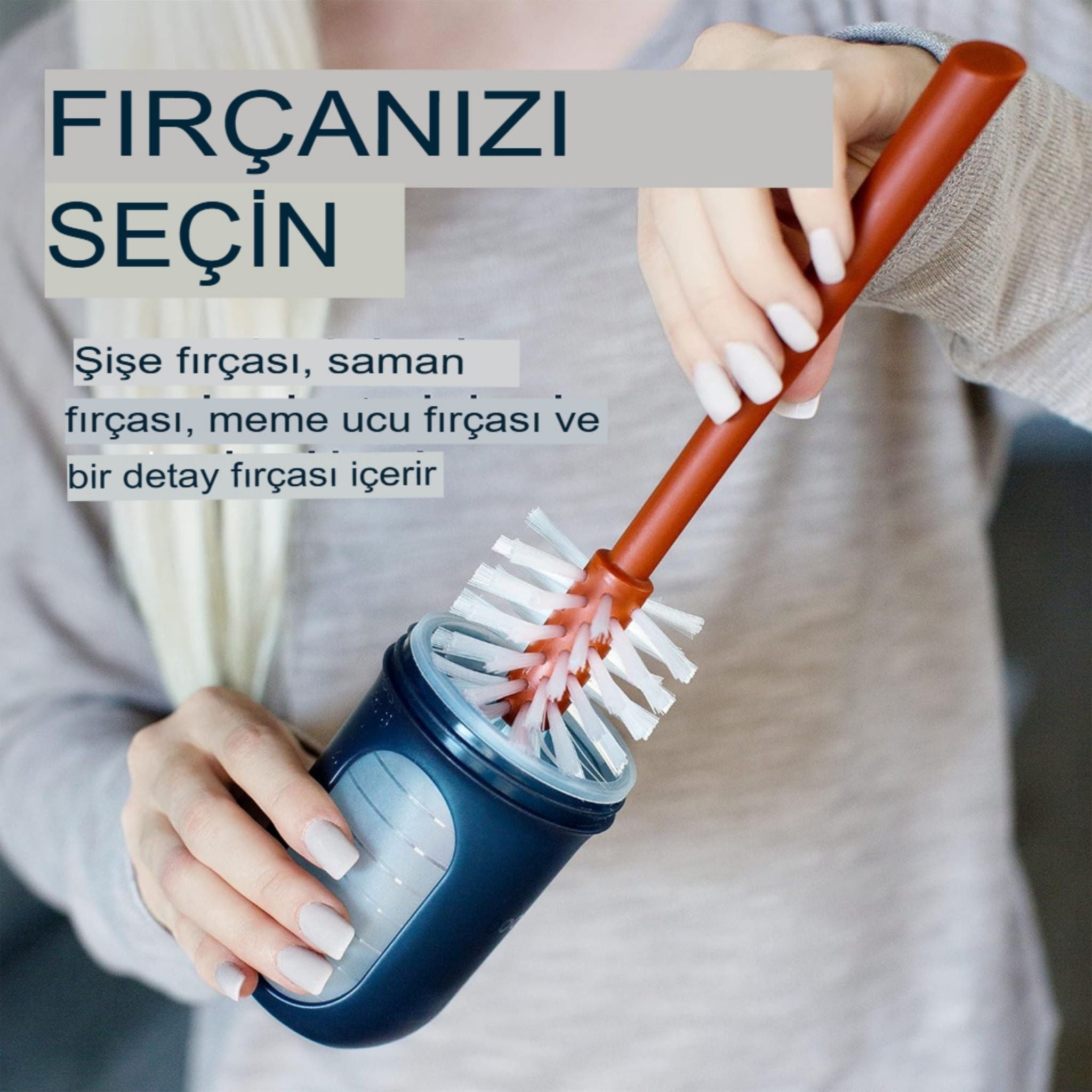 Boon Mod biberon temizleme seti, bebek beslenme ekipmanlarının hijyenini sağlamak için pratik ve etkili bir çözüm sunar. Şık tasarıma sahip bu set, farklı temizlik ihtiyaçlarına yönelik dört ayrı fırça içerir. Şişelerden damlatmaz bardaklara, pipetlerden emziklere ve göğüs pompası parçalarına kadar her alanın detaylı şekilde temizlenmesine yardımcı olur. Dayanıklı naylon kıllar, zor ulaşılabilen bölgelerde bile biriken kalıntıları kolayca temizlerken fırçaların uzun ömürlü olmasını sağlar. Setin şık vazosu, fırçaların düzenli şekilde bir arada durmasını sağlar ve suyu tahliye ederek hijyenik bir kurutma ortamı oluşturur. BPA ve PVC içermeyen yapısı sayesinde bebek ürünleriyle temas için güvenli olan Mod fırça seti, günlük temizlik rutininin çok daha hızlı, düzenli ve etkili hâle gelmesine yardımcı olur.