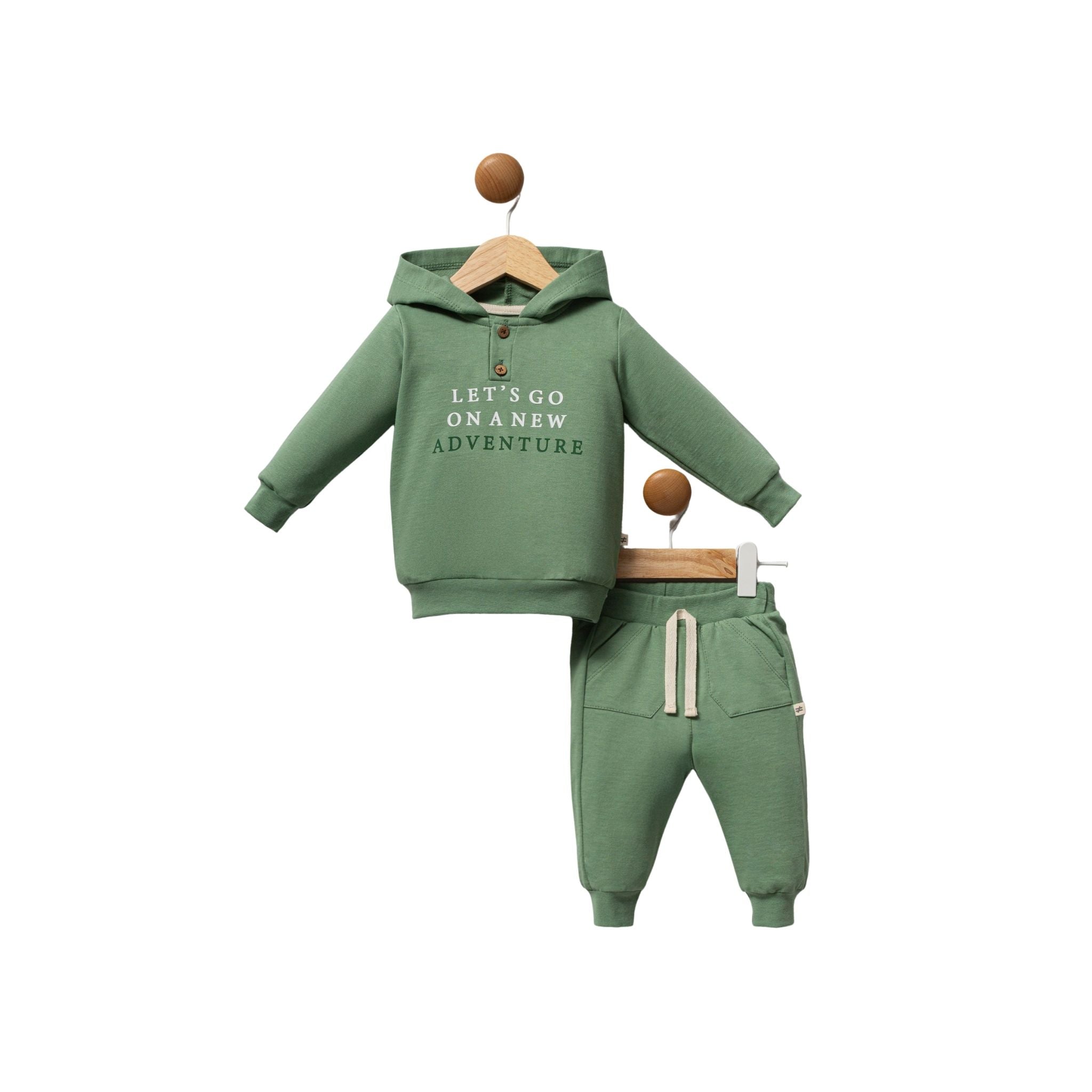Enerjik erkek çocukları için özel olarak tasarlanan Moi Noi Erkek Takım Adventure, şık tasarımı ve rahat kalıbıyla dikkat çekiyor. Yeşil tonlardaki modern görünümü ve “Let’s Go on a New Adventure” baskısıyla macera ruhunu yansıtıyor. %100 pamuk kumaşı sayesinde nefes aldırır, terletmez ve gün boyu rahatlık sunar. Günlük kullanım için ideal olan bu takım, hem evde hem de dışarıda şıklıkla tercih edilebilir.