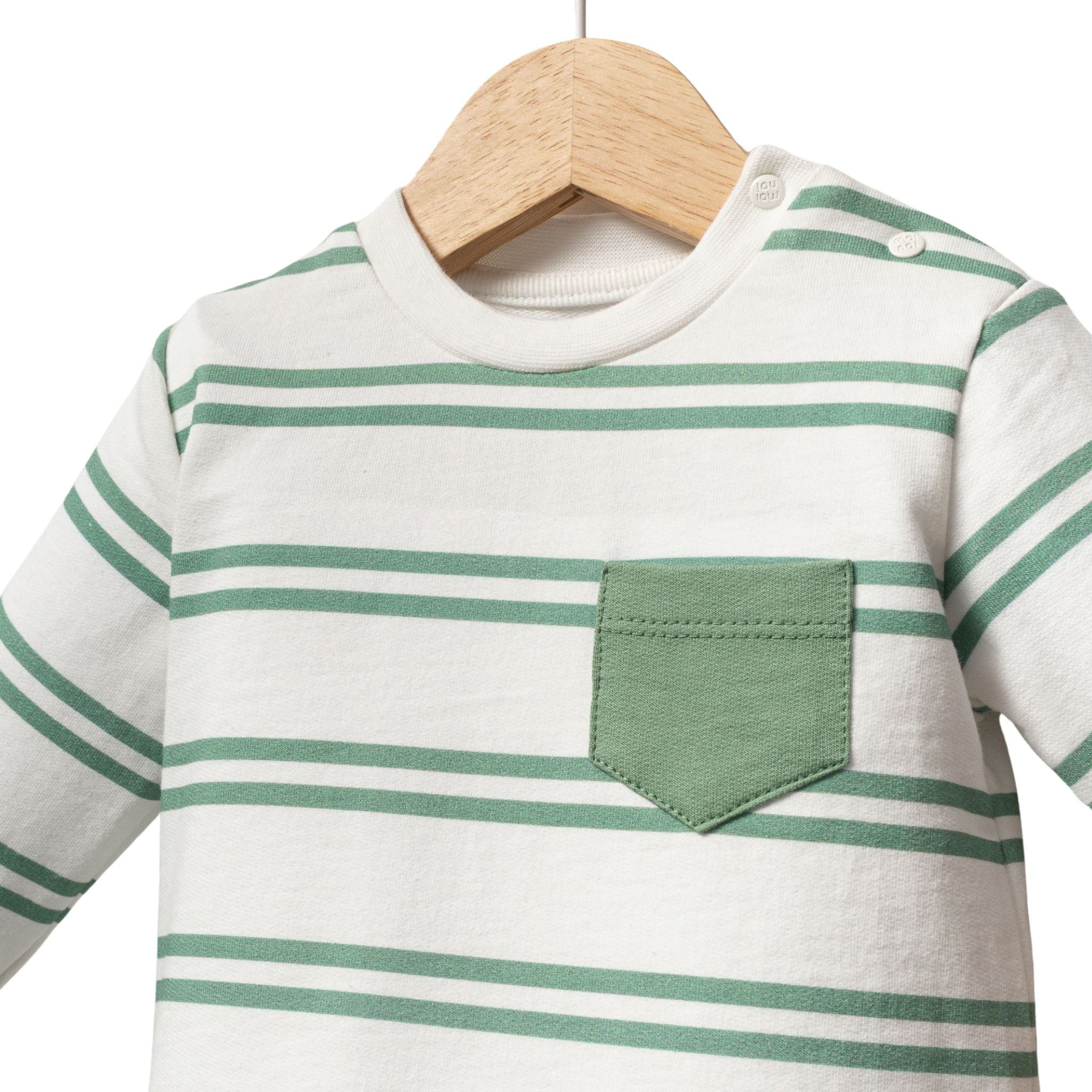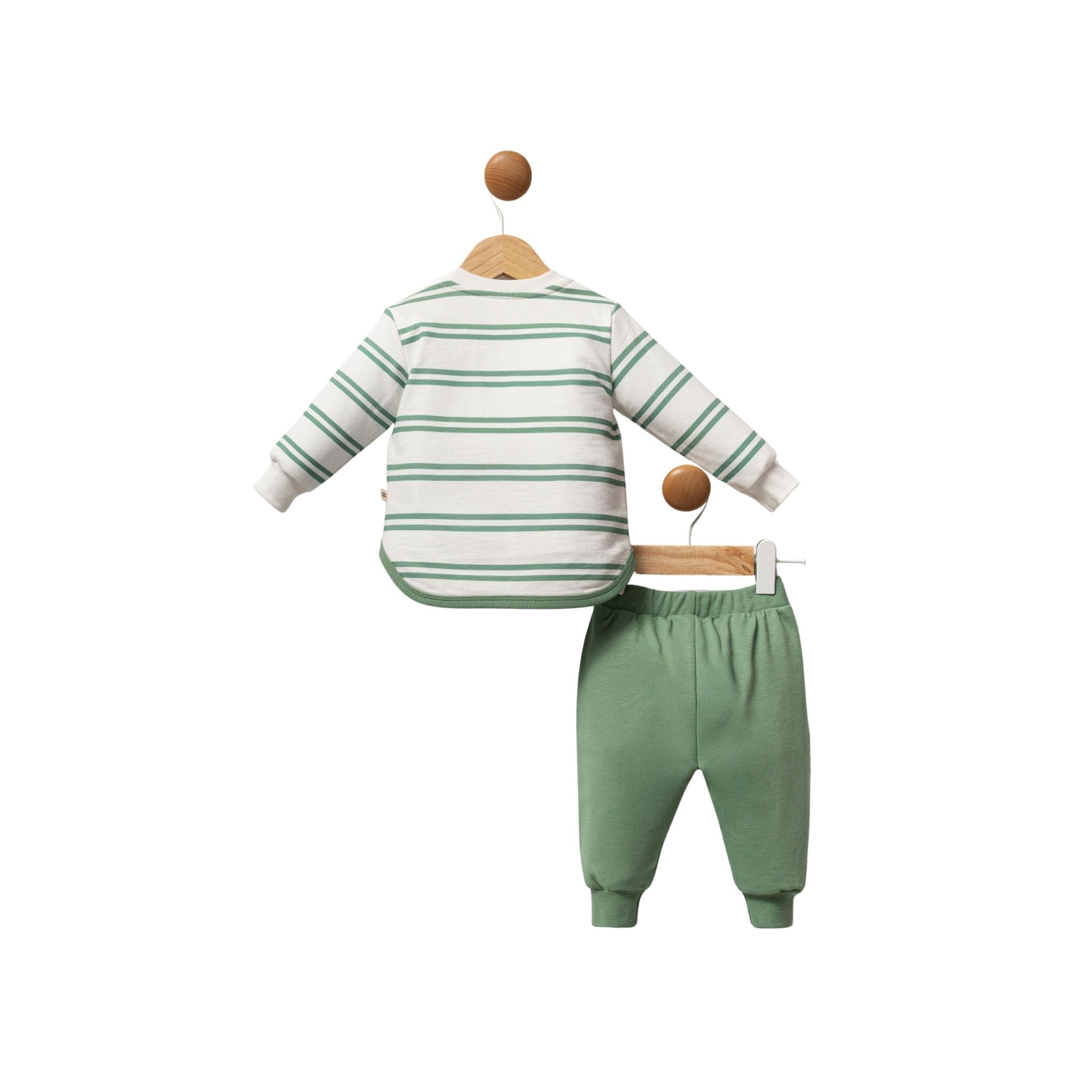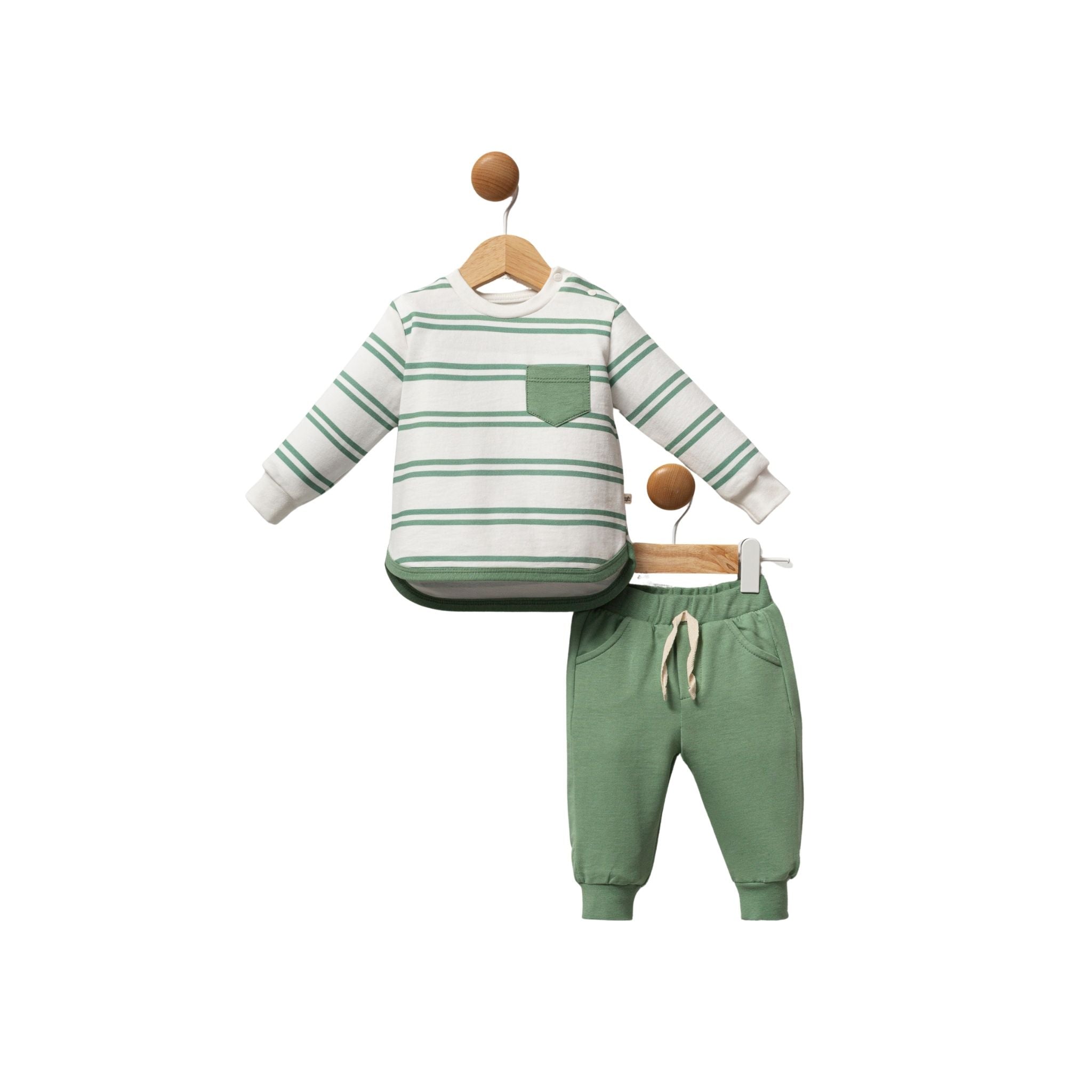 Modern çizgili deseniyle dikkat çeken Moi Noi Erkek Takım Çizgili, hem şıklığı hem de rahatlığı bir arada sunar. Üst kısmında yeşil-beyaz çizgili tasarım ve şık bir cep detayı bulunurken, alt parça düz yeşil eşofman tarzıyla kombini tamamlar. %100 pamuk kumaşı sayesinde cilt dostudur, nefes aldırır ve gün boyu konfor sağlar.