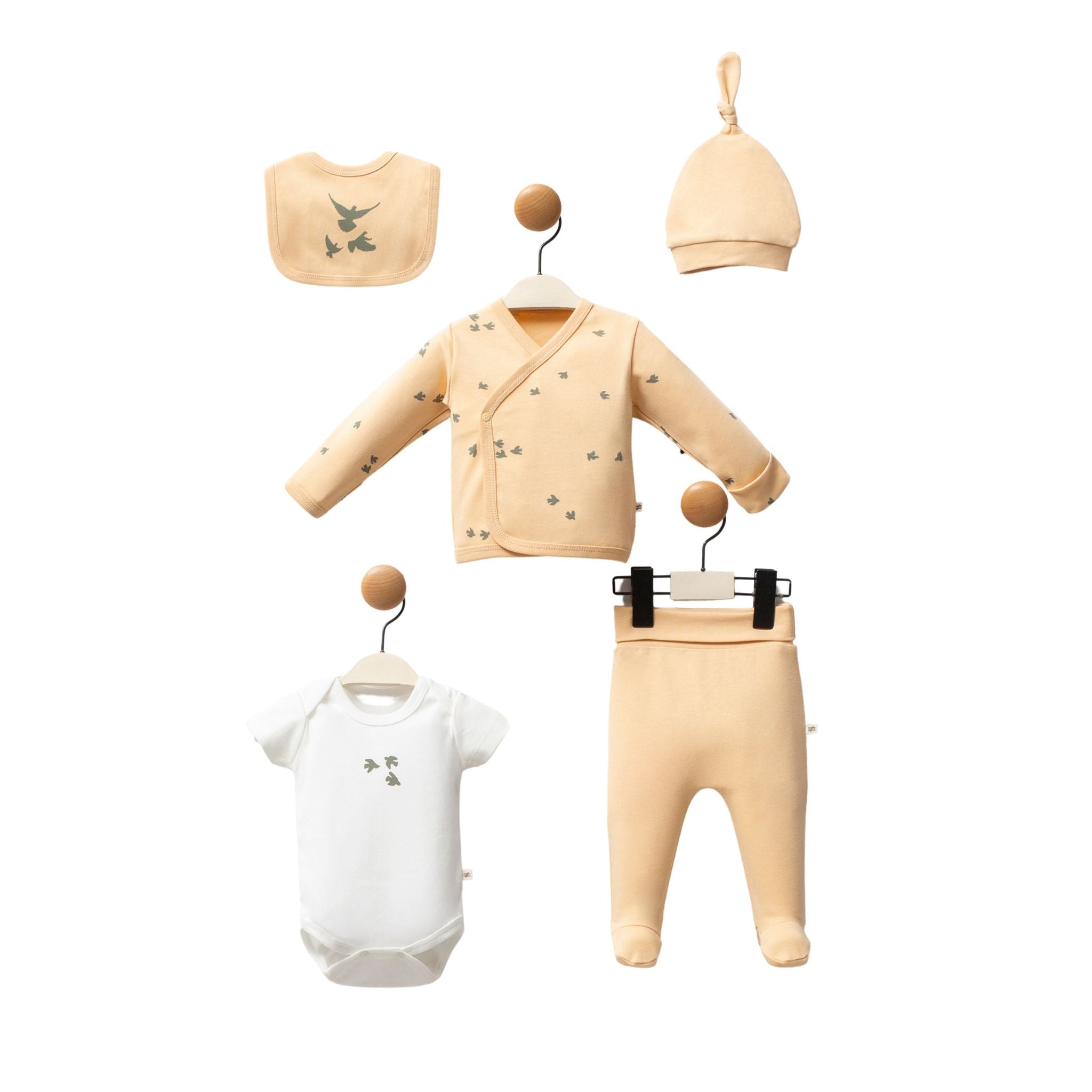 Yeni doğan bebekler için en değerli an, dünyaya geldikleri o ilk gündür. Moi Noi Hastane Çıkışı 5’li Set, bu özel anı konfor, kalite ve şıklıkla buluşturuyor. %100 pamuk kumaştan üretilmiş bu set, bebeğinizin hassas cildine nazikçe dokunur ve maksimum yumuşaklık sağlar. Her biri özenle tasarlanmış 5 parça, doğumdan sonraki ilk giyimde ihtiyaç duyulan her detayı sunar. Yüksek kaliteli pamuklu kumaşı sayesinde nefes alır, terletmez ve alerji riskini en aza indirir. 30 derecede kolayca yıkanabilir olmasıyla pratiklik sunar, bebeğiniz için hijyenik bir kullanım sağlar. Bebeğinizin ilk kıyafeti, onun cildine en az sizin kadar nazik olmalı. Moi Noi Hastane Çıkışı Seti, hem annelerin hem bebeklerin gönül rahatlığıyla kullanabileceği şekilde tasarlandı. Kaliteyi ve konforu bir arada sunan bu özel set ile bebeğiniz hayata yumuşacık bir dokunuşla başlasın.