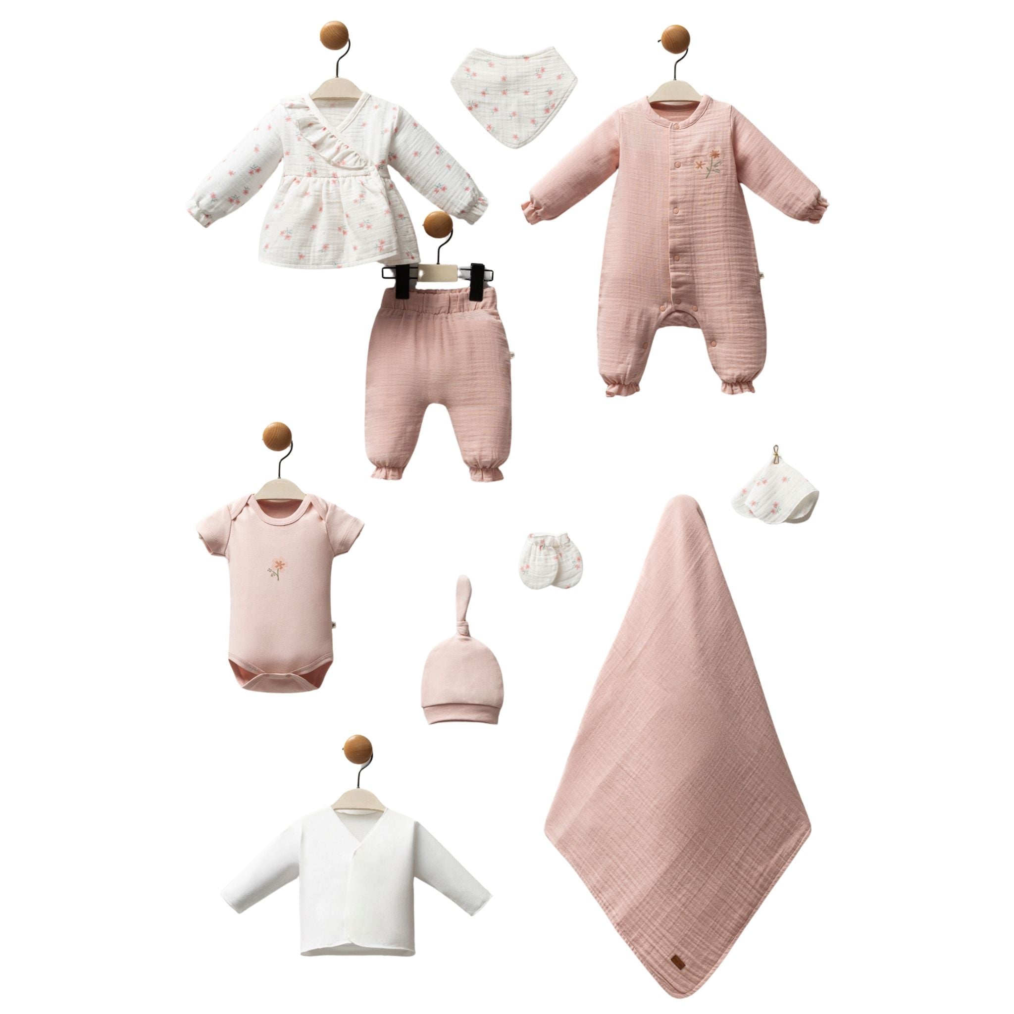 Bebeğinizin ilk günleri için özel olarak hazırlanan Moi Noi Müslin 10’lu Hastane Çıkışı Seti, %100 doğal müslin pamuktan üretilmiştir. Yumuşak dokusu ve nefes alabilen yapısıyla yenidoğan cildine maksimum hassasiyet sunar. 30°C’de yıkanabilir kumaşı sayesinde hijyenik ve pratik kullanım sağlar. Yeni doğan bebeğiniz için ihtiyaç duyabileceğiniz tüm parçalar bu sette bir arada!