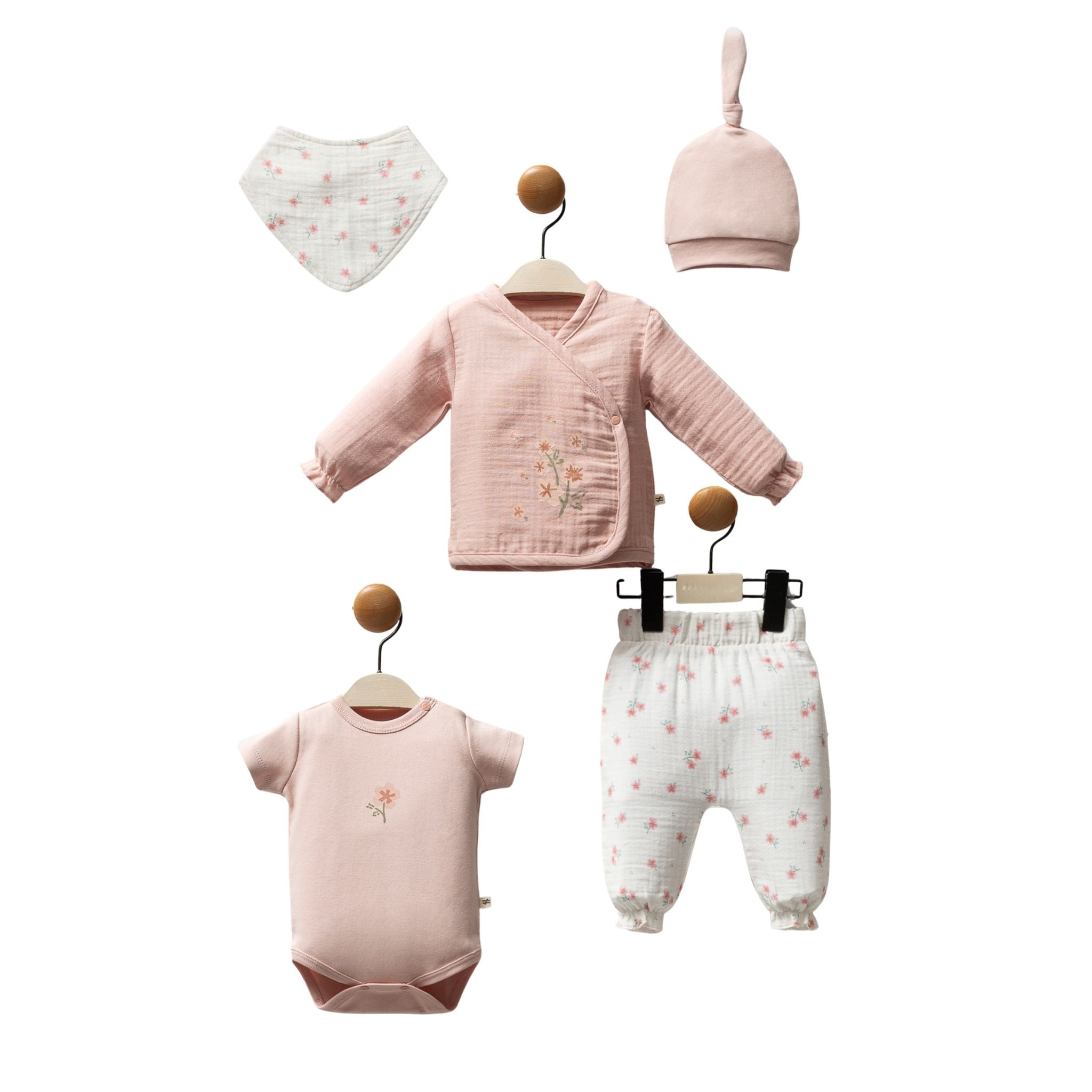 Yeni doğan bebeğinizin ilk anlarında hassas cildine yumuşak dokunuşlar sunmak için özel olarak tasarlanan Moi Noi Müslin 5'li Hastane Çıkışı Seti, doğallık ve şıklığı bir arada sunar. Nefes alabilen, terletmeyen ve %100 pamuk içeriğiyle bebeklerin hassas cildine dost olan müslin kumaş, ilk günden itibaren maksimum konfor sağlar. Moi Noi Müslin 5’li Hastane Çıkışı Seti, bebeklerin ilk günlerinden itibaren hem sizin hem de onların konforunu düşünür. Doğal içerik, zarif tasarım ve güven veren kalite tek pakette!