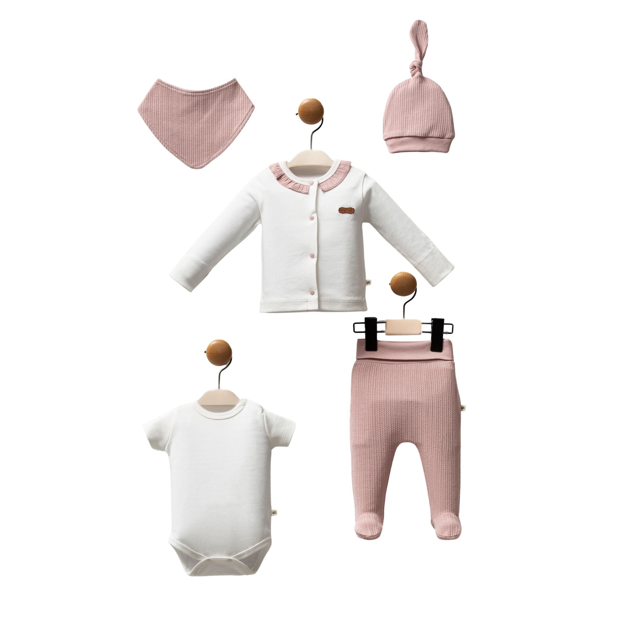 Moi Noi Kız 5’li Hastane Çıkışı, bebeğinizin doğumdan sonraki ilk günlerinde ihtiyaç duyacağı tüm parçaları bir arada sunar. Yumuşacık kumaşı ve zarif tasarımı ile hem şık hem de işlevsel olan bu set, annelerin doğum çantası için vazgeçilmezdir. Pudra pembe detayları ve sade tasarımıyla bebeğinizin ilk anlarını konforlu ve şık hale getirir. Bebeğinizin ilk günlerinde ihtiyaç duyacağı şıklık ve konfor Moi Noi Kız 5’li Hastane Çıkışı ile bir arada!