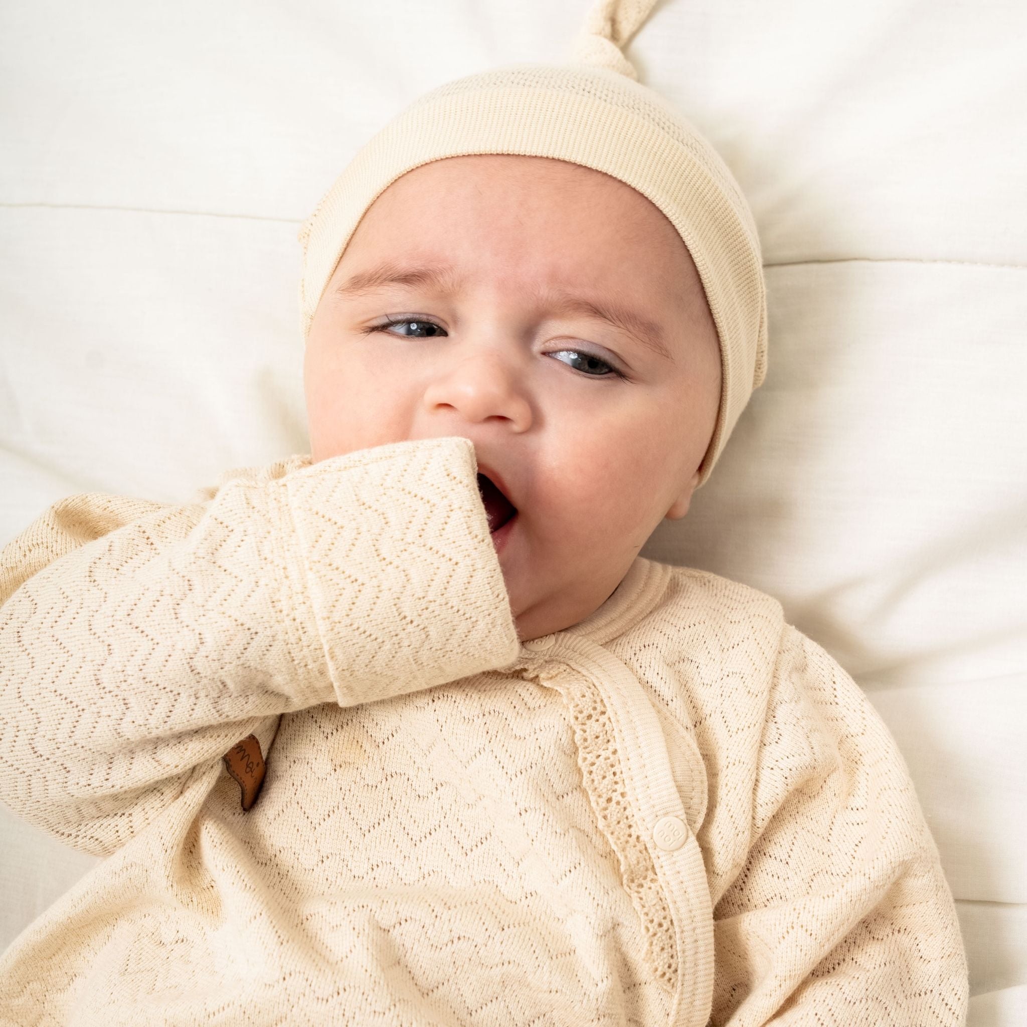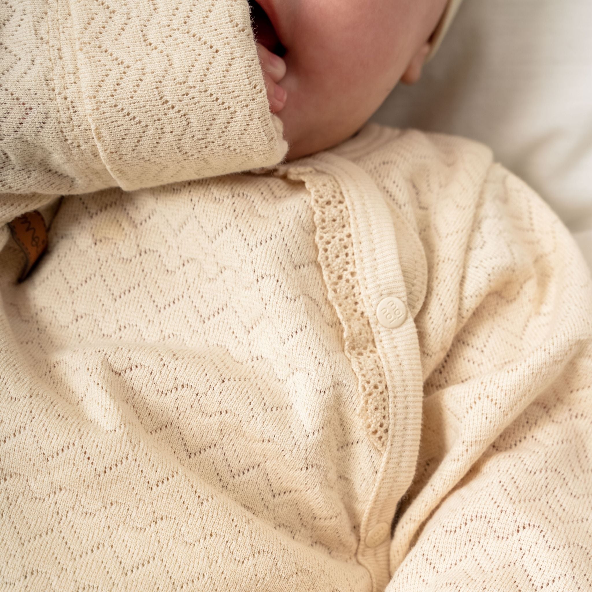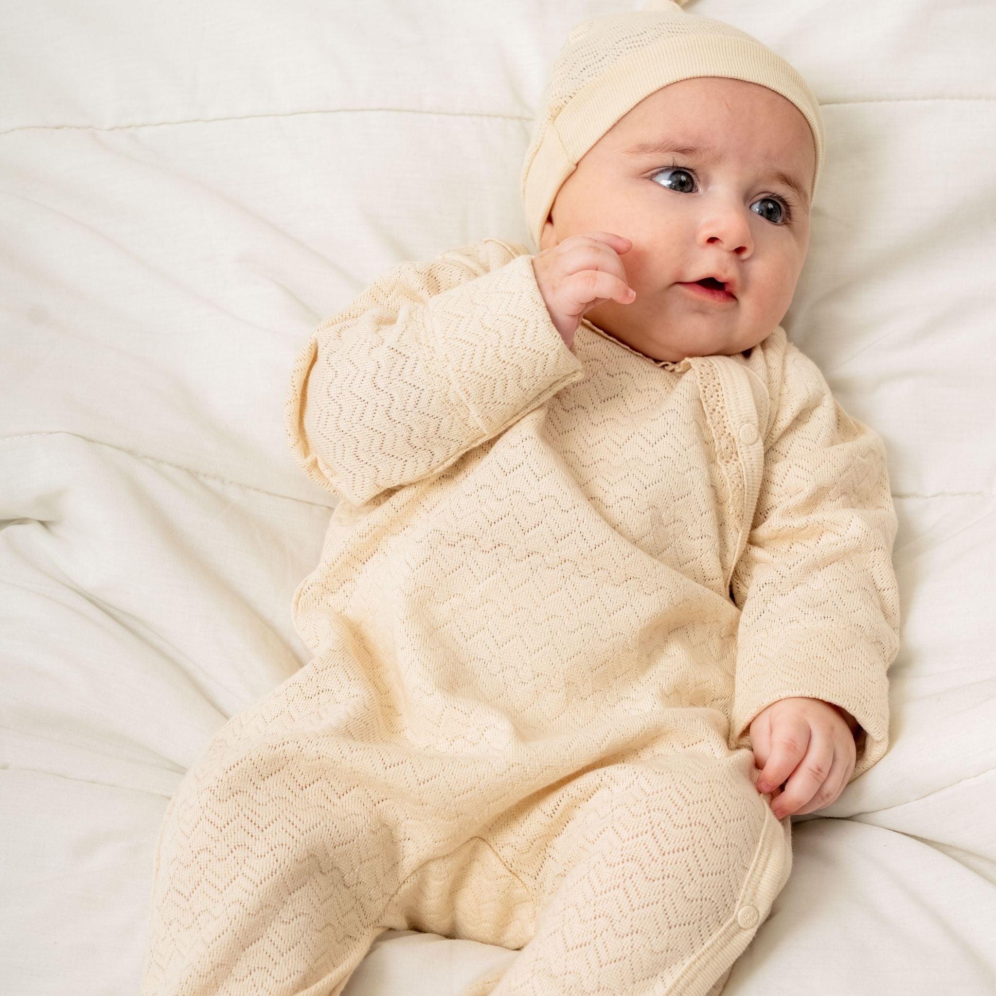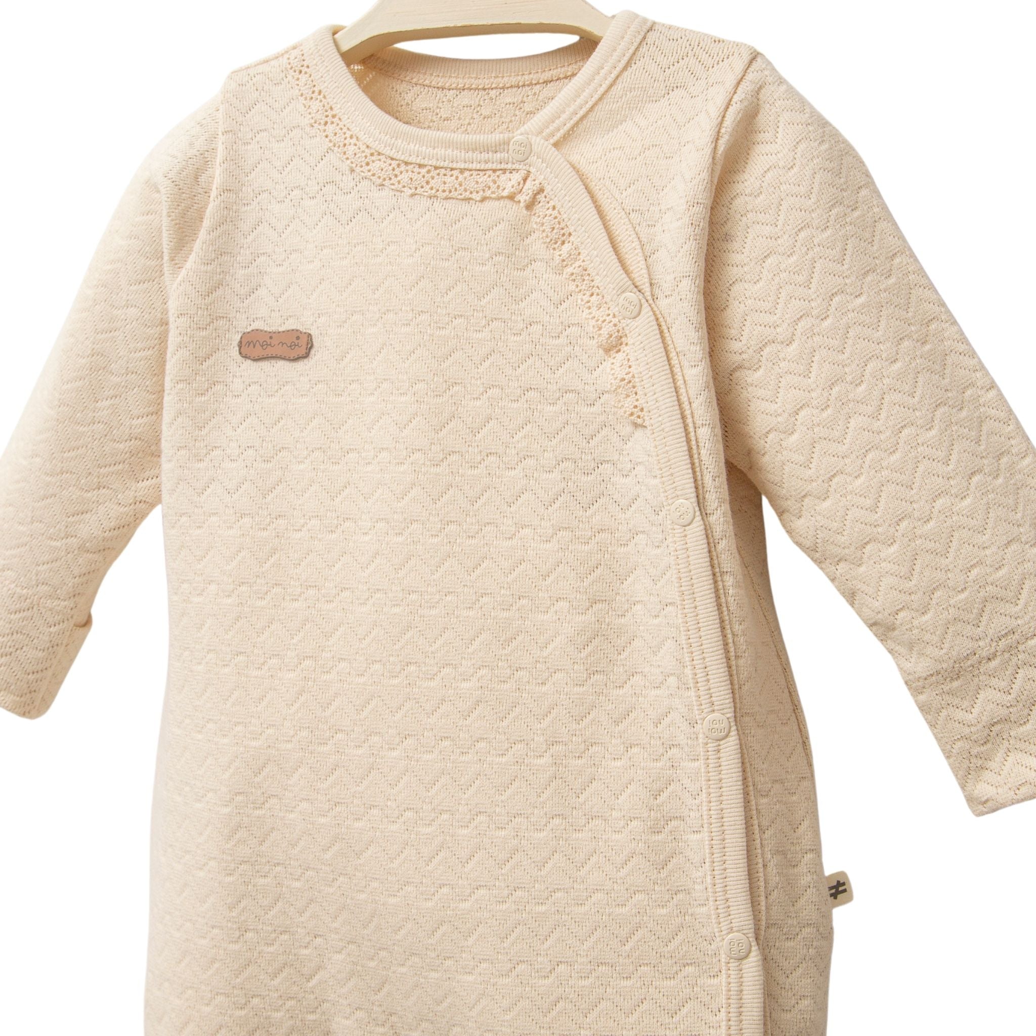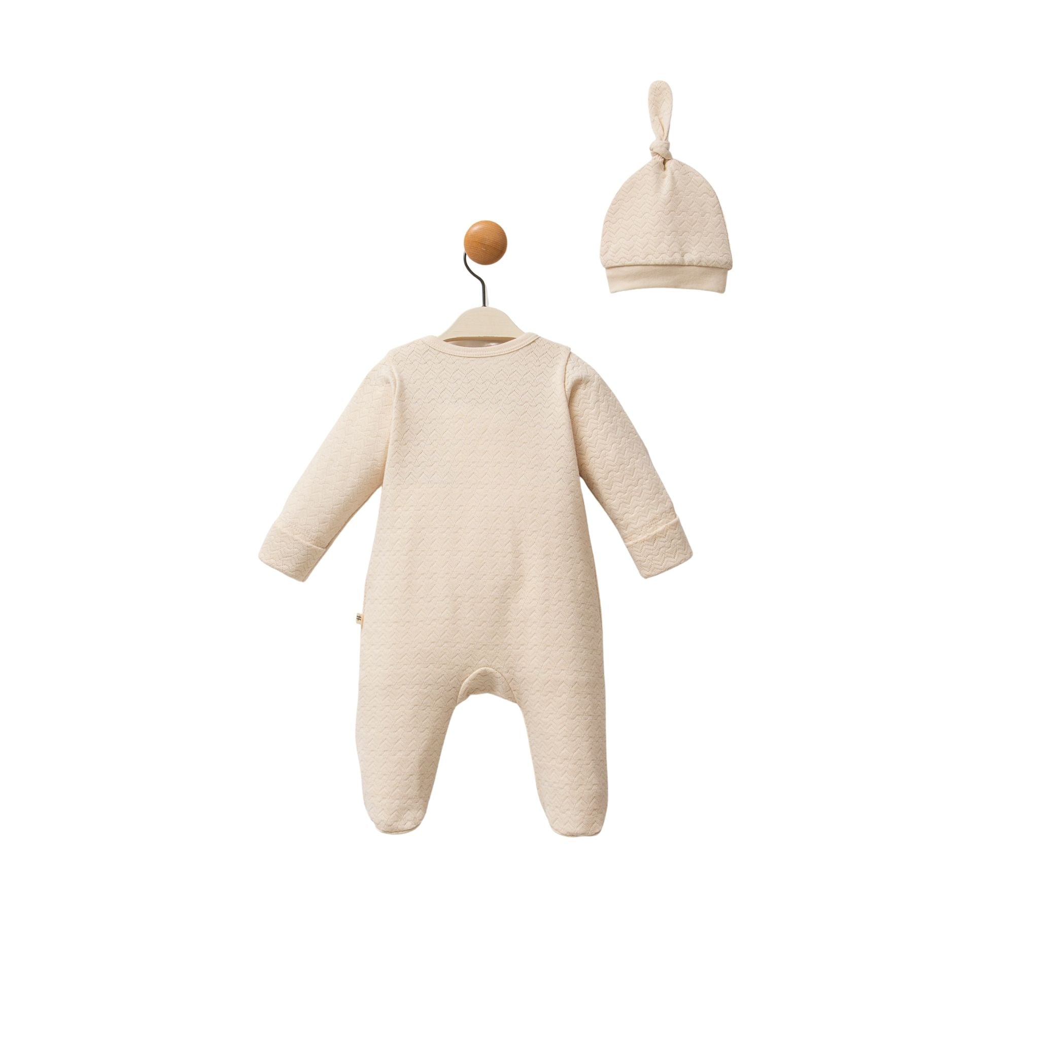 Moi Noi Kız Şapkalı Tulum, bebeğinizin hassas teni için özenle tasarlanmış özel bir parçadır. %100 pamuk kumaştan üretilen bu tulum, doğal yapısıyla bebeğinizin cildine nefes aldırır ve gün boyu rahat etmesini sağlar. Yumuşak dokusu ve esnek yapısı sayesinde hem uyku hem de günlük kullanımda konfor sunar. Üzerindeki ince desenli kumaş detayları ve şık tasarımı ile hem zarif hem de fonksiyonel bir üründür. Şapkası ile takım halinde sunulması bebeğinizin tarzını tamamlar. Ayrıca çıtçıtlı tasarımı sayesinde hızlı ve kolay giydirilip çıkarılabilir.