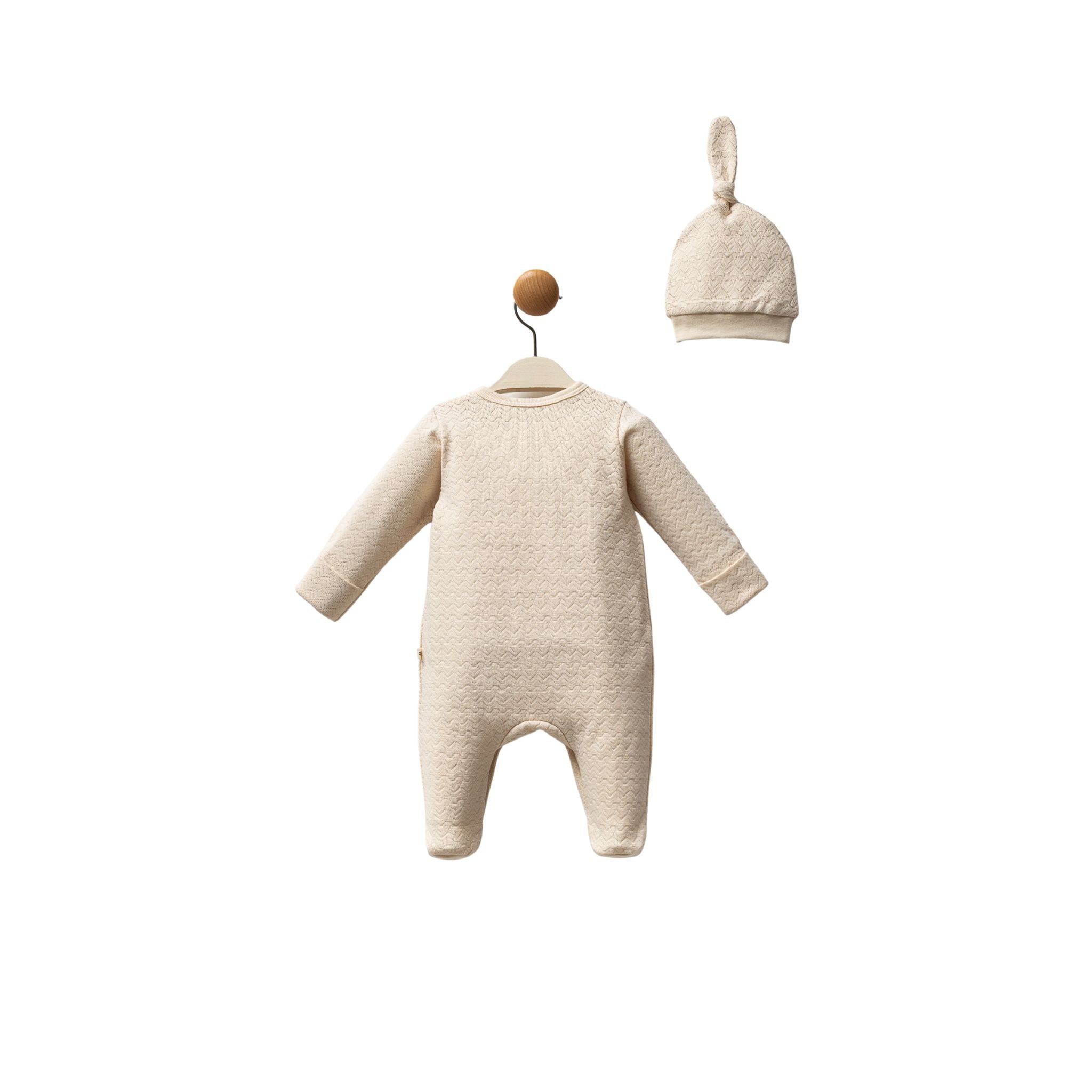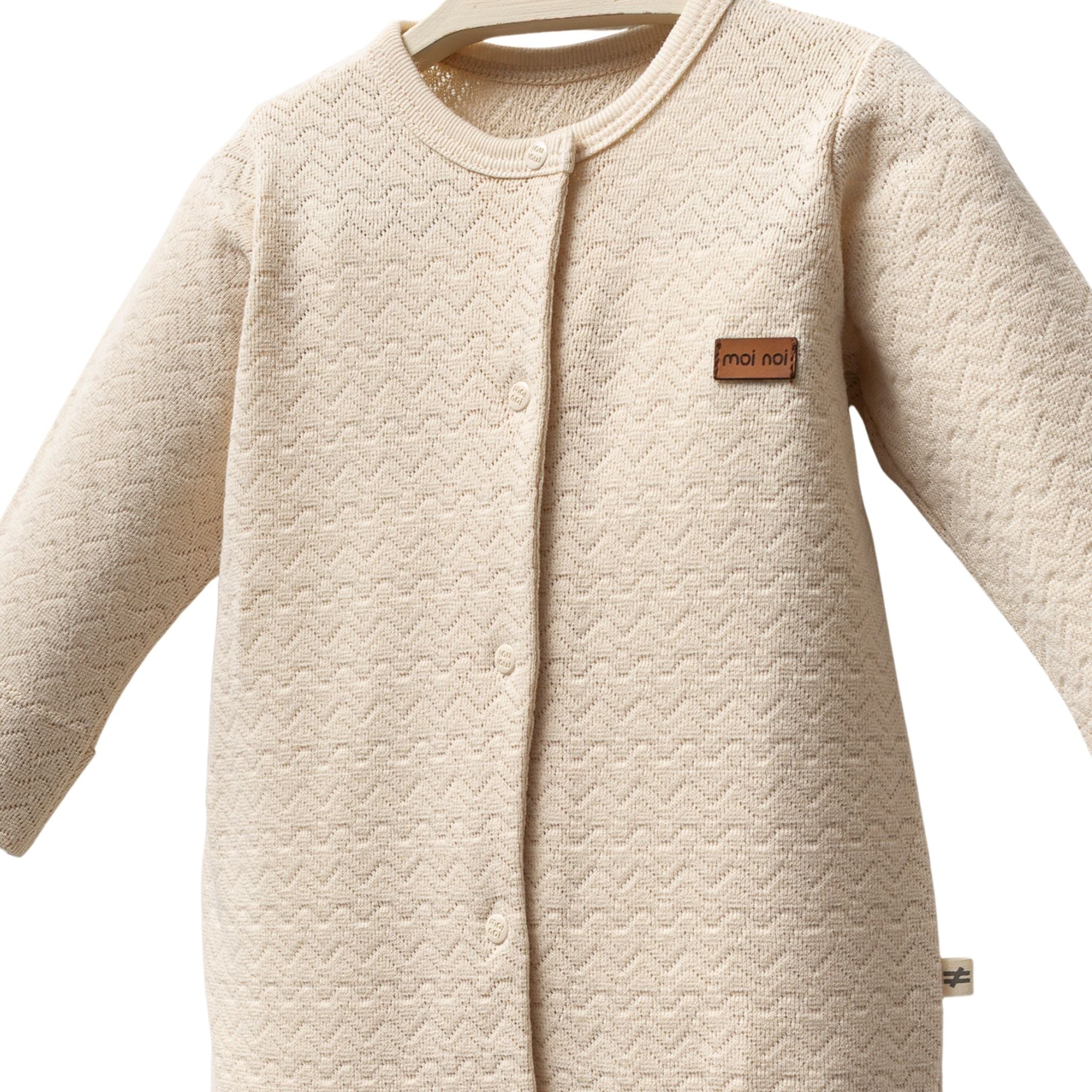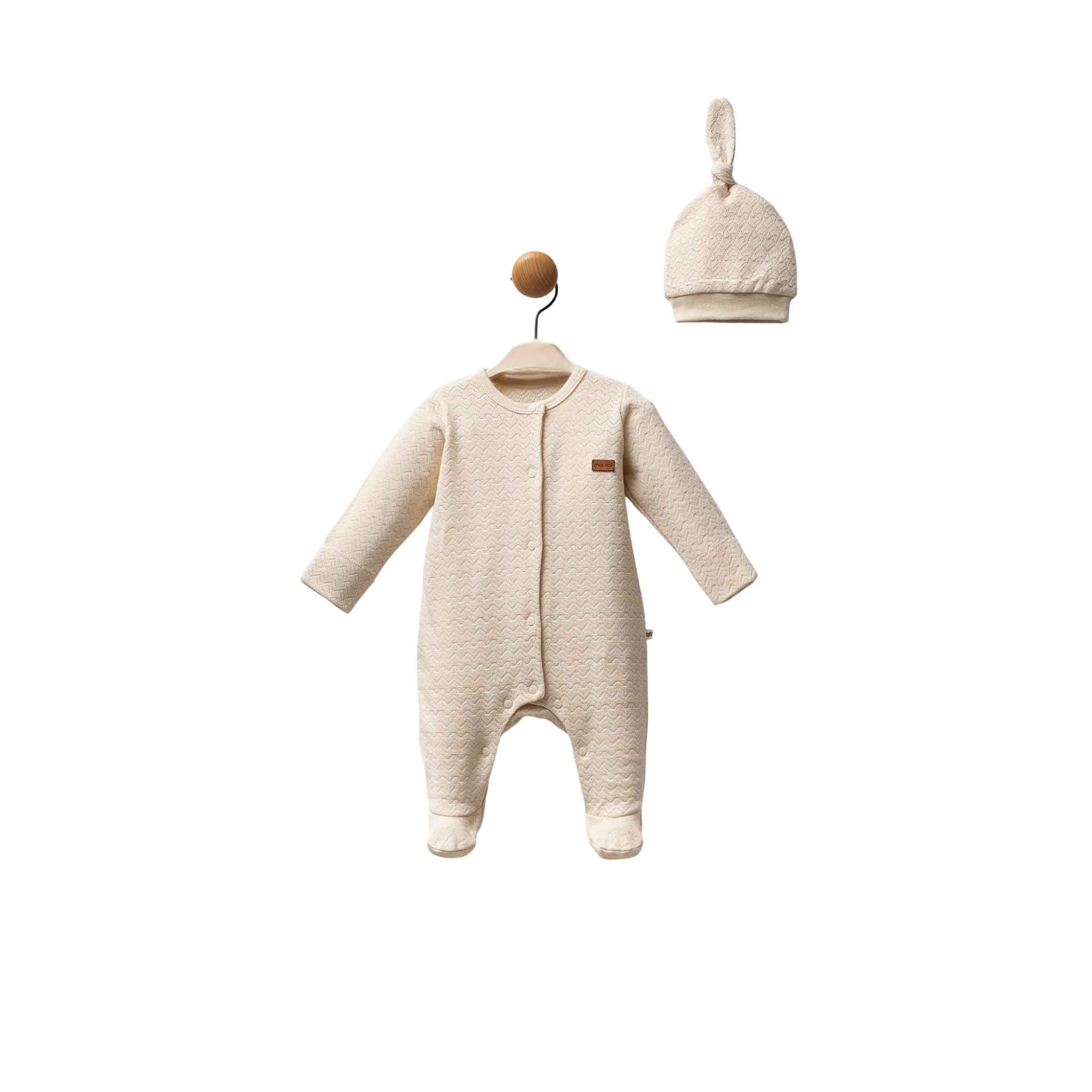 Moi Noi Kız Şapkalı Tulum, miniklerin rahatlığını ve sağlığını düşünerek tasarlanmış özel bir parçadır. %100 pamuk kumaşı sayesinde cildin nefes almasına olanak tanır ve gün boyu konfor sağlar. Yumuşak dokusu bebeğin hassas tenine zarar vermez, alerji riskini azaltır. Pratik çıtçıtlı tasarımı ile ebeveynlere kullanım kolaylığı sunar. Şapka detayı ise hem takımı tamamlar hem de bebeğin başını sıcak tutar. Günlük kullanımda, uyku zamanlarında veya dışarı çıkarken bebeğiniz için güvenle tercih edebilirsiniz.