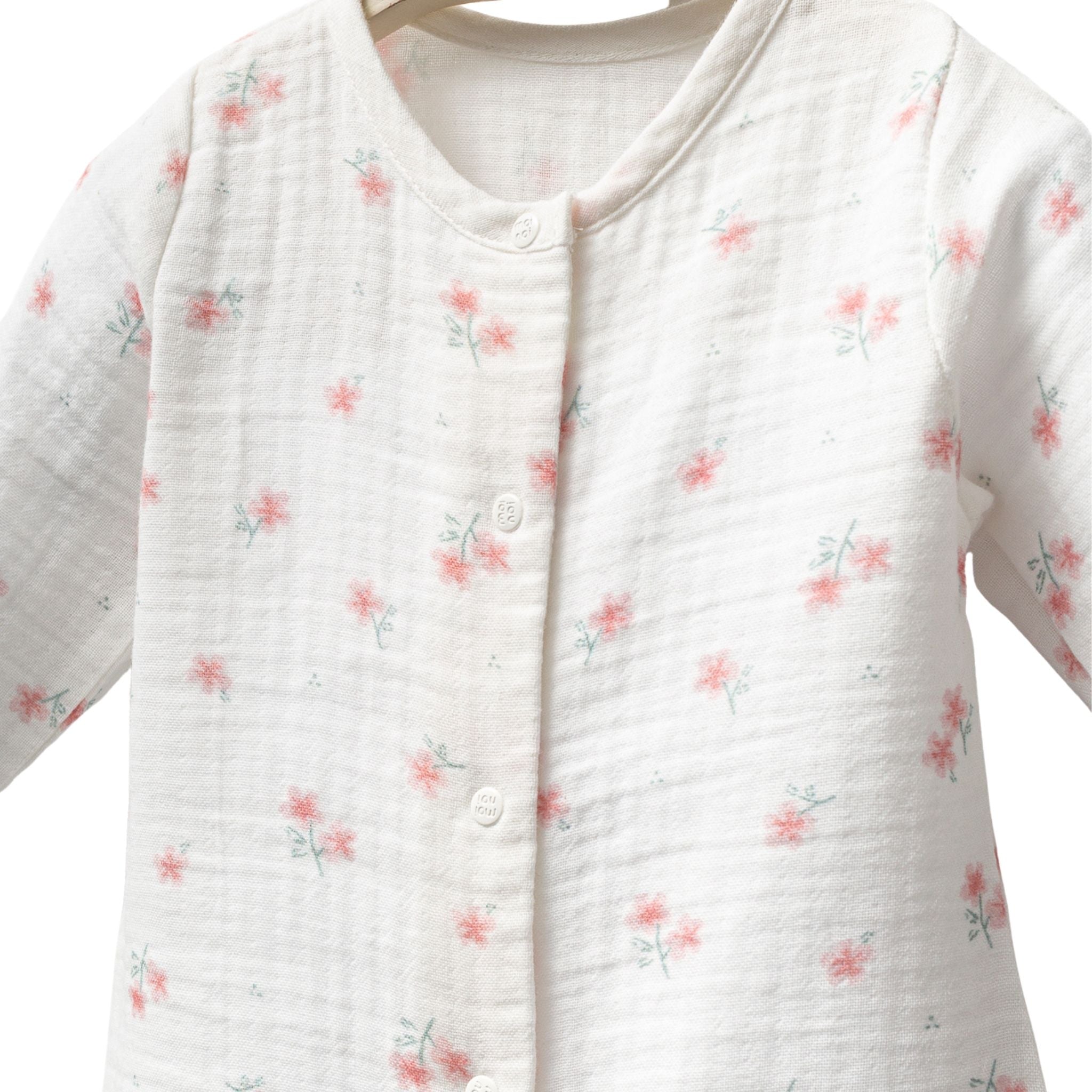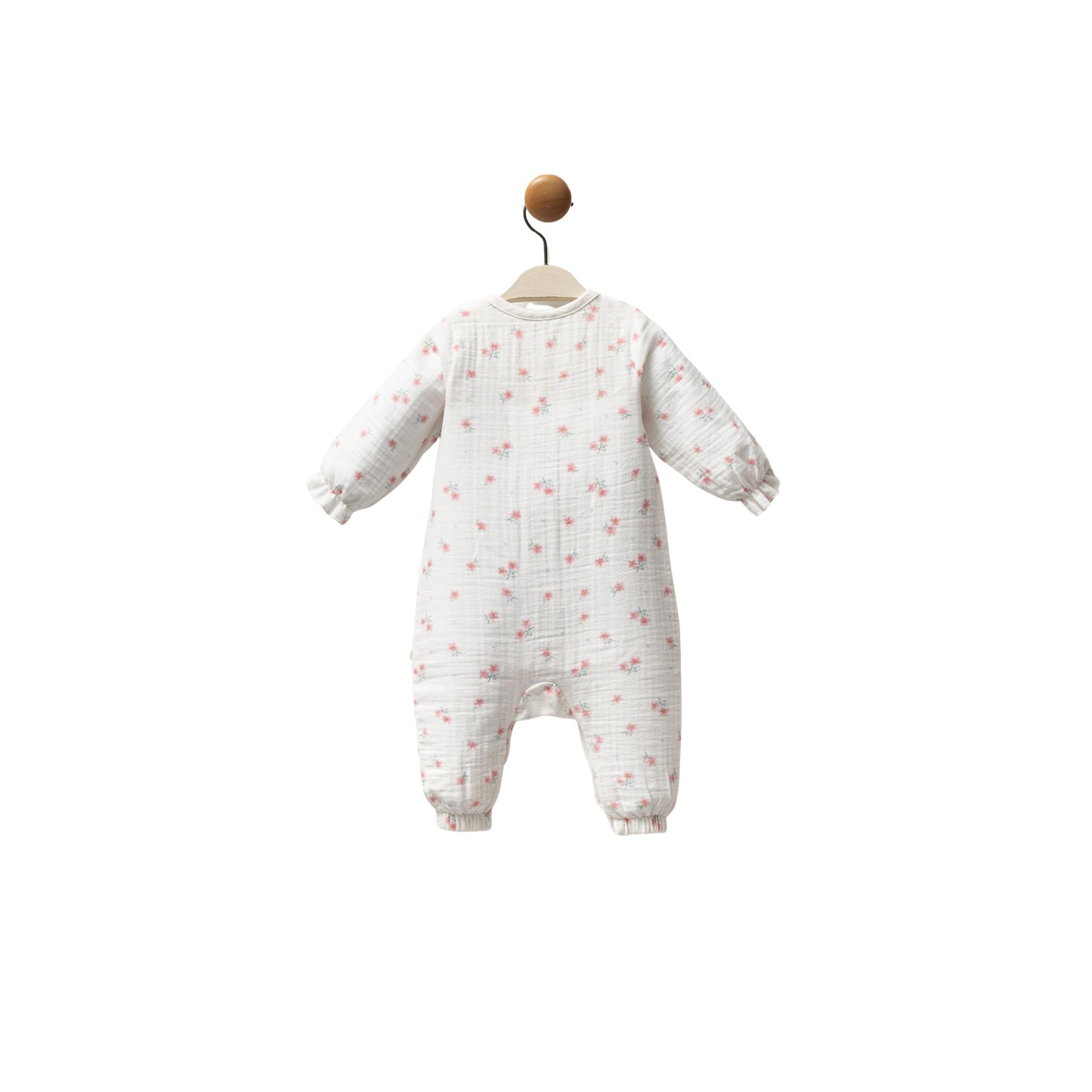 Bebeğinizin hassas cildi için özel olarak tasarlanan Moi Noi Müslin Tulum Çiçek, yumuşacık müslin kumaşı ve zarif çiçek desenleriyle hem şık hem de konforlu bir deneyim sunar. Tam boy düğmeli yapısıyla kolay giydirilirken, nefes alabilen dokusu bebeğinize gün boyu ferahlık sağlar.