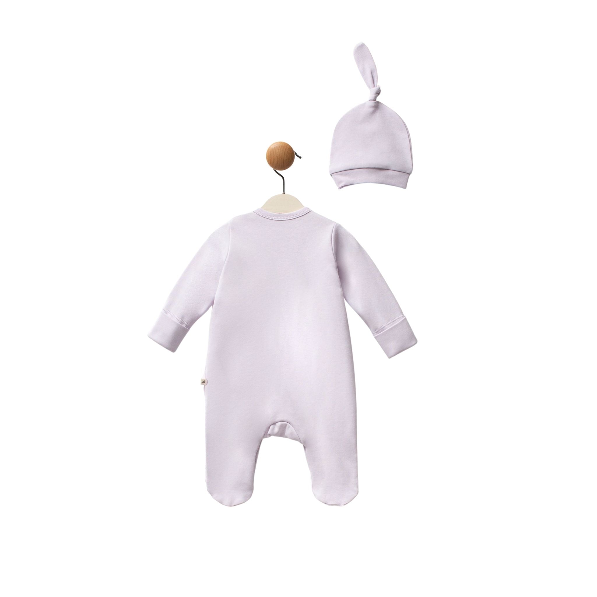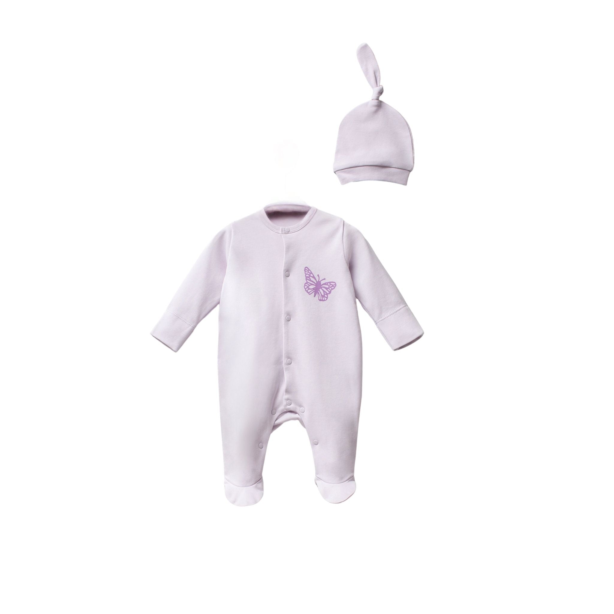 Moi Noi Organik Kelebek Şapkalı Tulum, doğadan ilham alan zarif kelebek tasarımı ve %100 organik pamuk dokusuyla Yenidoğan bebekler için özel olarak hazırlanmıştır. Şapkasıyla birlikte takım olarak sunulan bu tulum, sadeliği ve şıklığı bir arada sunar. Yumuşak, nefes alabilen kumaşı sayesinde bebek cildine dosttur; terletme yapmaz, tahriş oluşturmaz. Hafif yapısı ve rahat kalıbıyla gün boyunca konforlu bir kullanım sağlar. Kelebek detaylı sade tasarımıyla özellikle kız bebekler için zarif bir stil sunar. Pratik çıtçıt kapamalı yapısıyla alt değiştirmeyi kolaylaştıran bu tulum, uyku saatlerinden dış gezmelere kadar her an için idealdir. Organik yapısıyla hem doğayı hem de bebeğinizin sağlığını korur.
