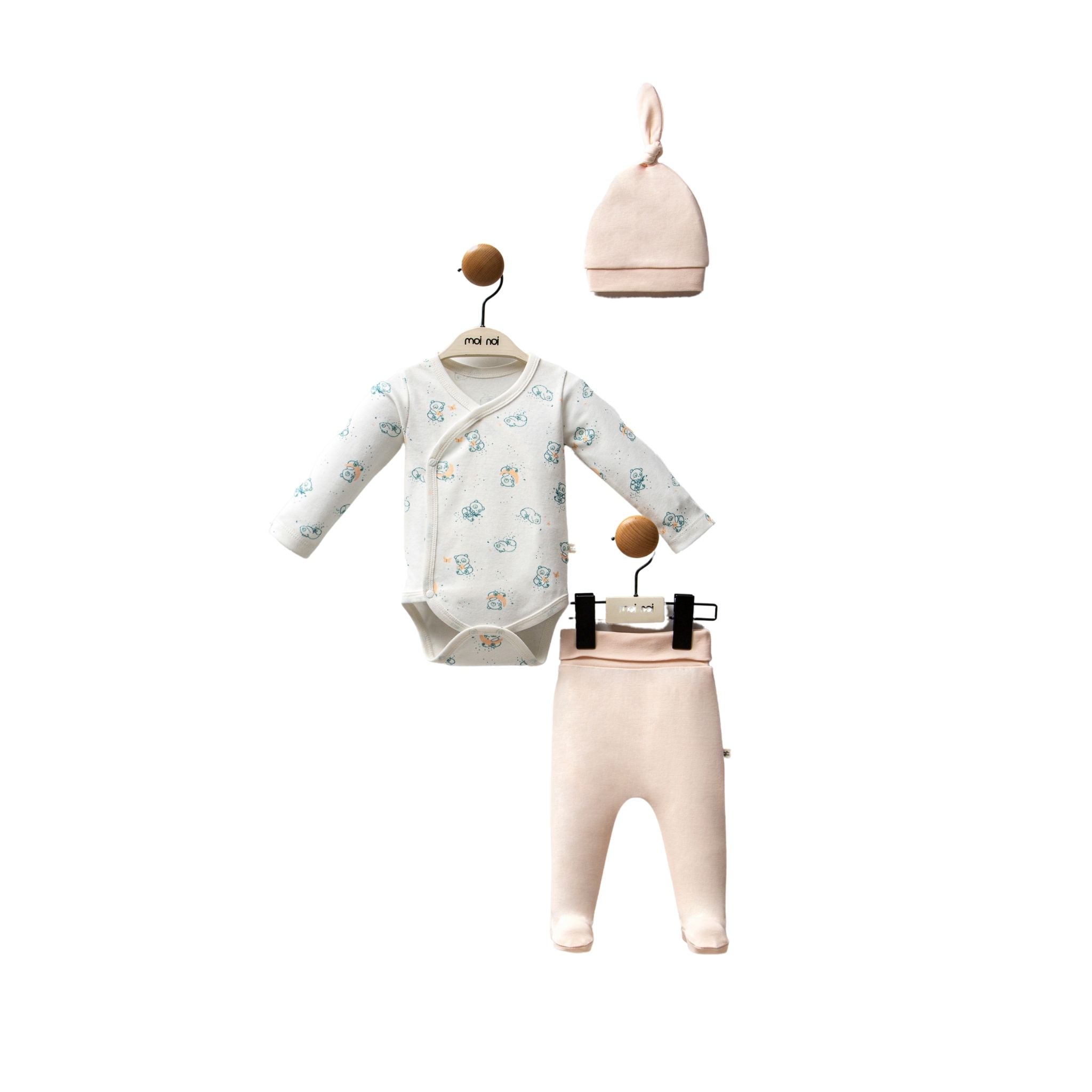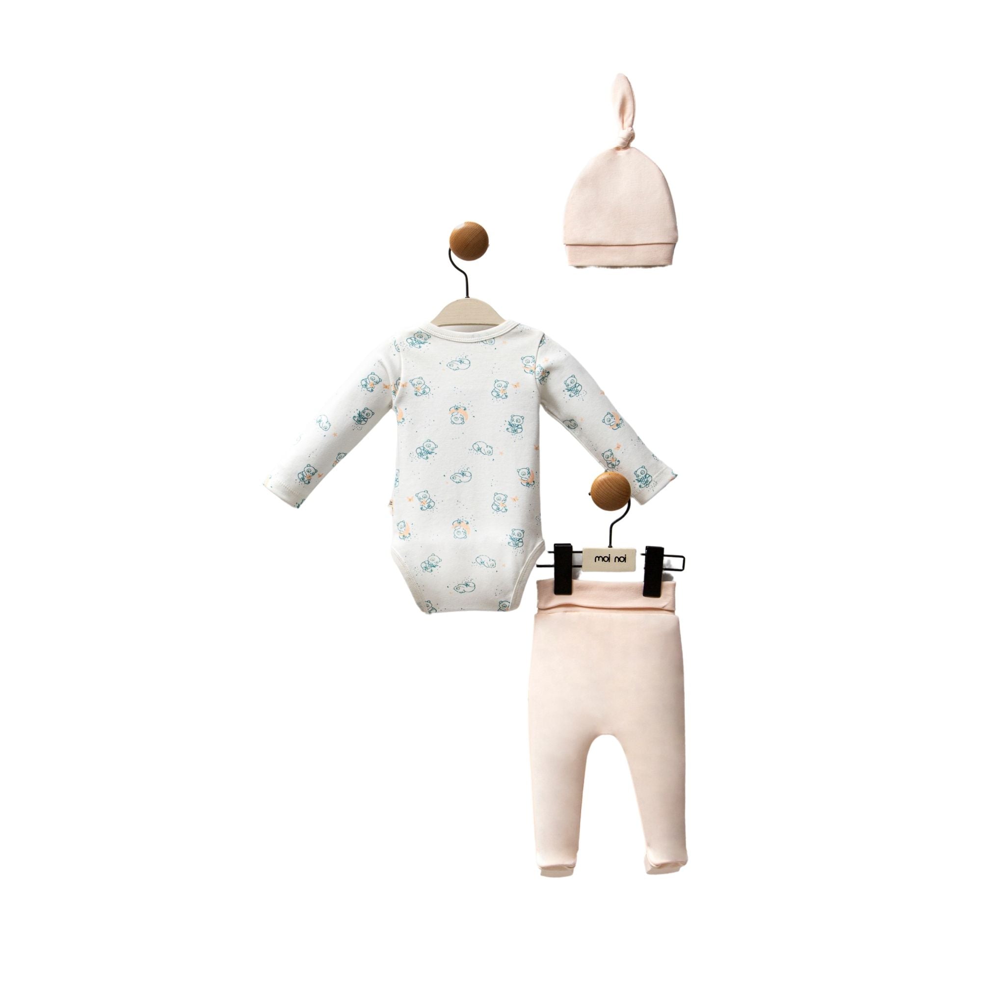 Moi Noi Organik Kız Şapkalı Body Takım Ürün Özellikleri;