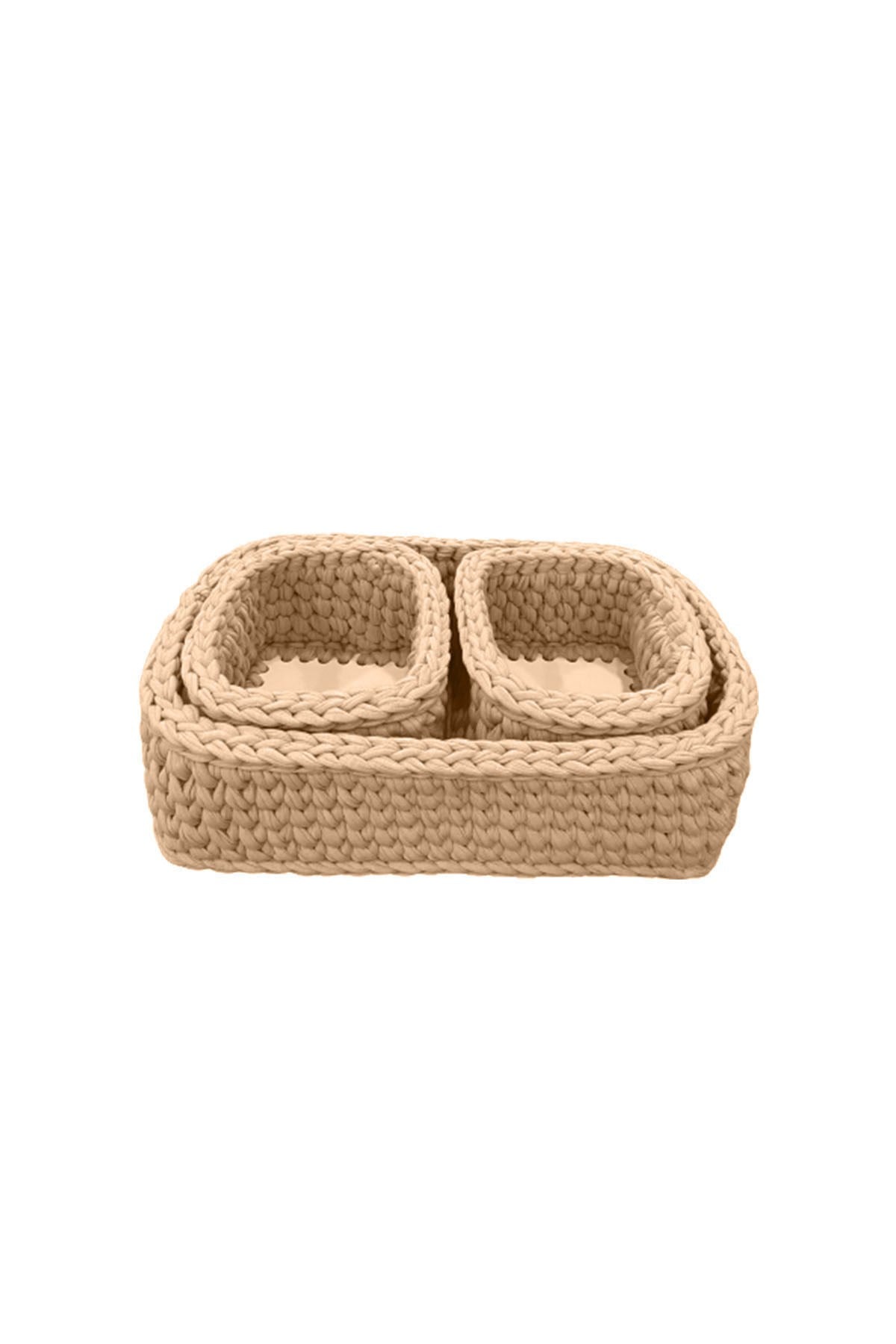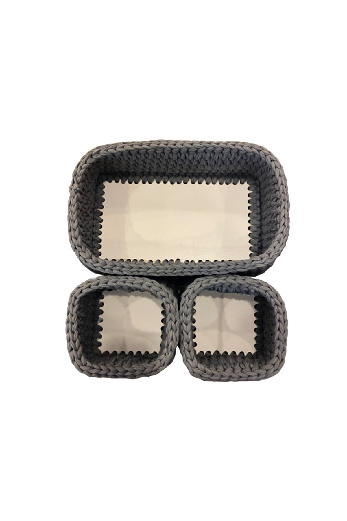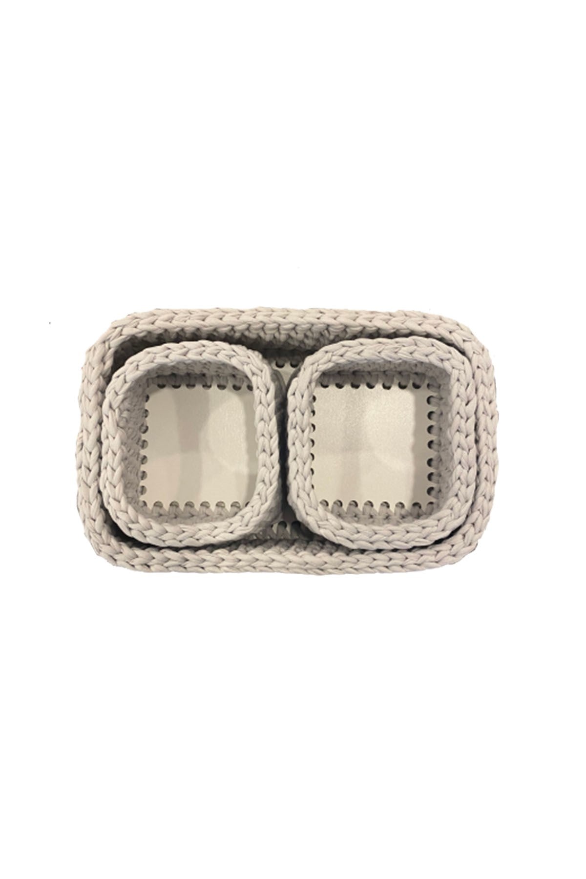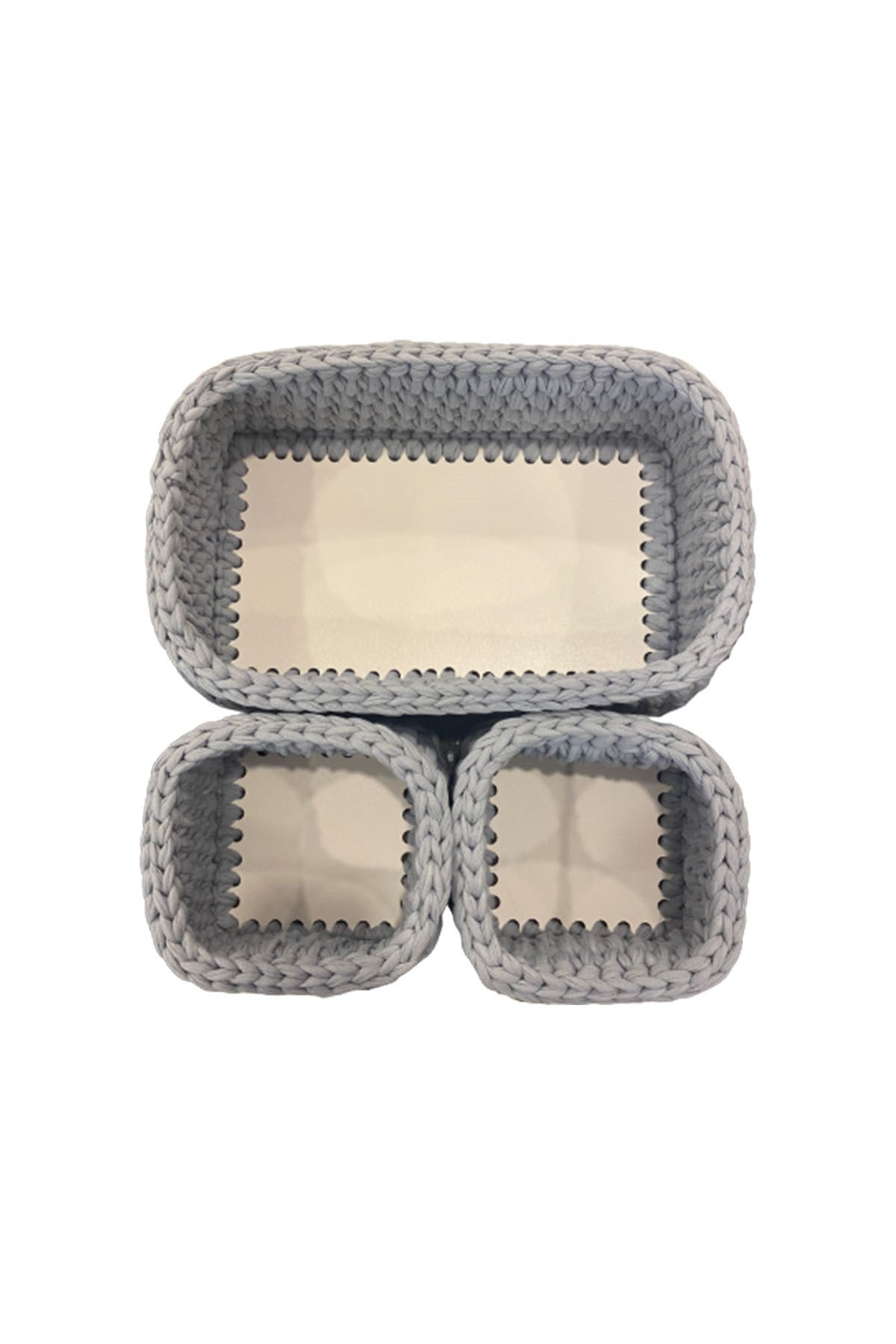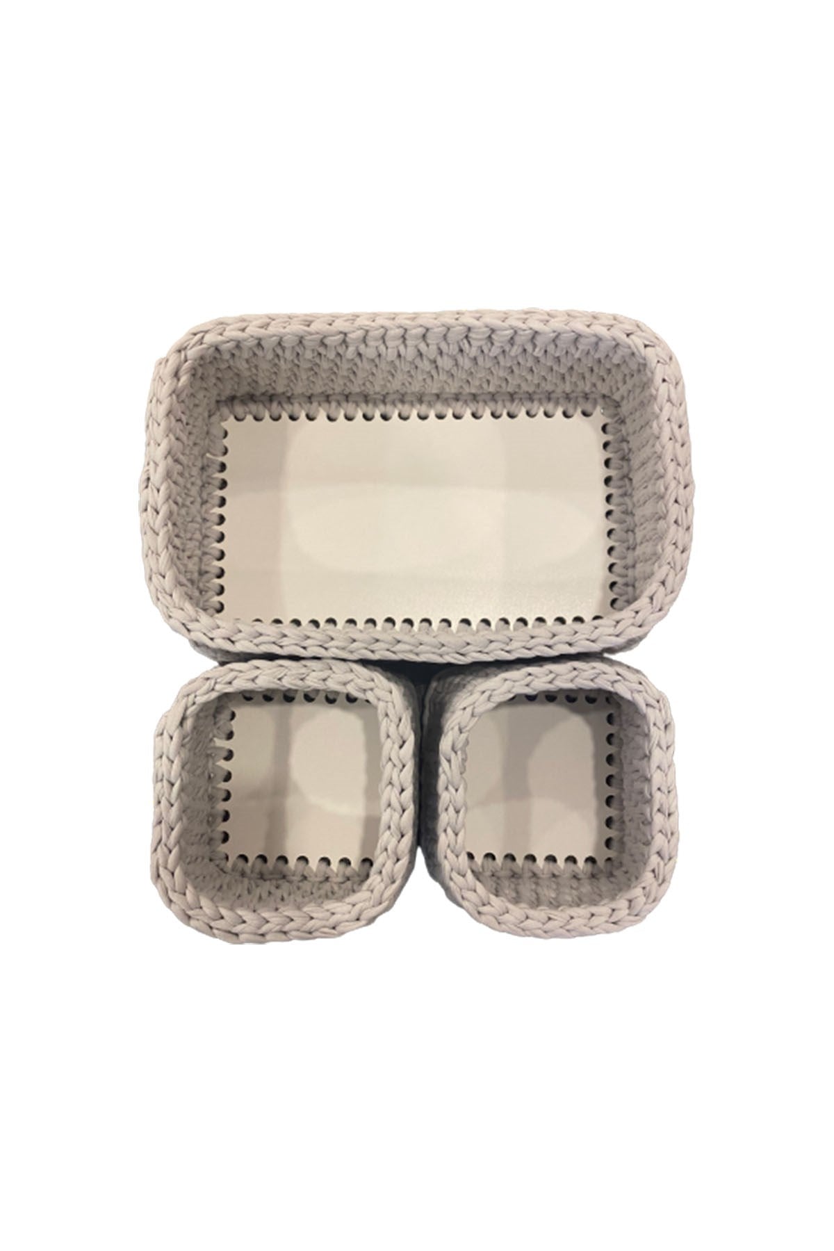 Estetik görünümüyle dikkat çeken bu el örgüsü sepetler, ahşap taban yapısı sayesinde sağlam ve dayanıklıdır. Gri rengiyle her dekorasyona kolayca uyum sağlar. Üç farklı boyuttaki sepetten oluşan bu set, bebek odalarında hem düzen hem de görsel bütünlük sunar.