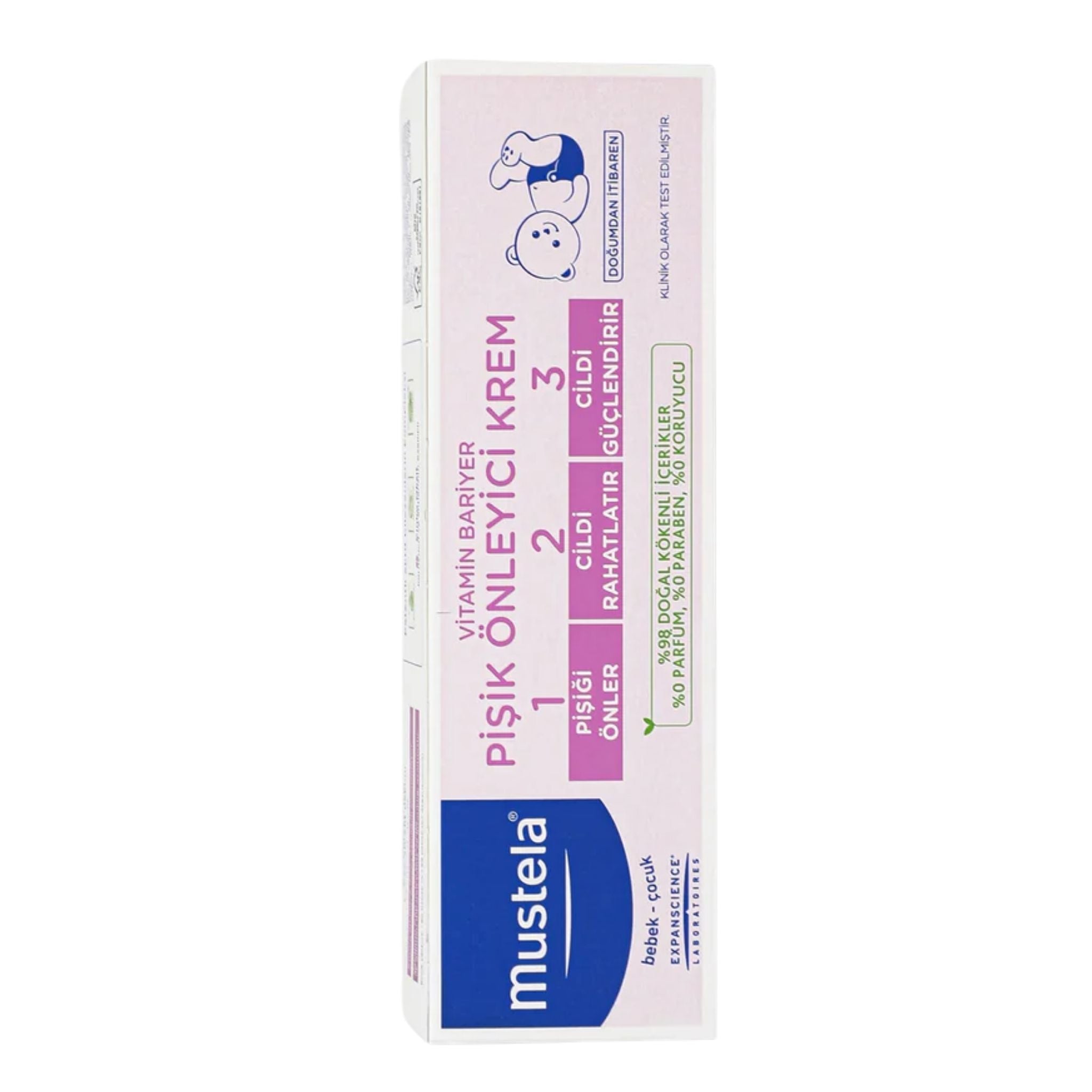 Mustela Vitamin Barrier Cream 1-2-3, bebeklerin narin ciltlerini her bez değişiminde korumak, pişiği önlemek ve tahrişi yatıştırmak için özel olarak geliştirilmiştir. %98 doğal kökenli içeriğiyle formüle edilen krem, avokado perseose, organik ayçiçeği yağı oleodistilatı ve alkasya oxeoline gibi doğal aktif bileşenlerle cilt bariyerini güçlendirir. Yeni doğan bebeklerin hassas cilt yapısına uyumlu formülüyle, yenidoğan yoğun bakım ünitesinden çıkanlar da dâhil tüm bebeklerde güvenle kullanılabilir. Her bez değişiminde nemlendirici, koruyucu ve onarıcı bakım sağlayarak bebeğinizin cildini rahatlatır.