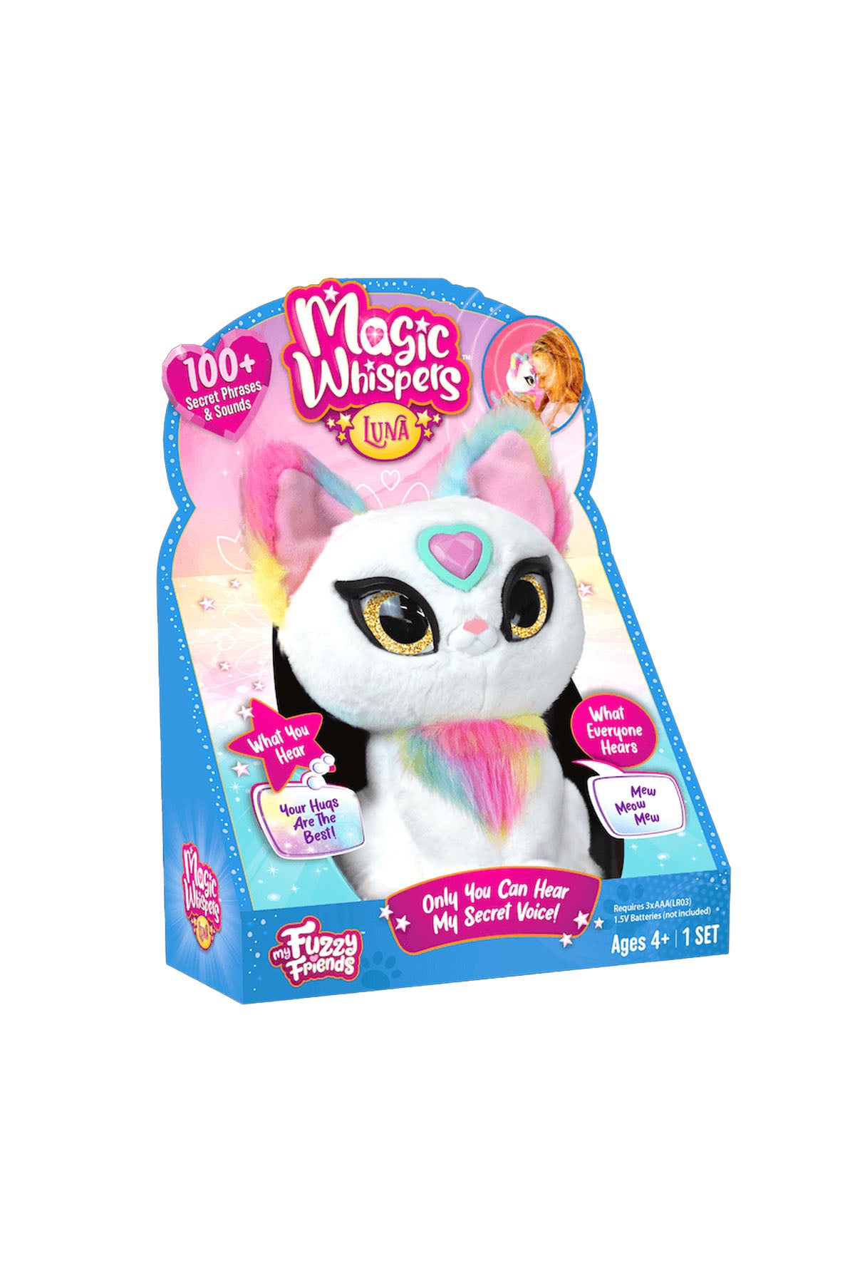 My Fuzzie Friends’in sevgi dolu yumuşacık pelüşlerinden Sihirli Fısıltı’yı da çocuklar çok sevecek! Pelüş kediyi alınlarına dayadıklarında çocuklara gizli şeyler fısıldıyor. Bu sesler dışarıdan mırıldama veya miyavlama gibi duyulsa da kedi dostlarının ne söylediklerini ancak çocuklar anlıyor. Ayrıca şakalar yapıyor ve sorulan evet hayır sorularına cevap veriyor. Üstelik bu sesli tepkilerin tümü Türkçe! Çocuklar alınlarını kedilerin alnına yasladıklarında, oradaki sensör sayesinde fısıltıyla gizli şeyler söylüyor. Bu sesler dışarıdan mırlama veya miyavlama olarak duyulurken söylediği sözleri yalnızca dostları alnına yaslayan çocuk anlıyor. Ayrıca şakalar yapıyor ve sorulara evet/hayır şeklinde cevaplar veriyor.