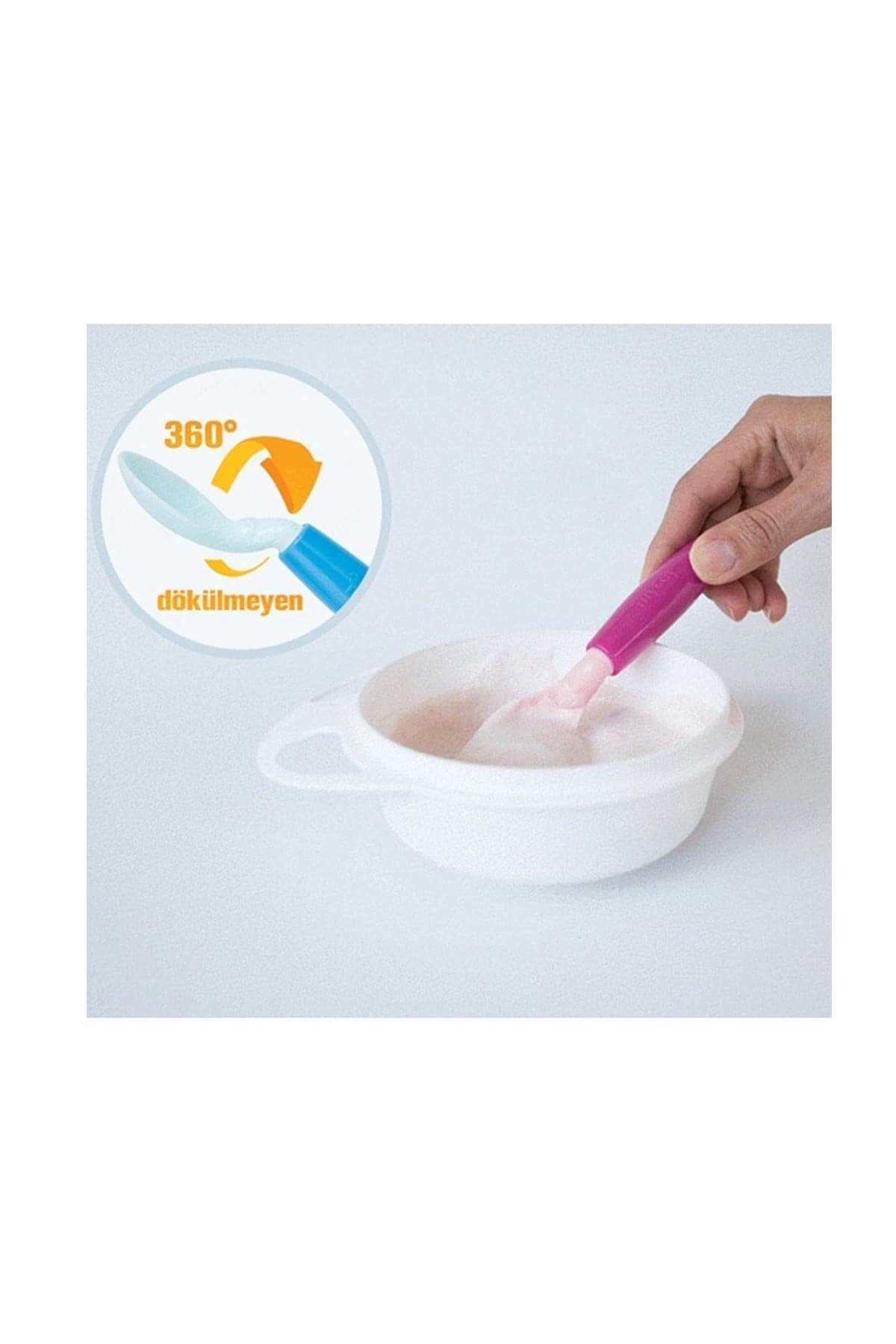 Kendi kendine yemeyi öğrenen çocuklar için özel olarak tasarlanmış kaşık düzgün tutulmadığında bile kendi ekseninde dönerek sapı ile aynı hizada kalır.