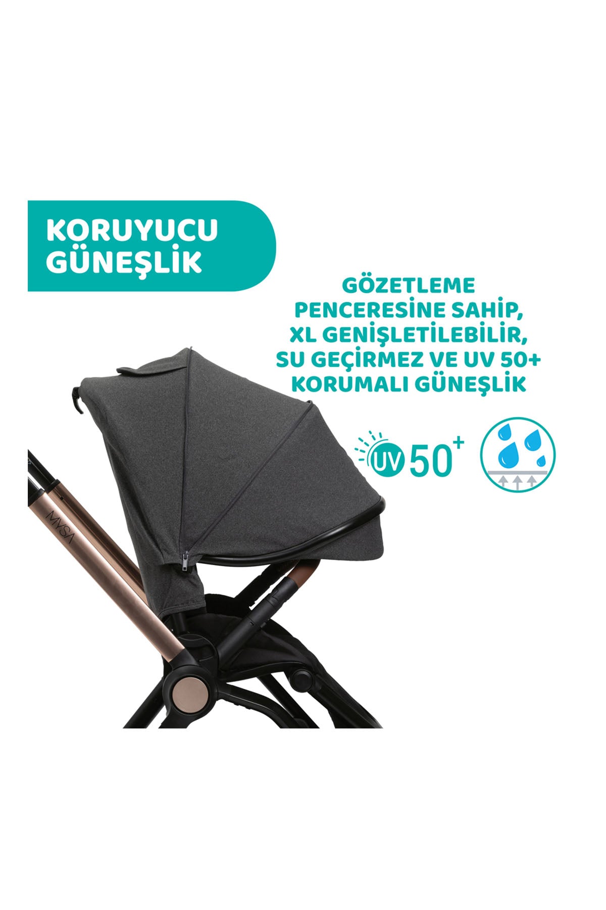 Chicco Mysa bir seyahat setinden daha fazlası. O bir yaşam biçimi: Ebeveynlerin ihtiyaçlarını anlayıp buna uygun bir çözüm olarak tasarlandı. Yeni Mysa bebek arabası, modern ve modaya uygun bir görünümü büyük pratiklikle birleştirir. Doğumdan itibaren kullanıma uygun koltuğu hem öne hem de arkaya dönük olarak yapılandırılabilir ve tamamen yatırılabilir. Geniş koltuğu, birinci sınıf malzemeleri ve tekerlekleri, bebeklere ihtiyaç duydukları tüm konforu sağlarken, dışarıdan da fark edilecek bir bebek arabasıdır.