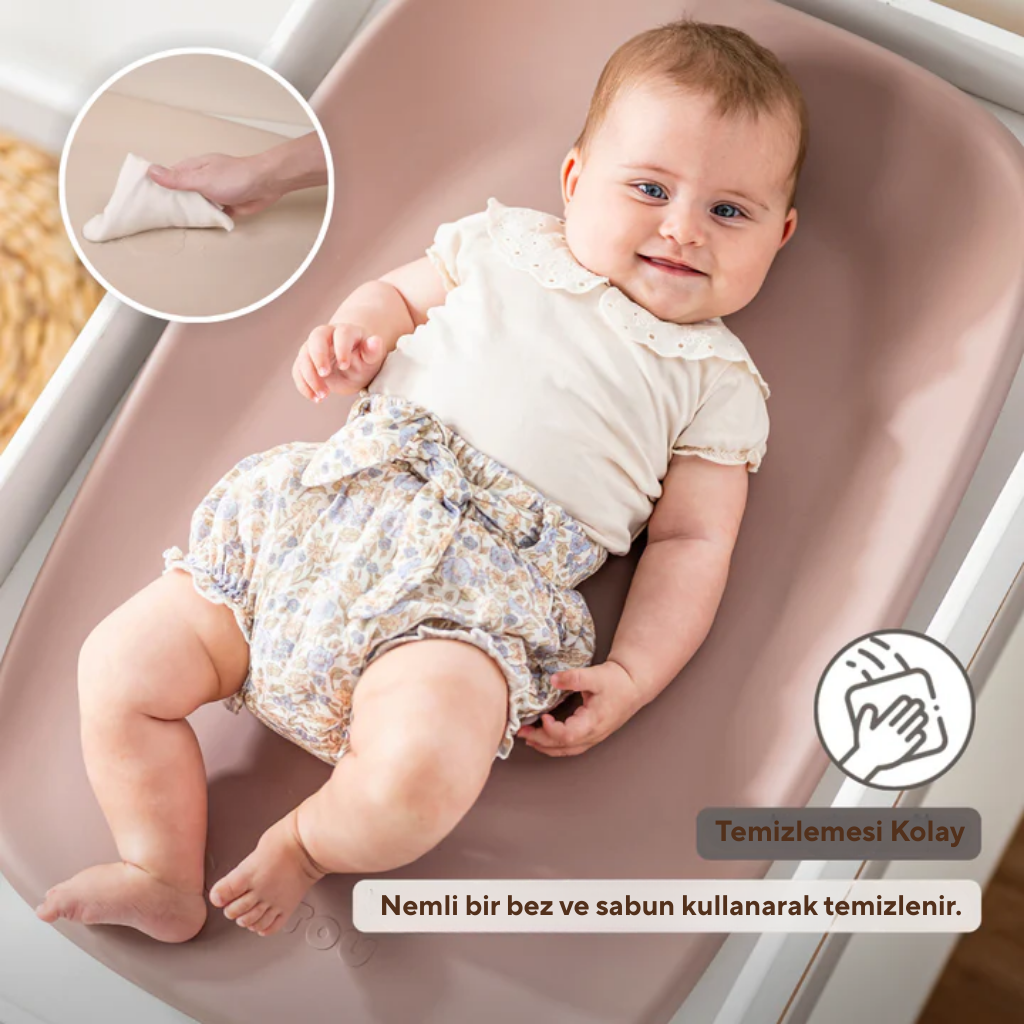 Nattou Softy Alt Değiştirme Minderi 70x50 cm Pembe, bebeğinizin günlük bakım rutinini daha konforlu, güvenli ve pratik hale getirmek için tasarlanmıştır. Care koleksiyonuna ait bu ergonomik alt değiştirme minderi, yumuşak yapısı ve zamansız tasarımı ile her bebek odasına uyum sağlar. Alt değiştirme masasının üzerine yerleştirildiğinde bebeğiniz için sabit ve rahat bir alan sunar. Vücut sıcaklığına hızla uyum sağlayan PU köpük yapısı sayesinde her kullanımda konforlu bir yatış pozisyonu oluşturur. Yükseltilmiş kenarları, güvenli bir pozisyon sağlayarak bebeğin hareketlerini kontrol altında tutmaya yardımcı olur. Örtü gerektirmeyen hijyenik yüzeyi sayesinde her değişim sonrası zamandan tasarruf sağlar. Nemli bir bez, sabun ya da dezenfektan alkol ile kolayca temizlenebilir. Böylece hem ebeveynler için pratik hem de bebekler için güvenli bir bakım alanı sunar. Zarif pembe rengi ile minimal ve şık bir görünüm sunan Nattou Softy alt değiştirme minderi, hem fonksiyonel hem estetik bir bebek aksesuarıdır. Nattou Care koleksiyonu, bebeğinizin günlük bakım ihtiyaçlarını konfor ve güvenlik odaklı tasarımlarla destekler. Nattou Softy Alt Değiştirme Minderi 70x50 cm Pembe, hem işlevselliği hem de zarif görünümü ile bebek odasında uzun süreli kullanım için ideal bir seçimdir.