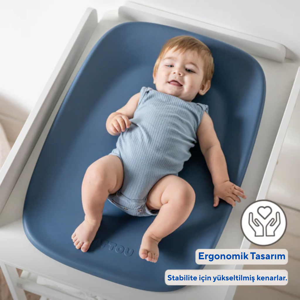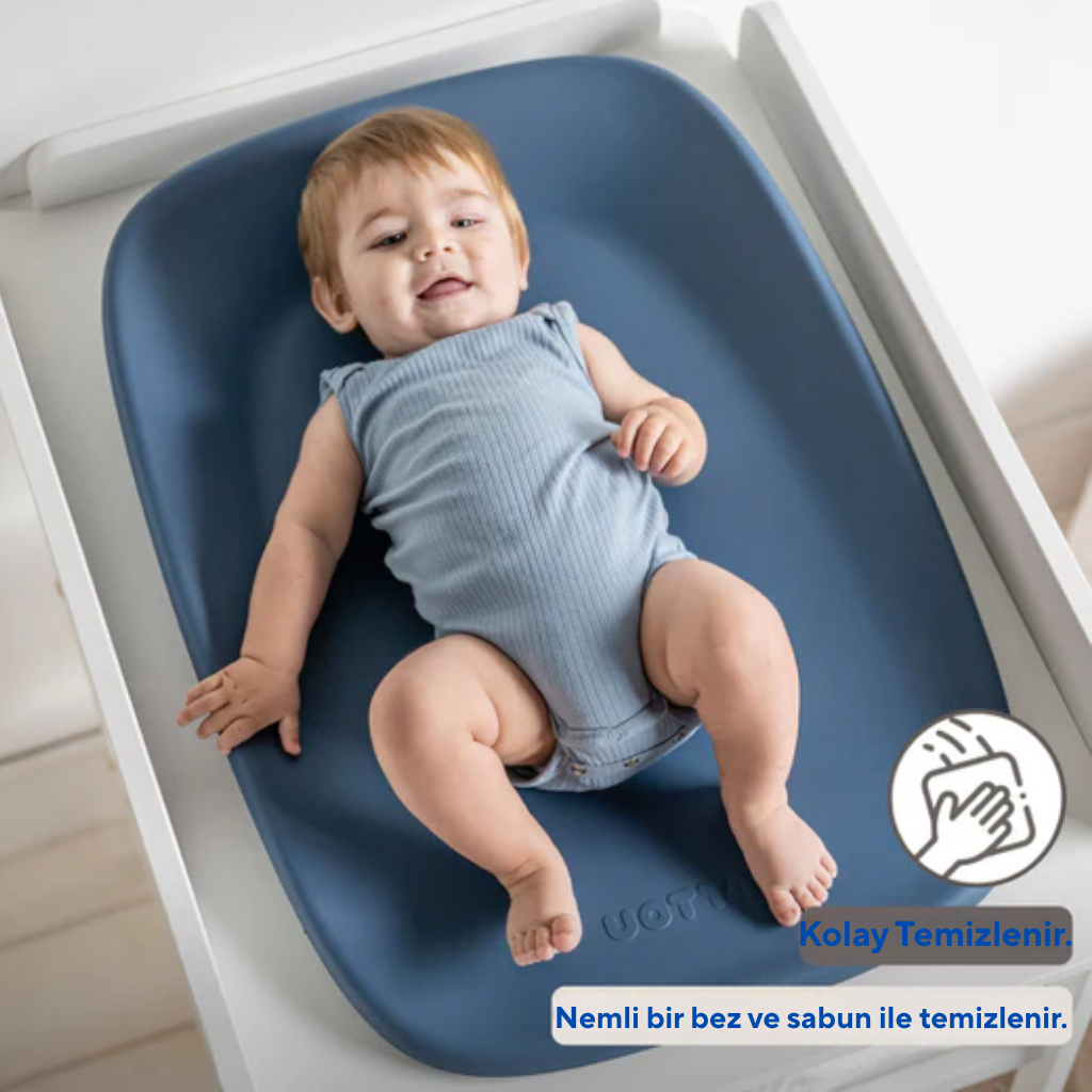 Nattou Softy Alt Değiştirme Minderi 70x50 cm mavi; bebeğinizin günlük bakım rutinini hem konforlu hem de güvenli hale getirmek için tasarlanmıştır. Care koleksiyonuna ait bu özel model, ergonomik yapısı ve su geçirmez yüzeyi sayesinde alt değiştirme sürecini pratikleştirir. Modern bebek odalarına uyum sağlayan zamansız tasarımı ile hem işlevsel hem de estetik bir çözümdür. Alt değiştirme masasının üzerine kolayca yerleştirilebilen bu minder, bebeğinizin vücut sıcaklığına hızla uyum sağlayarak yumuşak ve rahat bir zemin sunar. Günlük kullanımda ekstra örtü gerektirmemesi sayesinde zamandan tasarruf sağlar ve bakım sürecini sadeleştirir. Nattou Softy alt değiştirme minderi, yükseltilmiş kenarları sayesinde bebeğinizin güvenli bir şekilde yatmasına yardımcı olur. Yuvarlanmayı önleyen tasarımı, ebeveynlere ekstra güven sunar. Özel eğimli yapısı ise sıvıların baş bölgesinden uzaklaşmasını destekler. Yumuşak ve destekleyici PU köpük dolgusu, her alt değiştirme sırasında stabil ve konforlu bir yüzey sağlar. Bu sayede bebeğiniz hem rahat eder hem de güvenli bir pozisyonda kalır. Su geçirmez ve hijyenik PU köpük yüzeyi sayesinde örtü kullanmaya gerek kalmaz. Nemli bir bez, sabunlu su veya dezenfektan alkol ile kolayca temizlenebilir. Günlük kullanım için ideal olan bu yapı, ebeveynlerin temizlik sürecini zahmetsiz hale getirir. BPA içermeyen malzemeden üretilmiş olup Avrupa güvenlik standartlarına uygundur. Böylece bebeğiniz için sağlıklı ve güvenilir bir kullanım sunar.