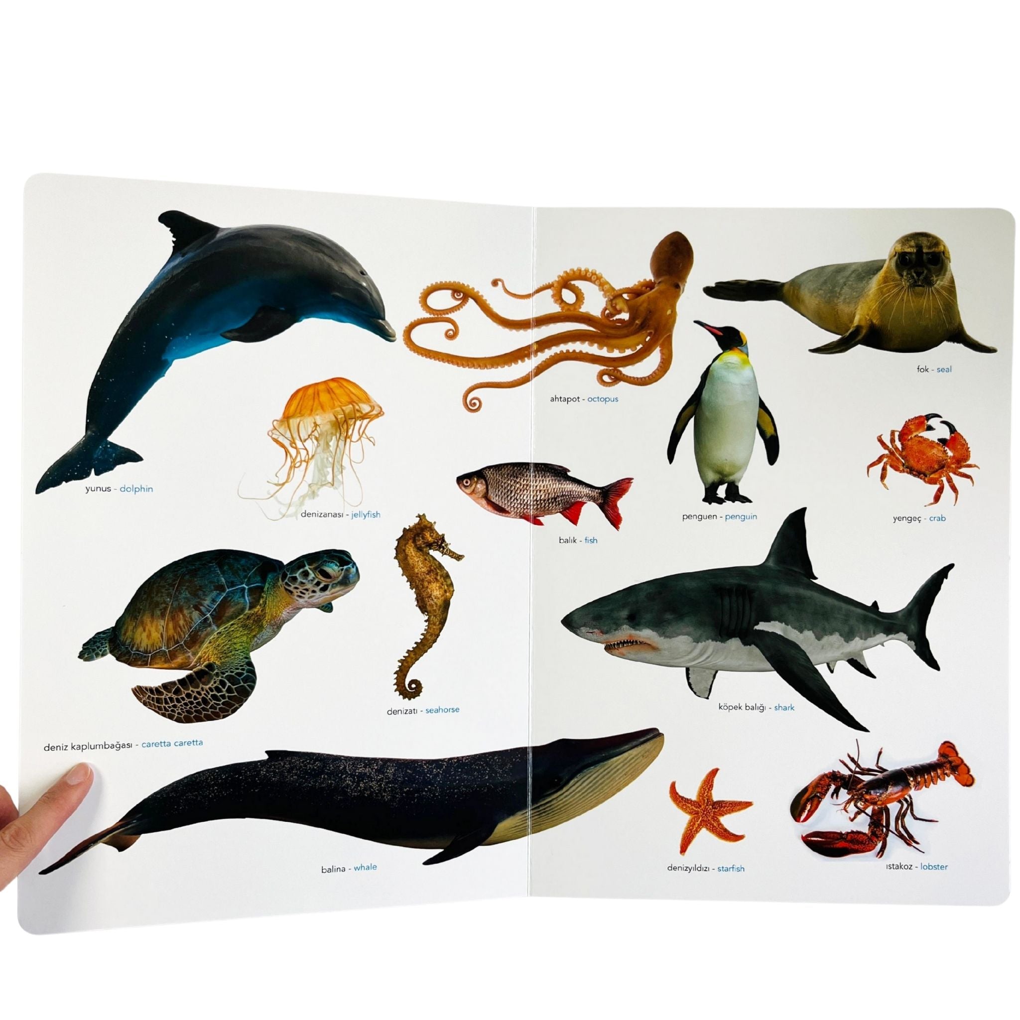 Ne Sorsan Bilir Minik Benim İlk Büyük Hayvanlar Kitabım, miniklere dünyamızda yaşayan farklı hayvan türlerini tanıtan, eğitici ve görsel açıdan zengin bir erken öğrenme kitabıdır. Çiftlikten ormana, vahşi yaşamdan denizlerin derinliklerine kadar pek çok canlıyı yaşam alanlarıyla birlikte anlatan bu kitap; çocukların keşfetme, gözlem yapma ve karşılaştırma becerilerini geliştirmeyi amaçlar. Her hayvan, büyük ve net çizimlerle sunulur; İngilizce karşılıklarıyla birlikte verilerek erken yaşta dil farkındalığı oluşturur. Çocuklar kitabı kendi başlarına inceleyebilir, görsellerle hikâye kurabilir ve hayvanların özelliklerini gözlemleyerek öğrenme süreçlerini derinleştirebilir. Sincap Kitap Atölye’nin pedagojik yaklaşımıyla hazırlanan bu seri, erken çocukluk döneminde temel kavram gelişimini destekleyen nitelikli içeriklerden biridir. Hem evde hem de okulda kullanılabilecek güçlü bir eğitim aracıdır.