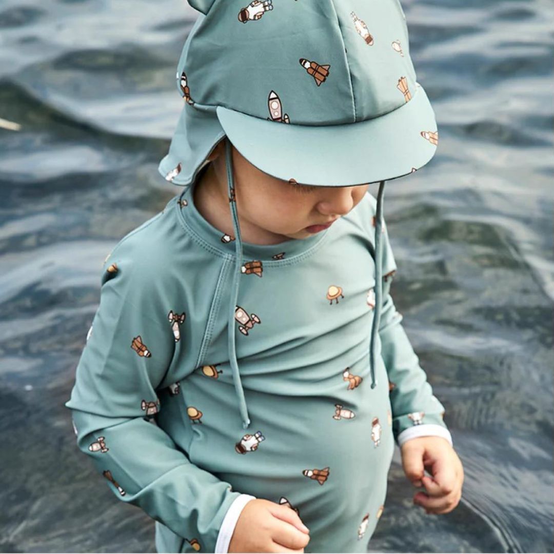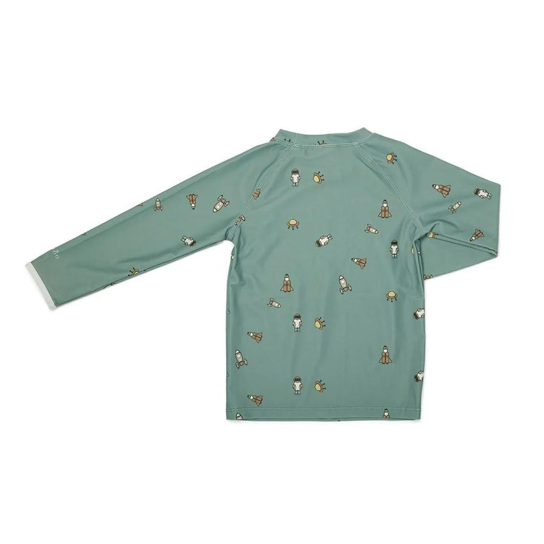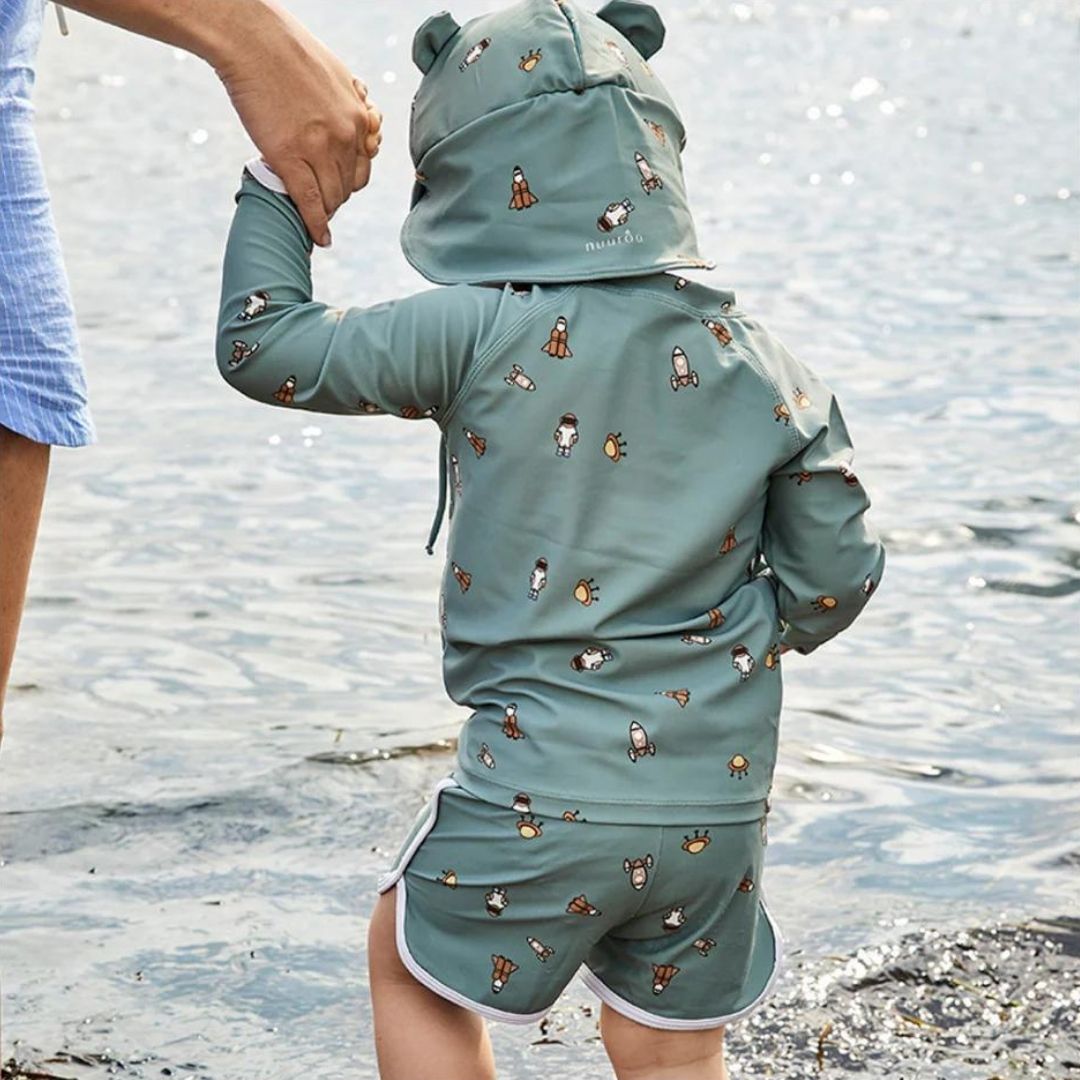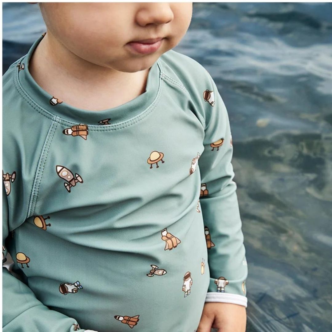 Nuuroo Kris UV Korumalı Erkek Uzun Kollu Mayo Tişört Uzay, çocuklar için hem güneşten korunma hem de maksimum konfor sunar. %82 geri dönüştürülmüş polyester ve %18 elastan karışımı ile üretilen bu mayo tişört, çevre dostu yapısıyla sürdürülebilir bir seçenek oluşturur. UV 50+ koruma faktörü sayesinde çocuğunuzun hassas cildini güneşin zararlı ışınlarından korur ve açık hava aktivitelerini güvenle yapmasına imkan tanır. Yüksek kaliteli kumaşı suya dayanıklı ve hızlı kuruma özelliğine sahiptir. Yüzme sonrasında da konfor sağlayan tasarımı, makinede yıkanabilir özelliği ile ebeveynler için kolay bakım avantajı sunar.