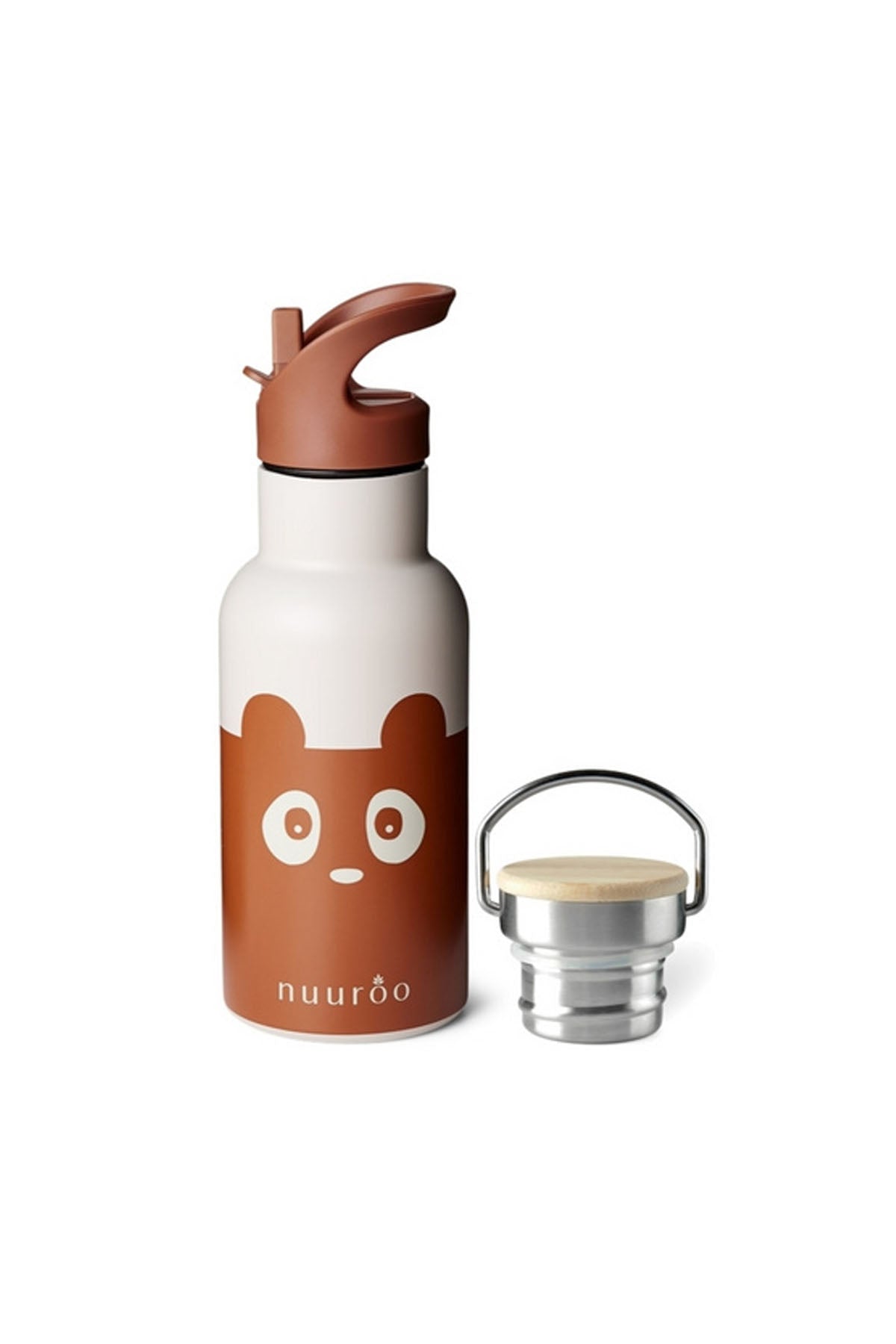 Nuuroo Bertil Pipetli Paslanmaz Çelik Termos; çocukların yeni su içme arkadaşıdır! Sevimli desenlere sahip Nuuroo çelik termoslar, plastik şişelerin yerine kullanılabilecek müthiş bir alternatiftir! Nuuroo termoslar en iyi paslanmaz çelik malzeme kullanarak üretilmiştir. Ahşap kaplı normal bir kapak ve silikon ağızlı aktivite kapağı ile birlikte gelmektedir. Su şişesi çocukların ellerine iyi oturur ve bir sırt çantasında kolayca saklanabilir. Kutu içeriğinden çıkan 2. kapak sayesinde termosunuzu daha işlevli bir şekilde kullanabilirsiniz. Nuuroo termos modelleri hem çocuk hem de yetişkinlerin kullanımına uygun şekilde tasarlanmıştır.