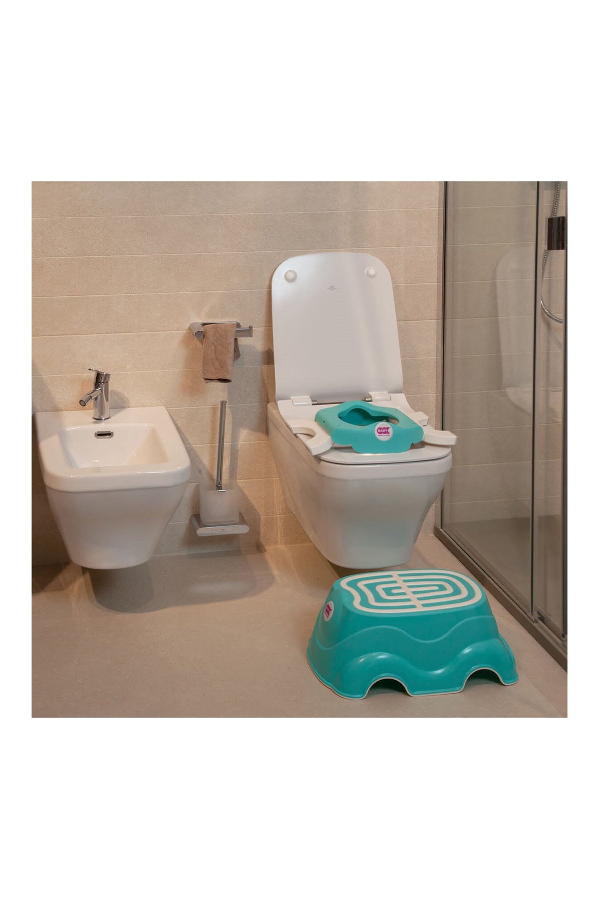 Kaymayı önleyen ayakları sayesinde oturak olarak da klozet adaptörü olarak da kullanıldığında son derece dengelidir.