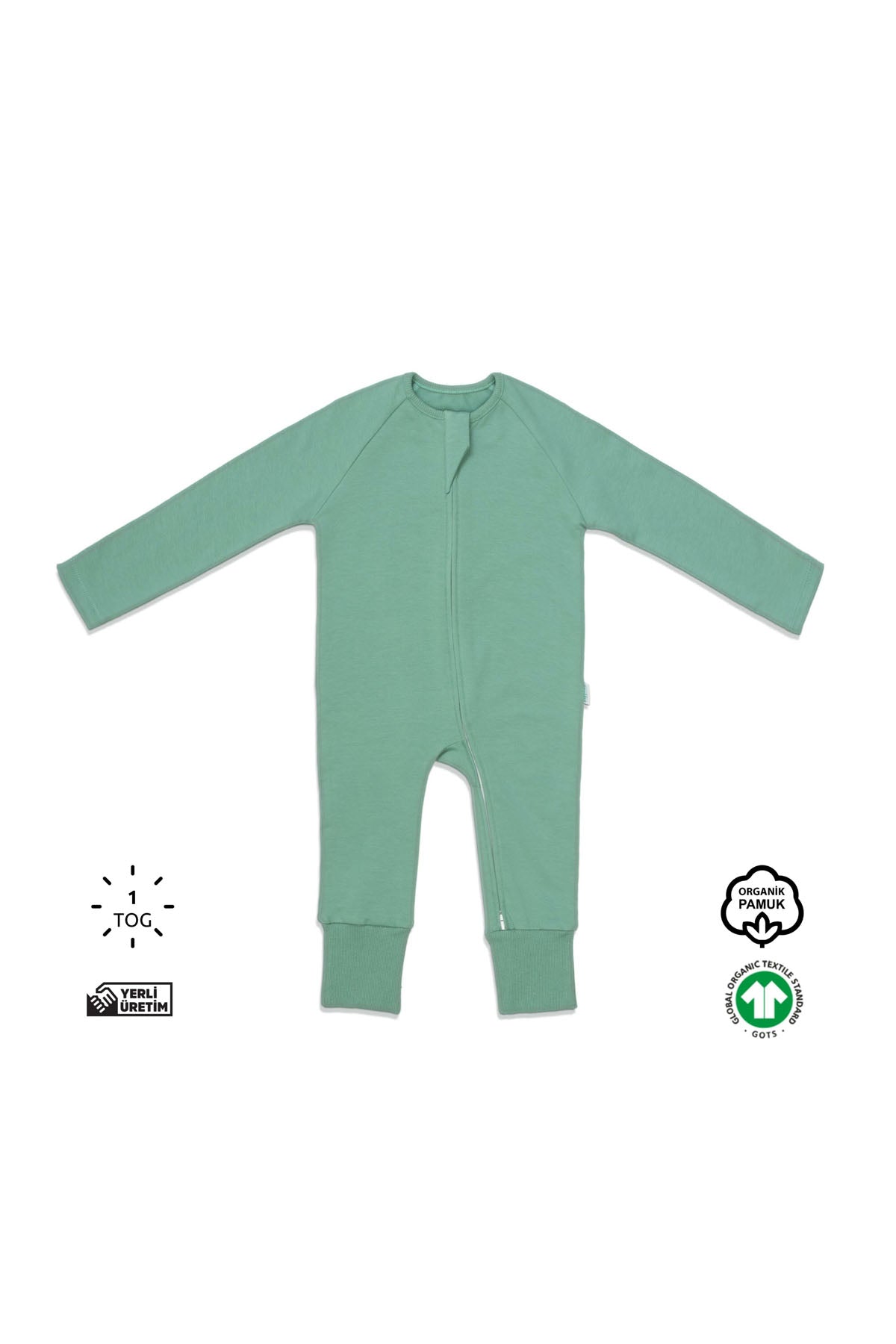 Zuppers Organik Pamuk Çocuk Ayaklı Uyku Tulumu Yeşil, 1 TOG değeri ile 20–24 °C arası oda sıcaklıklarında ideal konfor sunar. GOTS sertifikalı organik pamuktan üretilmiş olan bu tulum, bebeğinizin cildine zarar vermeden sağlıklı bir uyku ortamı oluşturur. Her iki yöne esneyen kumaşı hareket özgürlüğü sağlarken, ayaklardaki manşet detayı ürünün boyunu uzatır ve çorap etkisiyle sıcaklığı korur. Çift yönlü fermuarı sayesinde bez değiştirme işlemleri kolayca yapılabilir. Fermuar koruma noktaları ile bebeğinizin teni zarar görmez. Battaniye ihtiyacını ortadan kaldıran yapısıyla güvenli ve huzurlu bir gece uykusu sunar.