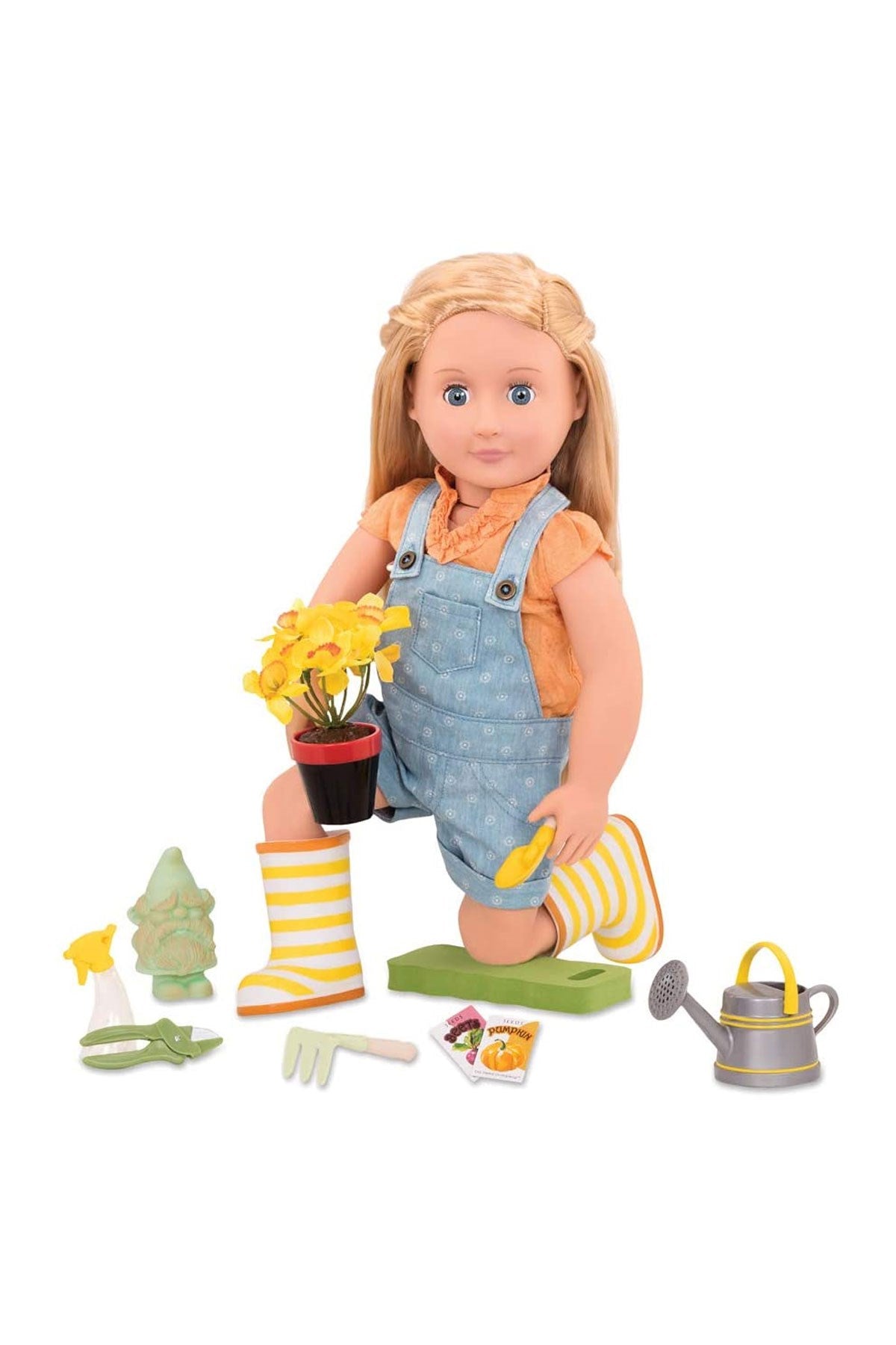 Our Generation Bahçe Bakım Seti, doğayı seven ve bitkilerle vakit geçirmekten hoşlanan çocuklar için tasarlanmış sevimli bir bahçe temalı aksesuar setidir. 46 cm Our Generation bebeklerle uyumlu olan bu set, miniklerin bebekleriyle birlikte kendi küçük bahçelerini kurmalarına ve bitki bakımını oyun yoluyla keşfetmelerine imkan tanır. Renkli lastik çizmeler, dizlik ve bahçe aletleri sayesinde çocuklar, bebeklerini gerçek bir bahçıvan gibi hazırlayarak hayal güçlerini kullanabilecekleri uzun soluklu oyunlar kurgular. Sette yer alan sulama kabı, sprey şişesi, kürek, tırmık ve budama makası gibi detaylı aksesuarlar, çocukların rol yapma oyunlarını daha gerçekçi hale getirir. Saksı bitkileri ve tohum paketleri ile bitkilerin büyüme süreci üzerine sohbet etmeye ve sorumluluk bilincini oyunla desteklemeye yardımcı olur. Bahçe cücesi figürü ise oyun alanına dekoratif ve eğlenceli bir dokunuş katar. Our Generation Bahçe Bakım Seti, 3 yaş ve üzeri çocukların doğayı tanımasını, ince motor becerilerini geliştirmesini ve bebekleriyle birlikte yaratıcı bahçe senaryoları kurmasını destekleyen keyifli bir aksesuar setidir.