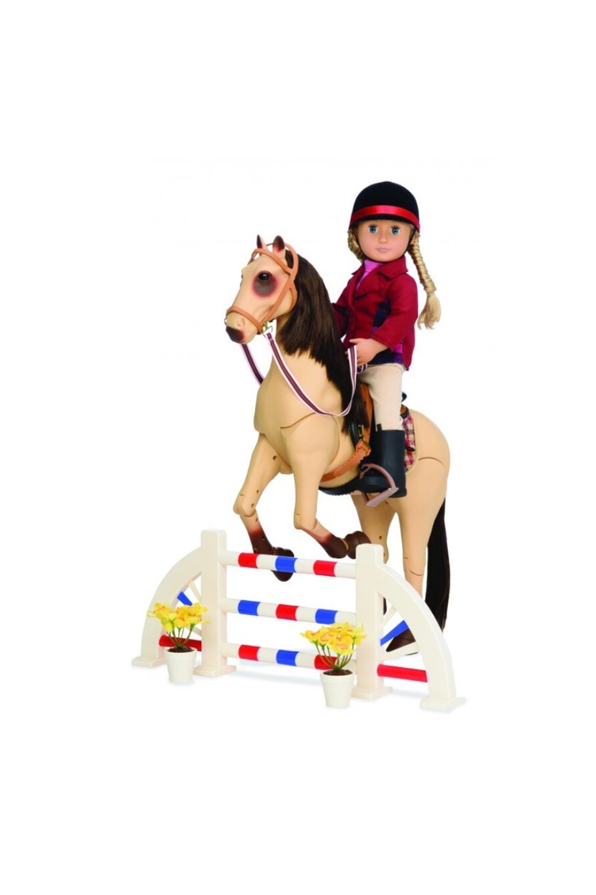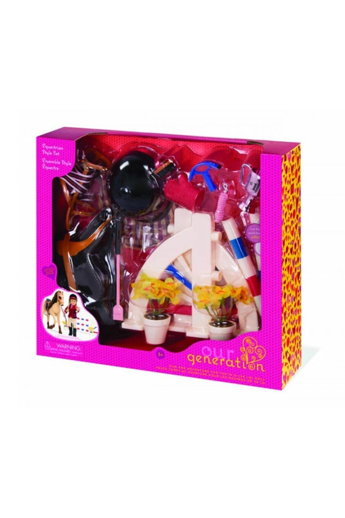 Our Generation Binicilik Aksesuar Seti, çocukların hayal gücünü zenginleştiren detaylı içerikleriyle at sevgisini oyunlarına taşır. 46 cm Our Generation bebekleriyle tam uyumlu olan bu özel set, hem rol yapma aktivitelerini destekler hem de çocukların ince motor becerilerini geliştirmelerine yardımcı olur. Binicilik ekipmanlarının gerçekçi tasarımı sayesinde çocuklar, at bakımını ve biniciliği eğlenceyle birleştirerek keyifli oyunlar kurabilir. Set içerisinde binicilik için gerekli tüm detaylar yer alır. İngiliz stili eyer ve üzengi takımı, dizginler, at kırbacı, bakım eldiveni ve kazanan kupası gibi parçalar çocukların oyunu daha gerçekçi hâle getirmesini sağlar. Ayrıca at atlama çiti, saksılar ve bakım fırçaları gibi aksesuarlar, oyuna hareket ve hikâye katmak için idealdir. Eğitim ve eğlenceyi bir araya getiren bu set, uzun süreli ve yaratıcı oyunlar için mükemmel bir seçenektir.